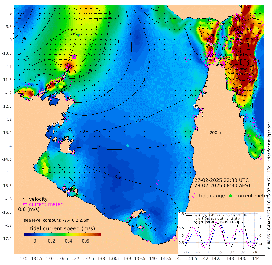 30cm/s 121T +3cm/s rms + 7cm/s -42T. ARA-GOC87 57m 14cm/s 167T +3cm/s rms + 2cm/s -2T. ARA-GOC87 60m 28cm/s 118T +2cm/s rms + 3cm/s 61T. ARA-GOC87 47m 60cm Daru 72cm Bobo Island 111cm Meer Island Barge 118cm Bramble Cay 100cm Unnamed Cay 100cm Pearce Cay 108cm Stephens Island 108cm Merrie England Shoals 73cm Mutacomal Reef 102cm Darnley Island Barge 119cm East Cay 79cm Yorke Island Barge 84cm Rennel Island 69cm Aureed Island 51cm Dungeness Reef -20cm Zagai Island -8cm Yam Island -62cm Dauan Island -68cm Saibai Island -63cm Phipi Reef -26cm Warrior Reef - West -36cm Mabuiag Island Barge 87cm Half Way Island 45cm Coconut Island 75cm Dugong Islet 23cm Poll Island 33cm Kirkcaldie Reef -18cm Suarji Island 12cm Sue Islet 59cm Hawkesbury Island 0cm Alert Patches 4cm Twin Island 25cm Badu Island -17cm St Pauls (Moa Island) 35cm Kubin (Moa Island) 1cm Ince Point 8cm Thursday Island 3cm Nardana Patches 26cm Turtle Head 25cm Round Island 59cm Goods Island 61cm Booby Island 68cm White Rocks Area 37cm Carpentaria -3cm Papou Point 59cm Bampfield Head 37cm Crab Island 54cm Red Wallis Island 42cm Packe Island 67cm Harrington Reef 39cm Herald Camp -28cm Sharp Point 21cm Red Island Point 4cm Possession Island 5cm Alpha Rock 27cm Frederick Point 64cm Wyborn Reef Light 51cm Tetley Island 84cm Triangle Reef 92cm Turtle Head Island 105cm Maclennan Cay 106cm Raine Island 92cm Mcsweeny Reef 92cm Collette Reef 96cm Shadwell Reef 107cm Hannibal Island 123cm Round Point 34cm Vrilya Point 113cm Cape Grenville 113cm Hicks Island 119cm Sir Charles Hardy Island 34cm Harvey Island 123cm Kay Reef 112cm Rocky Island 112cm Chapman Island 108cm Ham Reef 112cm Jubilee Reef 98cm Night Island 110cm Unnamed Reef No. 3 121cm Morris Island 115cm 1st 3 Mile Opening 115cm Creech Reef 112cm Fife Island 146cm Eden Reef 126cm Stanley Island 143cm Normanby River 198cm Yabooma Island 222cm Hutchison River 183cm Elcho Island 172cm North West Crocodile Island 132cm Cape Wessel 167cm Stevens Island 125cm Guluwuru Island 150cm Hopeful Bay 143cm Auster Point 150cm Two Island Bay 192cm Cadell Strait 96cm Mallison Island 106cm Melville Bay (Gove Harbour) 115cm Truant Island 61cm Cape Arnhem 25cm Cape Grey -6cm Hawk Island -49cm Milner Bay (Groote Eylandt) -52cm Cape Beatrice -102cm West Island -113cm Centre Island -115cm Mornington Island -103cm West Wellesley Islands -107cm Bountiful Island -137cm Albert River Mouth -157cm Sweers Island -145cm Karumba -68cm Nassau River Offshore -31cm Christmas Creek 10cm Archer River 21cm Boyd Point 29cm Weipa (Humbug Point) 16cm Pennefather River 23cm Cullen Point