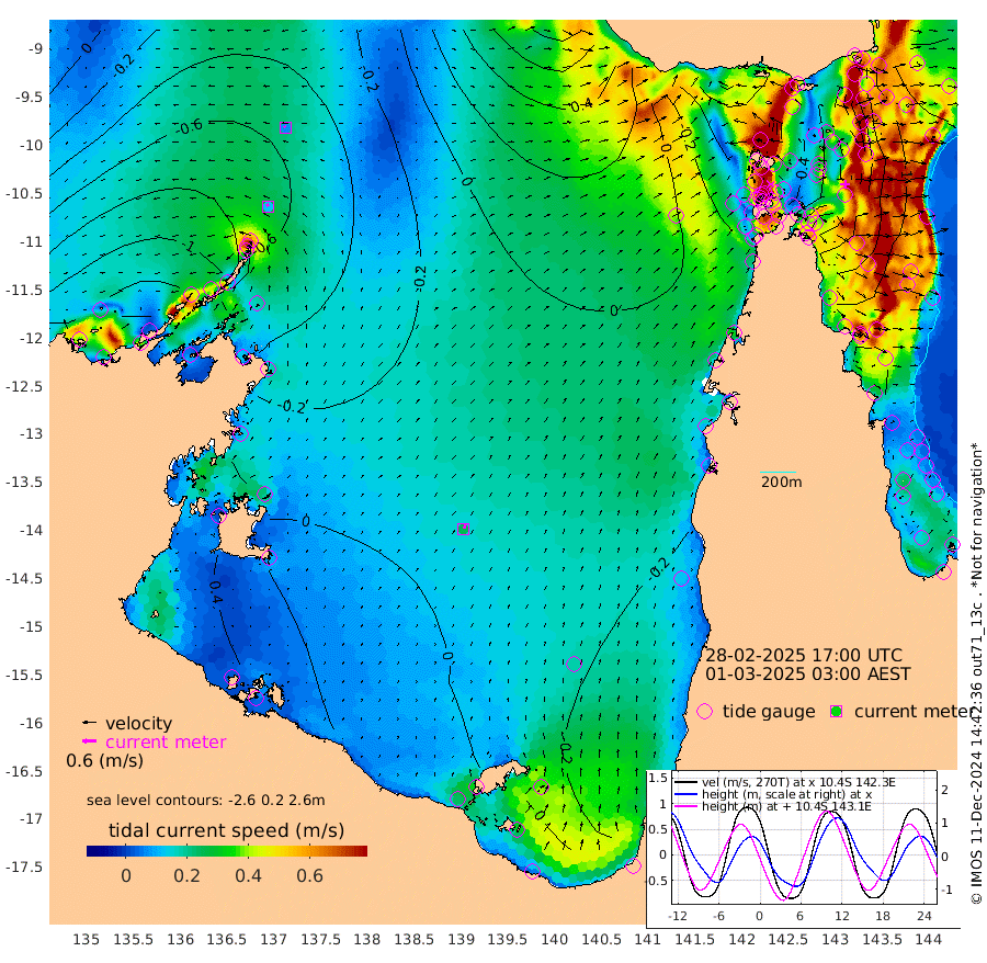 12cm/s -32T +3cm/s rms + 7cm/s -42T. ARA-GOC87 57m 25cm/s 23T +3cm/s rms + 2cm/s -2T. ARA-GOC87 60m 7cm/s -33T +2cm/s rms + 3cm/s 61T. ARA-GOC87 47m -78cm Daru -83cm Bobo Island -104cm Meer Island Barge -117cm Bramble Cay -102cm Unnamed Cay -108cm Pearce Cay -112cm Stephens Island -111cm Merrie England Shoals -85cm Mutacomal Reef -100cm Darnley Island Barge -117cm East Cay -82cm Yorke Island Barge -96cm Rennel Island -79cm Aureed Island -71cm Dungeness Reef -3cm Zagai Island -18cm Yam Island 14cm Dauan Island 40cm Saibai Island -2cm Phipi Reef -14cm Warrior Reef - West 25cm Mabuiag Island Barge -95cm Half Way Island -59cm Coconut Island -84cm Dugong Islet -42cm Poll Island -54cm Kirkcaldie Reef -5cm Suarji Island -22cm Sue Islet -57cm Hawkesbury Island -18cm Alert Patches -20cm Twin Island -31cm Badu Island -2cm St Pauls (Moa Island) -44cm Kubin (Moa Island) -15cm Ince Point -17cm Thursday Island -15cm Nardana Patches -41cm Turtle Head -32cm Round Island -60cm Goods Island -48cm Booby Island -56cm White Rocks Area 9cm Carpentaria -8cm Papou Point -32cm Bampfield Head -39cm Crab Island -50cm Red Wallis Island -58cm Packe Island -77cm Harrington Reef -49cm Herald Camp 16cm Sharp Point -34cm Red Island Point -16cm Possession Island -13cm Alpha Rock -41cm Frederick Point -69cm Wyborn Reef Light -58cm Tetley Island -83cm Triangle Reef -88cm Turtle Head Island -101cm Maclennan Cay -102cm Raine Island -95cm Mcsweeny Reef -95cm Collette Reef -94cm Shadwell Reef -108cm Hannibal Island -124cm Round Point -26cm Vrilya Point -111cm Cape Grenville -113cm Hicks Island -112cm Sir Charles Hardy Island -34cm Harvey Island -114cm Kay Reef -107cm Rocky Island -106cm Chapman Island -99cm Ham Reef -104cm Jubilee Reef -98cm Night Island -103cm Unnamed Reef No. 3 -114cm Morris Island -105cm 1st 3 Mile Opening -108cm Creech Reef -115cm Fife Island -136cm Eden Reef -118cm Stanley Island -133cm Normanby River -141cm Yabooma Island -162cm Hutchison River -130cm Elcho Island -126cm North West Crocodile Island -63cm Cape Wessel -108cm Stevens Island -65cm Guluwuru Island -100cm Hopeful Bay -79cm Auster Point -88cm Two Island Bay -138cm Cadell Strait -34cm Mallison Island -58cm Melville Bay (Gove Harbour) -57cm Truant Island -28cm Cape Arnhem -2cm Cape Grey 3cm Hawk Island 44cm Milner Bay (Groote Eylandt) 30cm Cape Beatrice 71cm West Island 77cm Centre Island 12cm Mornington Island 9cm West Wellesley Islands 5cm Bountiful Island -4cm Albert River Mouth 31cm Sweers Island -7cm Karumba -36cm Nassau River Offshore -53cm Christmas Creek -52cm Archer River -38cm Boyd Point -56cm Weipa (Humbug Point) -28cm Pennefather River -26cm Cullen Point