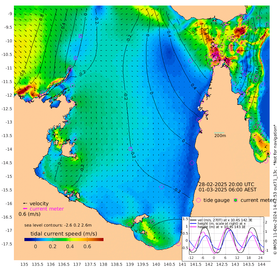 10cm/s -122T +3cm/s rms + 7cm/s -42T. ARA-GOC87 57m 14cm/s 17T +3cm/s rms + 2cm/s -2T. ARA-GOC87 60m 13cm/s -167T +2cm/s rms + 3cm/s 61T. ARA-GOC87 47m -160cm Daru -148cm Bobo Island -56cm Meer Island Barge -93cm Bramble Cay -130cm Unnamed Cay -133cm Pearce Cay -119cm Stephens Island -130cm Merrie England Shoals -155cm Mutacomal Reef -105cm Darnley Island Barge -63cm East Cay -126cm Yorke Island Barge -138cm Rennel Island -133cm Aureed Island -145cm Dungeness Reef -142cm Zagai Island -139cm Yam Island -114cm Dauan Island -97cm Saibai Island -136cm Phipi Reef -156cm Warrior Reef - West -62cm Mabuiag Island Barge -134cm Half Way Island -147cm Coconut Island -141cm Dugong Islet -143cm Poll Island -145cm Kirkcaldie Reef -130cm Suarji Island -133cm Sue Islet 25cm Hawkesbury Island -112cm Alert Patches -119cm Twin Island 0cm Badu Island -123cm St Pauls (Moa Island) -24cm Kubin (Moa Island) -81cm Ince Point -54cm Thursday Island -62cm Nardana Patches -30cm Turtle Head -4cm Round Island 30cm Goods Island 73cm Booby Island 59cm White Rocks Area 98cm Carpentaria -99cm Papou Point 72cm Bampfield Head 53cm Crab Island 57cm Red Wallis Island -8cm Packe Island -156cm Harrington Reef 33cm Herald Camp -44cm Sharp Point -21cm Red Island Point -67cm Possession Island -116cm Alpha Rock -136cm Frederick Point -153cm Wyborn Reef Light -153cm Tetley Island -60cm Triangle Reef -146cm Turtle Head Island -54cm Maclennan Cay -26cm Raine Island -121cm Mcsweeny Reef -107cm Collette Reef -61cm Shadwell Reef -115cm Hannibal Island -95cm Round Point 64cm Vrilya Point -77cm Cape Grenville -70cm Hicks Island -59cm Sir Charles Hardy Island -25cm Harvey Island -52cm Kay Reef -37cm Rocky Island -24cm Chapman Island -21cm Ham Reef -33cm Jubilee Reef -42cm Night Island -25cm Unnamed Reef No. 3 -39cm Morris Island -27cm 1st 3 Mile Opening -33cm Creech Reef -52cm Fife Island -31cm Eden Reef -37cm Stanley Island -43cm Normanby River 53cm Yabooma Island 36cm Hutchison River 48cm Elcho Island 46cm North West Crocodile Island 18cm Cape Wessel 18cm Stevens Island -32cm Guluwuru Island 32cm Hopeful Bay 23cm Auster Point 21cm Two Island Bay -9cm Cadell Strait -129cm Mallison Island -25cm Melville Bay (Gove Harbour) -23cm Truant Island -25cm Cape Arnhem -18cm Cape Grey -27cm Hawk Island -7cm Milner Bay (Groote Eylandt) -16cm Cape Beatrice -9cm West Island -6cm Centre Island -68cm Mornington Island -61cm West Wellesley Islands -54cm Bountiful Island -71cm Albert River Mouth -64cm Sweers Island -79cm Karumba -63cm Nassau River Offshore -46cm Christmas Creek 5cm Archer River 21cm Boyd Point 29cm Weipa (Humbug Point) 26cm Pennefather River 56cm Cullen Point