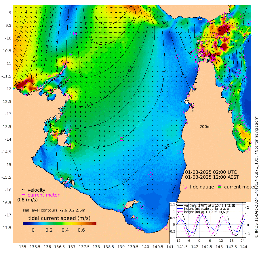 19cm/s 101T +3cm/s rms + 7cm/s -42T. ARA-GOC87 57m 28cm/s 167T +3cm/s rms + 2cm/s -2T. ARA-GOC87 60m 10cm/s 79T +2cm/s rms + 3cm/s 61T. ARA-GOC87 47m 182cm Daru 174cm Bobo Island 85cm Meer Island Barge 123cm Bramble Cay 161cm Unnamed Cay 164cm Pearce Cay 149cm Stephens Island 157cm Merrie England Shoals 182cm Mutacomal Reef 135cm Darnley Island Barge 93cm East Cay 155cm Yorke Island Barge 167cm Rennel Island 158cm Aureed Island 167cm Dungeness Reef 160cm Zagai Island 165cm Yam Island 132cm Dauan Island 122cm Saibai Island 124cm Phipi Reef 171cm Warrior Reef - West 99cm Mabuiag Island Barge 164cm Half Way Island 170cm Coconut Island 176cm Dugong Islet 169cm Poll Island 170cm Kirkcaldie Reef 150cm Suarji Island 162cm Sue Islet 55cm Hawkesbury Island 141cm Alert Patches 151cm Twin Island 60cm Badu Island 154cm St Pauls (Moa Island) 83cm Kubin (Moa Island) 120cm Ince Point 99cm Thursday Island 105cm Nardana Patches 78cm Turtle Head 51cm Round Island 37cm Goods Island 2cm Booby Island 17cm White Rocks Area -18cm Carpentaria 134cm Papou Point 4cm Bampfield Head -5cm Crab Island 16cm Red Wallis Island 63cm Packe Island 186cm Harrington Reef 28cm Herald Camp 43cm Sharp Point 65cm Red Island Point 96cm Possession Island 150cm Alpha Rock 168cm Frederick Point 185cm Wyborn Reef Light 185cm Tetley Island 88cm Triangle Reef 186cm Turtle Head Island 87cm Maclennan Cay 51cm Raine Island 150cm Mcsweeny Reef 132cm Collette Reef 84cm Shadwell Reef 141cm Hannibal Island 125cm Round Point -16cm Vrilya Point 105cm Cape Grenville 98cm Hicks Island 101cm Sir Charles Hardy Island 33cm Harvey Island 84cm Kay Reef 66cm Rocky Island 53cm Chapman Island 53cm Ham Reef 65cm Jubilee Reef 62cm Night Island 55cm Unnamed Reef No. 3 68cm Morris Island 56cm 1st 3 Mile Opening 63cm Creech Reef 76cm Fife Island 65cm Eden Reef 66cm Stanley Island 79cm Normanby River 23cm Yabooma Island 48cm Hutchison River 19cm Elcho Island 18cm North West Crocodile Island 55cm Cape Wessel 45cm Stevens Island 97cm Guluwuru Island 19cm Hopeful Bay 40cm Auster Point 49cm Two Island Bay 85cm Cadell Strait 176cm Mallison Island 73cm Melville Bay (Gove Harbour) 81cm Truant Island 53cm Cape Arnhem 23cm Cape Grey 4cm Hawk Island -41cm Milner Bay (Groote Eylandt) -36cm Cape Beatrice -67cm West Island -82cm Centre Island -57cm Mornington Island -53cm West Wellesley Islands -73cm Bountiful Island -100cm Albert River Mouth -127cm Sweers Island -99cm Karumba -29cm Nassau River Offshore -6cm Christmas Creek -13cm Archer River 1cm Boyd Point -11cm Weipa (Humbug Point) -13cm Pennefather River -15cm Cullen Point