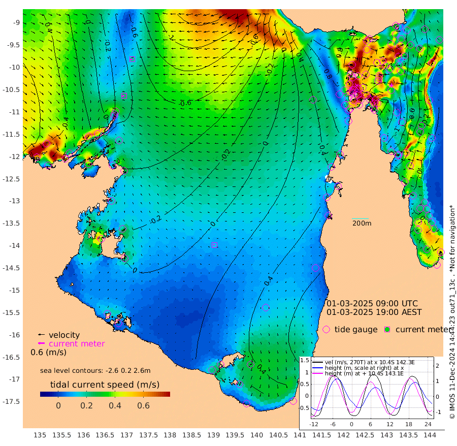 22cm/s -101T +3cm/s rms + 7cm/s -42T. ARA-GOC87 57m 12cm/s -80T +3cm/s rms + 2cm/s -2T. ARA-GOC87 60m 19cm/s -113T +2cm/s rms + 3cm/s 61T. ARA-GOC87 47m -120cm Daru -115cm Bobo Island -30cm Meer Island Barge -56cm Bramble Cay -95cm Unnamed Cay -94cm Pearce Cay -81cm Stephens Island -87cm Merrie England Shoals -116cm Mutacomal Reef -76cm Darnley Island Barge -30cm East Cay -101cm Yorke Island Barge -98cm Rennel Island -103cm Aureed Island -107cm Dungeness Reef -130cm Zagai Island -120cm Yam Island -93cm Dauan Island -105cm Saibai Island -83cm Phipi Reef -125cm Warrior Reef - West -78cm Mabuiag Island Barge -96cm Half Way Island -117cm Coconut Island -110cm Dugong Islet -118cm Poll Island -111cm Kirkcaldie Reef -120cm Suarji Island -126cm Sue Islet 19cm Hawkesbury Island -99cm Alert Patches -107cm Twin Island -2cm Badu Island -117cm St Pauls (Moa Island) -19cm Kubin (Moa Island) -74cm Ince Point -52cm Thursday Island -59cm Nardana Patches -16cm Turtle Head -2cm Round Island 34cm Goods Island 61cm Booby Island 49cm White Rocks Area 37cm Carpentaria -98cm Papou Point 36cm Bampfield Head 63cm Crab Island 54cm Red Wallis Island 14cm Packe Island -125cm Harrington Reef 37cm Herald Camp -39cm Sharp Point -10cm Red Island Point -62cm Possession Island -114cm Alpha Rock -117cm Frederick Point -129cm Wyborn Reef Light -133cm Tetley Island -38cm Triangle Reef -124cm Turtle Head Island -29cm Maclennan Cay 3cm Raine Island -89cm Mcsweeny Reef -73cm Collette Reef -31cm Shadwell Reef -77cm Hannibal Island -53cm Round Point 64cm Vrilya Point -43cm Cape Grenville -36cm Hicks Island -37cm Sir Charles Hardy Island -14cm Harvey Island -24cm Kay Reef -11cm Rocky Island 2cm Chapman Island -2cm Ham Reef -11cm Jubilee Reef -9cm Night Island 0cm Unnamed Reef No. 3 -9cm Morris Island -4cm 1st 3 Mile Opening -6cm Creech Reef -12cm Fife Island 3cm Eden Reef -5cm Stanley Island -11cm Normanby River 20cm Yabooma Island 4cm Hutchison River 18cm Elcho Island 22cm North West Crocodile Island -49cm Cape Wessel -18cm Stevens Island -86cm Guluwuru Island 1cm Hopeful Bay -30cm Auster Point -31cm Two Island Bay -37cm Cadell Strait -168cm Mallison Island -67cm Melville Bay (Gove Harbour) -76cm Truant Island -56cm Cape Arnhem -44cm Cape Grey -24cm Hawk Island -8cm Milner Bay (Groote Eylandt) 5cm Cape Beatrice 13cm West Island 23cm Centre Island 49cm Mornington Island 47cm West Wellesley Islands 56cm Bountiful Island 93cm Albert River Mouth 79cm Sweers Island 98cm Karumba 67cm Nassau River Offshore 62cm Christmas Creek 67cm Archer River 46cm Boyd Point 68cm Weipa (Humbug Point) 55cm Pennefather River 61cm Cullen Point