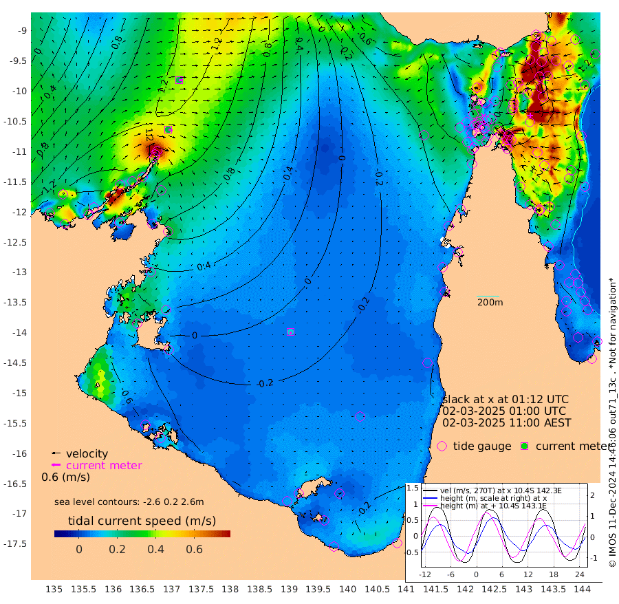 28cm/s 105T +3cm/s rms + 7cm/s -42T. ARA-GOC87 57m 16cm/s -178T +3cm/s rms + 2cm/s -2T. ARA-GOC87 60m 25cm/s 91T +2cm/s rms + 3cm/s 61T. ARA-GOC87 47m 132cm Daru 139cm Bobo Island 104cm Meer Island Barge 129cm Bramble Cay 138cm Unnamed Cay 148cm Pearce Cay 139cm Stephens Island 136cm Merrie England Shoals 134cm Mutacomal Reef 126cm Darnley Island Barge 115cm East Cay 126cm Yorke Island Barge 136cm Rennel Island 127cm Aureed Island 119cm Dungeness Reef 79cm Zagai Island 85cm Yam Island 42cm Dauan Island 30cm Saibai Island 42cm Phipi Reef 84cm Warrior Reef - West 27cm Mabuiag Island Barge 132cm Half Way Island 116cm Coconut Island 132cm Dugong Islet 103cm Poll Island 104cm Kirkcaldie Reef 74cm Suarji Island 90cm Sue Islet 38cm Hawkesbury Island 67cm Alert Patches 76cm Twin Island 27cm Badu Island 68cm St Pauls (Moa Island) 47cm Kubin (Moa Island) 52cm Ince Point 40cm Thursday Island 43cm Nardana Patches 38cm Turtle Head 25cm Round Island 26cm Goods Island -3cm Booby Island 15cm White Rocks Area -40cm Carpentaria 66cm Papou Point 3cm Bampfield Head -17cm Crab Island 2cm Red Wallis Island 31cm Packe Island 135cm Harrington Reef 11cm Herald Camp 5cm Sharp Point 32cm Red Island Point 46cm Possession Island 75cm Alpha Rock 102cm Frederick Point 133cm Wyborn Reef Light 126cm Tetley Island 92cm Triangle Reef 148cm Turtle Head Island 101cm Maclennan Cay 82cm Raine Island 129cm Mcsweeny Reef 117cm Collette Reef 92cm Shadwell Reef 131cm Hannibal Island 133cm Round Point -35cm Vrilya Point 113cm Cape Grenville 114cm Hicks Island 116cm Sir Charles Hardy Island 36cm Harvey Island 106cm Kay Reef 95cm Rocky Island 87cm Chapman Island 83cm Ham Reef 92cm Jubilee Reef 83cm Night Island 84cm Unnamed Reef No. 3 99cm Morris Island 87cm 1st 3 Mile Opening 91cm Creech Reef 102cm Fife Island 111cm Eden Reef 97cm Stanley Island 118cm Normanby River 188cm Yabooma Island 228cm Hutchison River 178cm Elcho Island 172cm North West Crocodile Island 144cm Cape Wessel 174cm Stevens Island 157cm Guluwuru Island 148cm Hopeful Bay 148cm Auster Point 157cm Two Island Bay 218cm Cadell Strait 140cm Mallison Island 137cm Melville Bay (Gove Harbour) 146cm Truant Island 88cm Cape Arnhem 50cm Cape Grey 23cm Hawk Island -31cm Milner Bay (Groote Eylandt) -32cm Cape Beatrice -86cm West Island -102cm Centre Island -72cm Mornington Island -67cm West Wellesley Islands -57cm Bountiful Island -78cm Albert River Mouth -95cm Sweers Island -82cm Karumba -44cm Nassau River Offshore -26cm Christmas Creek -20cm Archer River -12cm Boyd Point -11cm Weipa (Humbug Point) -33cm Pennefather River -31cm Cullen Point