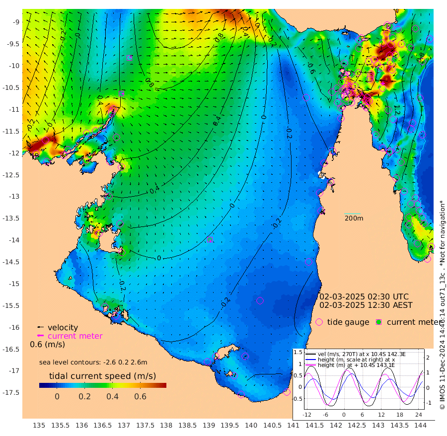 22cm/s 91T +3cm/s rms + 7cm/s -42T. ARA-GOC87 57m 22cm/s 169T +3cm/s rms + 2cm/s -2T. ARA-GOC87 60m 16cm/s 69T +2cm/s rms + 3cm/s 61T. ARA-GOC87 47m 157cm Daru 153cm Bobo Island 74cm Meer Island Barge 105cm Bramble Cay 136cm Unnamed Cay 143cm Pearce Cay 129cm Stephens Island 130cm Merrie England Shoals 152cm Mutacomal Reef 118cm Darnley Island Barge 81cm East Cay 136cm Yorke Island Barge 142cm Rennel Island 138cm Aureed Island 142cm Dungeness Reef 140cm Zagai Island 141cm Yam Island 113cm Dauan Island 106cm Saibai Island 104cm Phipi Reef 150cm Warrior Reef - West 75cm Mabuiag Island Barge 139cm Half Way Island 143cm Coconut Island 149cm Dugong Islet 141cm Poll Island 142cm Kirkcaldie Reef 122cm Suarji Island 137cm Sue Islet 20cm Hawkesbury Island 107cm Alert Patches 120cm Twin Island 27cm Badu Island 124cm St Pauls (Moa Island) 51cm Kubin (Moa Island) 88cm Ince Point 66cm Thursday Island 72cm Nardana Patches 44cm Turtle Head 20cm Round Island 2cm Goods Island -34cm Booby Island -21cm White Rocks Area -49cm Carpentaria 108cm Papou Point -32cm Bampfield Head -35cm Crab Island -22cm Red Wallis Island 25cm Packe Island 157cm Harrington Reef -4cm Herald Camp 35cm Sharp Point 37cm Red Island Point 68cm Possession Island 120cm Alpha Rock 138cm Frederick Point 156cm Wyborn Reef Light 156cm Tetley Island 75cm Triangle Reef 157cm Turtle Head Island 74cm Maclennan Cay 42cm Raine Island 128cm Mcsweeny Reef 111cm Collette Reef 70cm Shadwell Reef 120cm Hannibal Island 105cm Round Point -47cm Vrilya Point 87cm Cape Grenville 85cm Hicks Island 87cm Sir Charles Hardy Island 29cm Harvey Island 68cm Kay Reef 55cm Rocky Island 42cm Chapman Island 44cm Ham Reef 55cm Jubilee Reef 51cm Night Island 44cm Unnamed Reef No. 3 57cm Morris Island 46cm 1st 3 Mile Opening 52cm Creech Reef 65cm Fife Island 55cm Eden Reef 53cm Stanley Island 67cm Normanby River 46cm Yabooma Island 75cm Hutchison River 44cm Elcho Island 43cm North West Crocodile Island 75cm Cape Wessel 66cm Stevens Island 117cm Guluwuru Island 40cm Hopeful Bay 60cm Auster Point 73cm Two Island Bay 114cm Cadell Strait 186cm Mallison Island 91cm Melville Bay (Gove Harbour) 99cm Truant Island 67cm Cape Arnhem 36cm Cape Grey 16cm Hawk Island -28cm Milner Bay (Groote Eylandt) -26cm Cape Beatrice -60cm West Island -74cm Centre Island -47cm Mornington Island -45cm West Wellesley Islands -56cm Bountiful Island -75cm Albert River Mouth -97cm Sweers Island -76cm Karumba -31cm Nassau River Offshore -17cm Christmas Creek -30cm Archer River -18cm Boyd Point -31cm Weipa (Humbug Point) -37cm Pennefather River -41cm Cullen Point