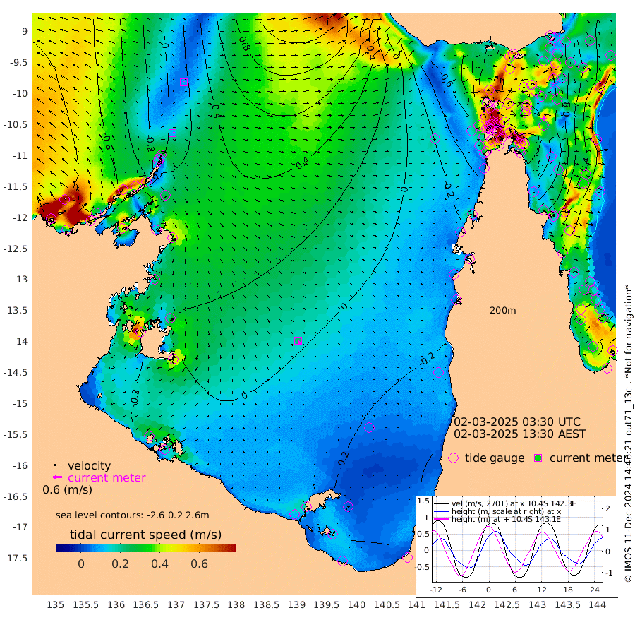 11cm/s 71T +3cm/s rms + 7cm/s -42T. ARA-GOC87 57m 23cm/s 163T +3cm/s rms + 2cm/s -2T. ARA-GOC87 60m 8cm/s 15T +2cm/s rms + 3cm/s 61T. ARA-GOC87 47m 128cm Daru 117cm Bobo Island 33cm Meer Island Barge 58cm Bramble Cay 95cm Unnamed Cay 97cm Pearce Cay 85cm Stephens Island 88cm Merrie England Shoals 121cm Mutacomal Reef 78cm Darnley Island Barge 34cm East Cay 103cm Yorke Island Barge 105cm Rennel Island 105cm Aureed Island 117cm Dungeness Reef 141cm Zagai Island 141cm Yam Island 133cm Dauan Island 132cm Saibai Island 116cm Phipi Reef 152cm Warrior Reef - West 92cm Mabuiag Island Barge 105cm Half Way Island 120cm Coconut Island 120cm Dugong Islet 128cm Poll Island 128cm Kirkcaldie Reef 119cm Suarji Island 132cm Sue Islet 15cm Hawkesbury Island 107cm Alert Patches 118cm Twin Island 28cm Badu Island 129cm St Pauls (Moa Island) 48cm Kubin (Moa Island) 91cm Ince Point 70cm Thursday Island 77cm Nardana Patches 43cm Turtle Head 19cm Round Island -5cm Goods Island -33cm Booby Island -28cm White Rocks Area -28cm Carpentaria 110cm Papou Point -37cm Bampfield Head -28cm Crab Island -19cm Red Wallis Island 23cm Packe Island 126cm Harrington Reef -2cm Herald Camp 46cm Sharp Point 37cm Red Island Point 66cm Possession Island 119cm Alpha Rock 125cm Frederick Point 126cm Wyborn Reef Light 132cm Tetley Island 43cm Triangle Reef 119cm Turtle Head Island 35cm Maclennan Cay 3cm Raine Island 90cm Mcsweeny Reef 74cm Collette Reef 35cm Shadwell Reef 76cm Hannibal Island 55cm Round Point -32cm Vrilya Point 44cm Cape Grenville 40cm Hicks Island 44cm Sir Charles Hardy Island 16cm Harvey Island 24cm Kay Reef 13cm Rocky Island 1cm Chapman Island 6cm Ham Reef 15cm Jubilee Reef 15cm Night Island 5cm Unnamed Reef No. 3 12cm Morris Island 5cm 1st 3 Mile Opening 11cm Creech Reef 21cm Fife Island 2cm Eden Reef 9cm Stanley Island 14cm Normanby River -64cm Yabooma Island -52cm Hutchison River -61cm Elcho Island -58cm North West Crocodile Island 5cm Cape Wessel -30cm Stevens Island 55cm Guluwuru Island -47cm Hopeful Bay -20cm Auster Point -6cm Two Island Bay 9cm Cadell Strait 161cm Mallison Island 31cm Melville Bay (Gove Harbour) 36cm Truant Island 30cm Cape Arnhem 12cm Cape Grey 0cm Hawk Island -27cm Milner Bay (Groote Eylandt) -21cm Cape Beatrice -32cm West Island -43cm Centre Island -27cm Mornington Island -27cm West Wellesley Islands -51cm Bountiful Island -68cm Albert River Mouth -91cm Sweers Island -66cm Karumba -19cm Nassau River Offshore -6cm Christmas Creek -25cm Archer River -11cm Boyd Point -29cm Weipa (Humbug Point) -25cm Pennefather River -27cm Cullen Point