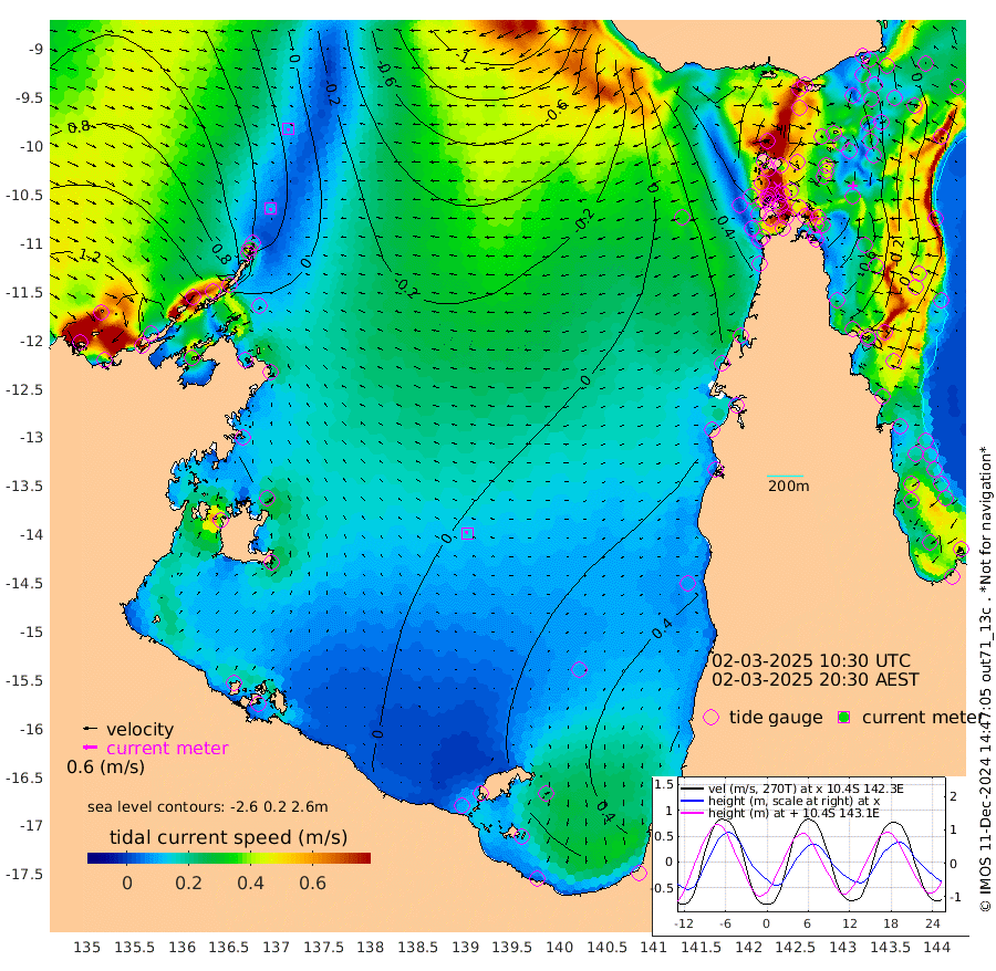 10cm/s -165T +3cm/s rms + 7cm/s -42T. ARA-GOC87 57m 13cm/s -61T +3cm/s rms + 2cm/s -2T. ARA-GOC87 60m 10cm/s 165T +2cm/s rms + 3cm/s 61T. ARA-GOC87 47m -67cm Daru -58cm Bobo Island 5cm Meer Island Barge -6cm Bramble Cay -41cm Unnamed Cay -33cm Pearce Cay -27cm Stephens Island -30cm Merrie England Shoals -61cm Mutacomal Reef -31cm Darnley Island Barge 11cm East Cay -54cm Yorke Island Barge -44cm Rennel Island -53cm Aureed Island -60cm Dungeness Reef -102cm Zagai Island -93cm Yam Island -91cm Dauan Island -109cm Saibai Island -72cm Phipi Reef -100cm Warrior Reef - West -73cm Mabuiag Island Barge -45cm Half Way Island -67cm Coconut Island -61cm Dugong Islet -77cm Poll Island -71cm Kirkcaldie Reef -89cm Suarji Island -94cm Sue Islet 22cm Hawkesbury Island -72cm Alert Patches -76cm Twin Island 5cm Badu Island -91cm St Pauls (Moa Island) -9cm Kubin (Moa Island) -56cm Ince Point -39cm Thursday Island -45cm Nardana Patches -6cm Turtle Head 2cm Round Island 36cm Goods Island 51cm Booby Island 51cm White Rocks Area 10cm Carpentaria -73cm Papou Point 31cm Bampfield Head 53cm Crab Island 47cm Red Wallis Island 20cm Packe Island -68cm Harrington Reef 25cm Herald Camp -38cm Sharp Point -1cm Red Island Point -43cm Possession Island -86cm Alpha Rock -76cm Frederick Point -72cm Wyborn Reef Light -79cm Tetley Island -7cm Triangle Reef -60cm Turtle Head Island 3cm Maclennan Cay 30cm Raine Island -38cm Mcsweeny Reef -28cm Collette Reef 1cm Shadwell Reef -26cm Hannibal Island 0cm Round Point 47cm Vrilya Point -1cm Cape Grenville 5cm Hicks Island -3cm Sir Charles Hardy Island -1cm Harvey Island 13cm Kay Reef 20cm Rocky Island 31cm Chapman Island 22cm Ham Reef 18cm Jubilee Reef 19cm Night Island 27cm Unnamed Reef No. 3 25cm Morris Island 25cm 1st 3 Mile Opening 23cm Creech Reef 24cm Fife Island 39cm Eden Reef 27cm Stanley Island 30cm Normanby River 118cm Yabooma Island 120cm Hutchison River 113cm Elcho Island 112cm North West Crocodile Island 21cm Cape Wessel 78cm Stevens Island -20cm Guluwuru Island 82cm Hopeful Bay 48cm Auster Point 45cm Two Island Bay 69cm Cadell Strait -117cm Mallison Island -3cm Melville Bay (Gove Harbour) -8cm Truant Island -15cm Cape Arnhem -17cm Cape Grey -7cm Hawk Island -5cm Milner Bay (Groote Eylandt) 1cm Cape Beatrice -13cm West Island -6cm Centre Island 25cm Mornington Island 23cm West Wellesley Islands 36cm Bountiful Island 74cm Albert River Mouth 64cm Sweers Island 77cm Karumba 46cm Nassau River Offshore 42cm Christmas Creek 51cm Archer River 28cm Boyd Point 52cm Weipa (Humbug Point) 42cm Pennefather River 38cm Cullen Point