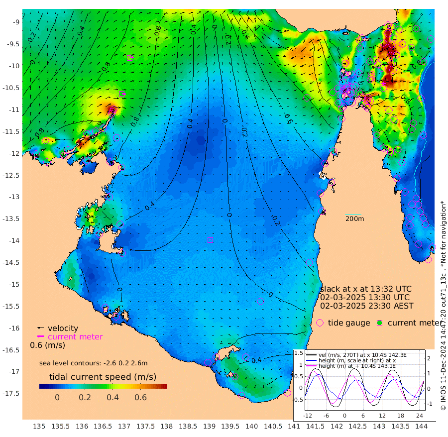 36cm/s 97T +3cm/s rms + 7cm/s -42T. ARA-GOC87 57m 8cm/s -49T +3cm/s rms + 2cm/s -2T. ARA-GOC87 60m 38cm/s 82T +2cm/s rms + 3cm/s 61T. ARA-GOC87 47m 99cm Daru 107cm Bobo Island 73cm Meer Island Barge 92cm Bramble Cay 97cm Unnamed Cay 111cm Pearce Cay 102cm Stephens Island 99cm Merrie England Shoals 91cm Mutacomal Reef 92cm Darnley Island Barge 79cm East Cay 90cm Yorke Island Barge 94cm Rennel Island 96cm Aureed Island 86cm Dungeness Reef 53cm Zagai Island 41cm Yam Island 7cm Dauan Island -11cm Saibai Island 41cm Phipi Reef 53cm Warrior Reef - West -25cm Mabuiag Island Barge 91cm Half Way Island 87cm Coconut Island 82cm Dugong Islet 65cm Poll Island 63cm Kirkcaldie Reef 43cm Suarji Island 48cm Sue Islet -71cm Hawkesbury Island 24cm Alert Patches 30cm Twin Island -46cm Badu Island 24cm St Pauls (Moa Island) -32cm Kubin (Moa Island) -2cm Ince Point -19cm Thursday Island -15cm Nardana Patches -28cm Turtle Head -41cm Round Island -59cm Goods Island -93cm Booby Island -79cm White Rocks Area -124cm Carpentaria 18cm Papou Point -82cm Bampfield Head -76cm Crab Island -90cm Red Wallis Island -44cm Packe Island 93cm Harrington Reef -78cm Herald Camp 1cm Sharp Point -31cm Red Island Point 6cm Possession Island 24cm Alpha Rock 57cm Frederick Point 91cm Wyborn Reef Light 82cm Tetley Island 59cm Triangle Reef 102cm Turtle Head Island 62cm Maclennan Cay 56cm Raine Island 93cm Mcsweeny Reef 87cm Collette Reef 66cm Shadwell Reef 99cm Hannibal Island 96cm Round Point -89cm Vrilya Point 76cm Cape Grenville 80cm Hicks Island 63cm Sir Charles Hardy Island 25cm Harvey Island 67cm Kay Reef 62cm Rocky Island 55cm Chapman Island 46cm Ham Reef 57cm Jubilee Reef 60cm Night Island 50cm Unnamed Reef No. 3 66cm Morris Island 59cm 1st 3 Mile Opening 59cm Creech Reef 75cm Fife Island 74cm Eden Reef 63cm Stanley Island 75cm Normanby River 122cm Yabooma Island 162cm Hutchison River 127cm Elcho Island 116cm North West Crocodile Island 93cm Cape Wessel 132cm Stevens Island 121cm Guluwuru Island 114cm Hopeful Bay 108cm Auster Point 105cm Two Island Bay 167cm Cadell Strait 139cm Mallison Island 115cm Melville Bay (Gove Harbour) 118cm Truant Island 83cm Cape Arnhem 62cm Cape Grey 56cm Hawk Island 29cm Milner Bay (Groote Eylandt) 21cm Cape Beatrice -15cm West Island -15cm Centre Island 37cm Mornington Island 28cm West Wellesley Islands 47cm Bountiful Island 73cm Albert River Mouth 89cm Sweers Island 71cm Karumba 26cm Nassau River Offshore 4cm Christmas Creek -25cm Archer River -46cm Boyd Point -43cm Weipa (Humbug Point) -45cm Pennefather River -84cm Cullen Point