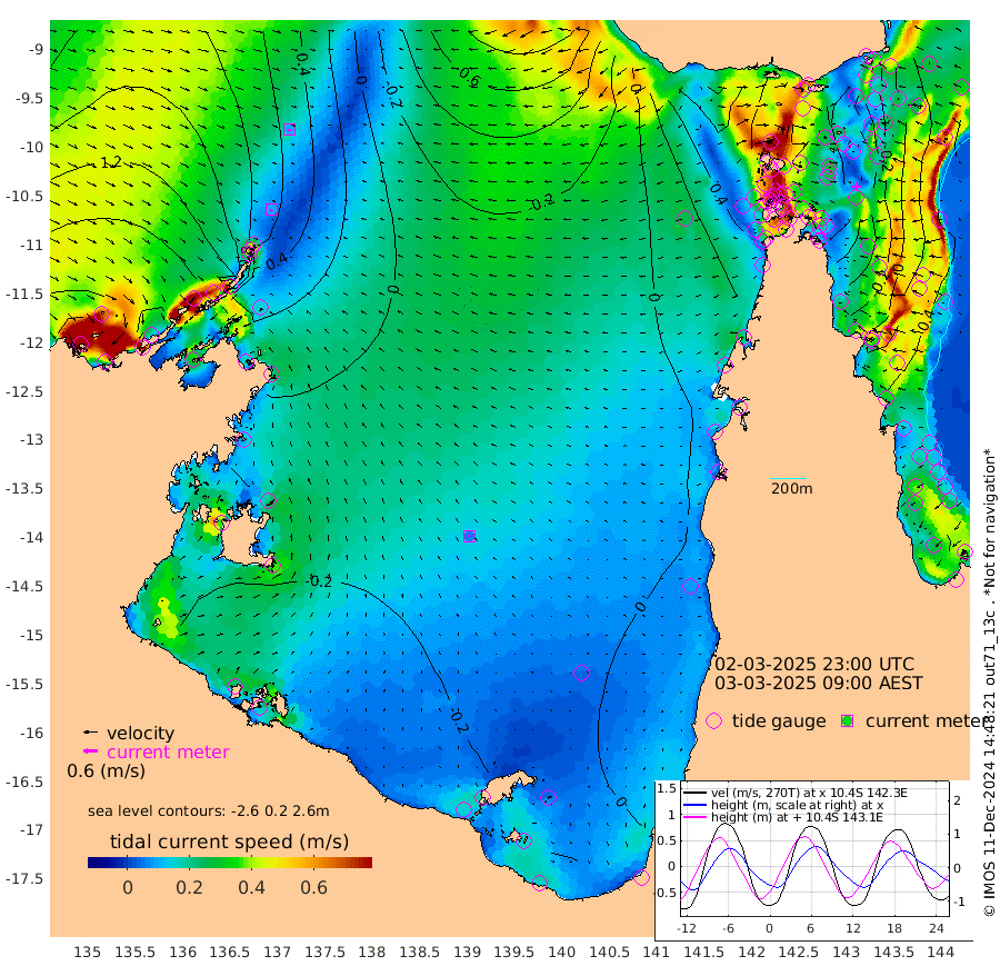 10cm/s -134T +3cm/s rms + 7cm/s -42T. ARA-GOC87 57m 6cm/s -66T +3cm/s rms + 2cm/s -2T. ARA-GOC87 60m 9cm/s -174T +2cm/s rms + 3cm/s 61T. ARA-GOC87 47m -36cm Daru -25cm Bobo Island 25cm Meer Island Barge 19cm Bramble Cay -5cm Unnamed Cay -1cm Pearce Cay 2cm Stephens Island -3cm Merrie England Shoals -25cm Mutacomal Reef -2cm Darnley Island Barge 32cm East Cay -19cm Yorke Island Barge -10cm Rennel Island -20cm Aureed Island -28cm Dungeness Reef -65cm Zagai Island -54cm Yam Island -60cm Dauan Island -65cm Saibai Island -61cm Phipi Reef -67cm Warrior Reef - West -27cm Mabuiag Island Barge -16cm Half Way Island -35cm Coconut Island -22cm Dugong Islet -40cm Poll Island -42cm Kirkcaldie Reef -40cm Suarji Island -50cm Sue Islet 68cm Hawkesbury Island -31cm Alert Patches -36cm Twin Island 38cm Badu Island -48cm St Pauls (Moa Island) 30cm Kubin (Moa Island) -18cm Ince Point -3cm Thursday Island -7cm Nardana Patches 24cm Turtle Head 41cm Round Island 68cm Goods Island 80cm Booby Island 87cm White Rocks Area 45cm Carpentaria -33cm Papou Point 87cm Bampfield Head 49cm Crab Island 69cm Red Wallis Island 42cm Packe Island -28cm Harrington Reef 63cm Herald Camp -32cm Sharp Point 21cm Red Island Point -5cm Possession Island -38cm Alpha Rock -35cm Frederick Point -27cm Wyborn Reef Light -33cm Tetley Island 17cm Triangle Reef -17cm Turtle Head Island 28cm Maclennan Cay 40cm Raine Island -6cm Mcsweeny Reef -1cm Collette Reef 18cm Shadwell Reef 2cm Hannibal Island 25cm Round Point 35cm Vrilya Point 23cm Cape Grenville 27cm Hicks Island 33cm Sir Charles Hardy Island 5cm Harvey Island 37cm Kay Reef 41cm Rocky Island 48cm Chapman Island 43cm Ham Reef 37cm Jubilee Reef 28cm Night Island 43cm Unnamed Reef No. 3 43cm Morris Island 42cm 1st 3 Mile Opening 39cm Creech Reef 35cm Fife Island 55cm Eden Reef 42cm Stanley Island 52cm Normanby River 188cm Yabooma Island 197cm Hutchison River 173cm Elcho Island 169cm North West Crocodile Island 88cm Cape Wessel 134cm Stevens Island 36cm Guluwuru Island 134cm Hopeful Bay 109cm Auster Point 104cm Two Island Bay 119cm Cadell Strait -107cm Mallison Island 47cm Melville Bay (Gove Harbour) 48cm Truant Island 16cm Cape Arnhem 9cm Cape Grey 0cm Hawk Island -15cm Milner Bay (Groote Eylandt) -16cm Cape Beatrice -41cm West Island -46cm Centre Island -51cm Mornington Island -42cm West Wellesley Islands -11cm Bountiful Island -27cm Albert River Mouth -27cm Sweers Island -30cm Karumba -28cm Nassau River Offshore -15cm Christmas Creek 18cm Archer River 22cm Boyd Point 41cm Weipa (Humbug Point) 8cm Pennefather River 36cm Cullen Point