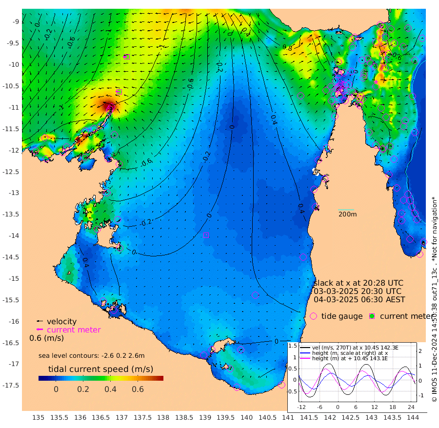 38cm/s -83T +3cm/s rms + 7cm/s -42T. ARA-GOC87 57m 6cm/s 52T +3cm/s rms + 2cm/s -2T. ARA-GOC87 60m 37cm/s -97T +2cm/s rms + 3cm/s 61T. ARA-GOC87 47m -73cm Daru -81cm Bobo Island -46cm Meer Island Barge -60cm Bramble Cay -60cm Unnamed Cay -80cm Pearce Cay -68cm Stephens Island -59cm Merrie England Shoals -60cm Mutacomal Reef -61cm Darnley Island Barge -52cm East Cay -63cm Yorke Island Barge -65cm Rennel Island -67cm Aureed Island -60cm Dungeness Reef -50cm Zagai Island -45cm Yam Island -33cm Dauan Island -19cm Saibai Island -36cm Phipi Reef -58cm Warrior Reef - West 7cm Mabuiag Island Barge -64cm Half Way Island -60cm Coconut Island -59cm Dugong Islet -50cm Poll Island -49cm Kirkcaldie Reef -21cm Suarji Island -39cm Sue Islet 38cm Hawkesbury Island -9cm Alert Patches -23cm Twin Island 24cm Badu Island -22cm St Pauls (Moa Island) 13cm Kubin (Moa Island) -1cm Ince Point 14cm Thursday Island 10cm Nardana Patches 21cm Turtle Head 36cm Round Island 43cm Goods Island 73cm Booby Island 63cm White Rocks Area 101cm Carpentaria -24cm Papou Point 85cm Bampfield Head 53cm Crab Island 62cm Red Wallis Island 28cm Packe Island -62cm Harrington Reef 58cm Herald Camp -2cm Sharp Point 13cm Red Island Point 6cm Possession Island -18cm Alpha Rock -42cm Frederick Point -62cm Wyborn Reef Light -58cm Tetley Island -39cm Triangle Reef -69cm Turtle Head Island -40cm Maclennan Cay -33cm Raine Island -59cm Mcsweeny Reef -52cm Collette Reef -37cm Shadwell Reef -59cm Hannibal Island -61cm Round Point 67cm Vrilya Point -42cm Cape Grenville -51cm Hicks Island -42cm Sir Charles Hardy Island -16cm Harvey Island -35cm Kay Reef -35cm Rocky Island -30cm Chapman Island -27cm Ham Reef -35cm Jubilee Reef -34cm Night Island -29cm Unnamed Reef No. 3 -38cm Morris Island -28cm 1st 3 Mile Opening -33cm Creech Reef -50cm Fife Island -44cm Eden Reef -32cm Stanley Island -47cm Normanby River -144cm Yabooma Island -185cm Hutchison River -148cm Elcho Island -143cm North West Crocodile Island -118cm Cape Wessel -150cm Stevens Island -143cm Guluwuru Island -123cm Hopeful Bay -120cm Auster Point -134cm Two Island Bay -208cm Cadell Strait -169cm Mallison Island -124cm Melville Bay (Gove Harbour) -130cm Truant Island -86cm Cape Arnhem -49cm Cape Grey -34cm Hawk Island 7cm Milner Bay (Groote Eylandt) 9cm Cape Beatrice 58cm West Island 65cm Centre Island 15cm Mornington Island 23cm West Wellesley Islands 20cm Bountiful Island -10cm Albert River Mouth 6cm Sweers Island -8cm Karumba 7cm Nassau River Offshore 12cm Christmas Creek 29cm Archer River 38cm Boyd Point 39cm Weipa (Humbug Point) 42cm Pennefather River 63cm Cullen Point