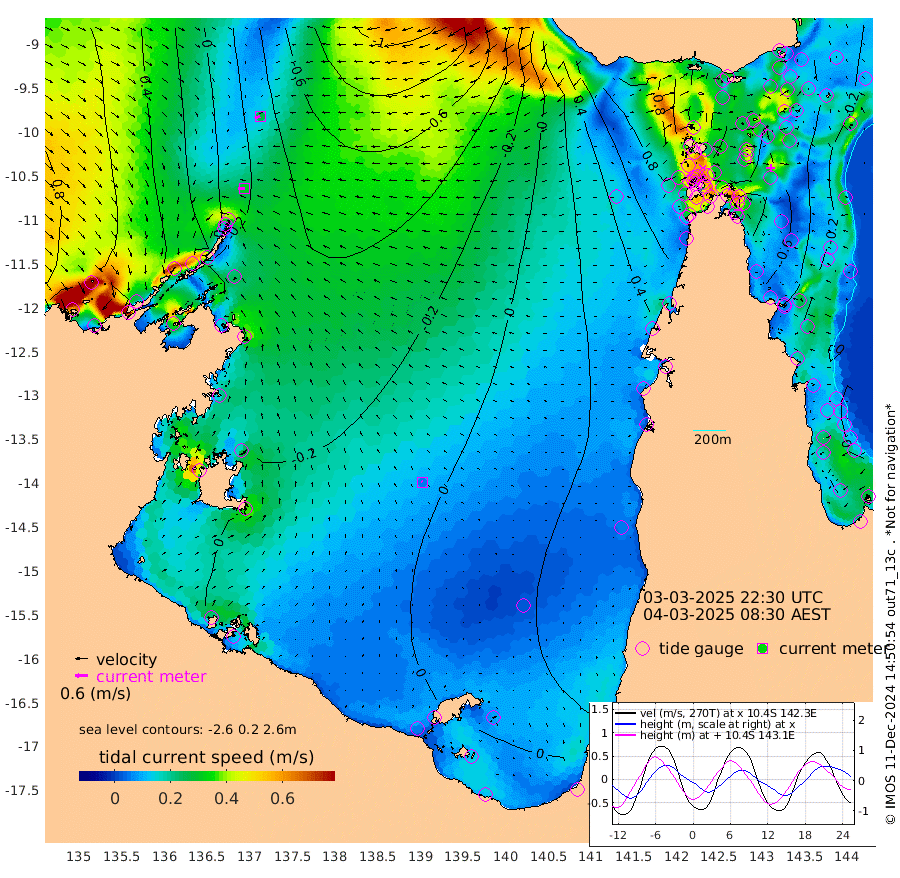 31cm/s -94T +3cm/s rms + 7cm/s -42T. ARA-GOC87 57m 6cm/s -50T +3cm/s rms + 2cm/s -2T. ARA-GOC87 60m 27cm/s -110T +2cm/s rms + 3cm/s 61T. ARA-GOC87 47m -63cm Daru -62cm Bobo Island -17cm Meer Island Barge -25cm Bramble Cay -39cm Unnamed Cay -46cm Pearce Cay -41cm Stephens Island -37cm Merrie England Shoals -48cm Mutacomal Reef -42cm Darnley Island Barge -13cm East Cay -52cm Yorke Island Barge -42cm Rennel Island -52cm Aureed Island -48cm Dungeness Reef -64cm Zagai Island -52cm Yam Island -41cm Dauan Island -43cm Saibai Island -41cm Phipi Reef -65cm Warrior Reef - West -1cm Mabuiag Island Barge -48cm Half Way Island -53cm Coconut Island -47cm Dugong Islet -48cm Poll Island -51cm Kirkcaldie Reef -26cm Suarji Island -52cm Sue Islet 83cm Hawkesbury Island -14cm Alert Patches -26cm Twin Island 58cm Badu Island -33cm St Pauls (Moa Island) 43cm Kubin (Moa Island) 0cm Ince Point 19cm Thursday Island 14cm Nardana Patches 44cm Turtle Head 64cm Round Island 86cm Goods Island 107cm Booby Island 110cm White Rocks Area 84cm Carpentaria -27cm Papou Point 117cm Bampfield Head 75cm Crab Island 96cm Red Wallis Island 61cm Packe Island -52cm Harrington Reef 89cm Herald Camp -20cm Sharp Point 35cm Red Island Point 11cm Possession Island -29cm Alpha Rock -40cm Frederick Point -50cm Wyborn Reef Light -51cm Tetley Island -14cm Triangle Reef -50cm Turtle Head Island -9cm Maclennan Cay 3cm Raine Island -39cm Mcsweeny Reef -33cm Collette Reef -14cm Shadwell Reef -36cm Hannibal Island -20cm Round Point 66cm Vrilya Point -13cm Cape Grenville -15cm Hicks Island -8cm Sir Charles Hardy Island -7cm Harvey Island -2cm Kay Reef 2cm Rocky Island 11cm Chapman Island 6cm Ham Reef -2cm Jubilee Reef -5cm Night Island 6cm Unnamed Reef No. 3 1cm Morris Island 5cm 1st 3 Mile Opening 0cm Creech Reef -9cm Fife Island 3cm Eden Reef 2cm Stanley Island 1cm Normanby River 64cm Yabooma Island 50cm Hutchison River 52cm Elcho Island 53cm North West Crocodile Island -8cm Cape Wessel 18cm Stevens Island -64cm Guluwuru Island 32cm Hopeful Bay 10cm Auster Point -2cm Two Island Bay -29cm Cadell Strait -202cm Mallison Island -40cm Melville Bay (Gove Harbour) -45cm Truant Island -41cm Cape Arnhem -24cm Cape Grey -17cm Hawk Island -5cm Milner Bay (Groote Eylandt) -2cm Cape Beatrice 7cm West Island 7cm Centre Island -11cm Mornington Island -2cm West Wellesley Islands 23cm Bountiful Island 5cm Albert River Mouth 11cm Sweers Island 6cm Karumba 1cm Nassau River Offshore 9cm Christmas Creek 37cm Archer River 41cm Boyd Point 59cm Weipa (Humbug Point) 33cm Pennefather River 66cm Cullen Point