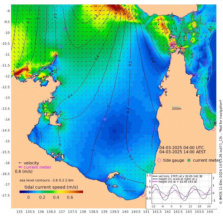 20cm/s 63T +3cm/s rms + 7cm/s -42T. ARA-GOC87 57m 9cm/s -179T +3cm/s rms + 2cm/s -2T. ARA-GOC87 60m 22cm/s 45T +2cm/s rms + 3cm/s 61T. ARA-GOC87 47m 77cm Daru 79cm Bobo Island 33cm Meer Island Barge 45cm Bramble Cay 60cm Unnamed Cay 65cm Pearce Cay 59cm Stephens Island 51cm Merrie England Shoals 65cm Mutacomal Reef 60cm Darnley Island Barge 34cm East Cay 70cm Yorke Island Barge 62cm Rennel Island 69cm Aureed Island 64cm Dungeness Reef 77cm Zagai Island 70cm Yam Island 60cm Dauan Island 63cm Saibai Island 48cm Phipi Reef 83cm Warrior Reef - West 15cm Mabuiag Island Barge 61cm Half Way Island 62cm Coconut Island 67cm Dugong Islet 61cm Poll Island 59cm Kirkcaldie Reef 44cm Suarji Island 67cm Sue Islet -65cm Hawkesbury Island 21cm Alert Patches 35cm Twin Island -54cm Badu Island 42cm St Pauls (Moa Island) -29cm Kubin (Moa Island) 7cm Ince Point -15cm Thursday Island -8cm Nardana Patches -38cm Turtle Head -51cm Round Island -80cm Goods Island -111cm Booby Island -105cm White Rocks Area -101cm Carpentaria 36cm Papou Point -106cm Bampfield Head -97cm Crab Island -100cm Red Wallis Island -59cm Packe Island 66cm Harrington Reef -72cm Herald Camp 17cm Sharp Point -33cm Red Island Point -3cm Possession Island 43cm Alpha Rock 51cm Frederick Point 68cm Wyborn Reef Light 68cm Tetley Island 31cm Triangle Reef 63cm Turtle Head Island 29cm Maclennan Cay 9cm Raine Island 56cm Mcsweeny Reef 48cm Collette Reef 27cm Shadwell Reef 52cm Hannibal Island 39cm Round Point -103cm Vrilya Point 31cm Cape Grenville 35cm Hicks Island 39cm Sir Charles Hardy Island 12cm Harvey Island 20cm Kay Reef 19cm Rocky Island 8cm Chapman Island 13cm Ham Reef 19cm Jubilee Reef 16cm Night Island 9cm Unnamed Reef No. 3 17cm Morris Island 9cm 1st 3 Mile Opening 15cm Creech Reef 24cm Fife Island 17cm Eden Reef 13cm Stanley Island 23cm Normanby River 24cm Yabooma Island 49cm Hutchison River 30cm Elcho Island 29cm North West Crocodile Island 65cm Cape Wessel 47cm Stevens Island 110cm Guluwuru Island 32cm Hopeful Bay 48cm Auster Point 64cm Two Island Bay 96cm Cadell Strait 187cm Mallison Island 84cm Melville Bay (Gove Harbour) 89cm Truant Island 66cm Cape Arnhem 45cm Cape Grey 33cm Hawk Island 4cm Milner Bay (Groote Eylandt) 3cm Cape Beatrice -19cm West Island -29cm Centre Island -2cm Mornington Island -5cm West Wellesley Islands -1cm Bountiful Island -1cm Albert River Mouth -9cm Sweers Island -6cm Karumba -16cm Nassau River Offshore -25cm Christmas Creek -55cm Archer River -51cm Boyd Point -65cm Weipa (Humbug Point) -76cm Pennefather River -84cm Cullen Point