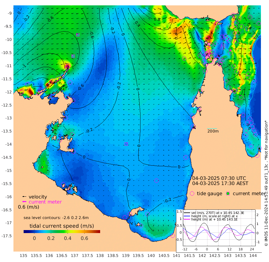 20cm/s -59T +3cm/s rms + 7cm/s -42T. ARA-GOC87 57m 7cm/s 61T +3cm/s rms + 2cm/s -2T. ARA-GOC87 60m 21cm/s -76T +2cm/s rms + 3cm/s 61T. ARA-GOC87 47m -51cm Daru -59cm Bobo Island -55cm Meer Island Barge -61cm Bramble Cay -55cm Unnamed Cay -71cm Pearce Cay -61cm Stephens Island -52cm Merrie England Shoals -44cm Mutacomal Reef -55cm Darnley Island Barge -60cm East Cay -50cm Yorke Island Barge -55cm Rennel Island -58cm Aureed Island -53cm Dungeness Reef -31cm Zagai Island -22cm Yam Island -28cm Dauan Island -8cm Saibai Island -44cm Phipi Reef -35cm Warrior Reef - West -9cm Mabuiag Island Barge -46cm Half Way Island -50cm Coconut Island -43cm Dugong Islet -38cm Poll Island -28cm Kirkcaldie Reef -43cm Suarji Island -22cm Sue Islet -18cm Hawkesbury Island -28cm Alert Patches -26cm Twin Island -32cm Badu Island -23cm St Pauls (Moa Island) -27cm Kubin (Moa Island) -20cm Ince Point -18cm Thursday Island -19cm Nardana Patches -31cm Turtle Head -27cm Round Island -32cm Goods Island -15cm Booby Island -25cm White Rocks Area 31cm Carpentaria -17cm Papou Point -32cm Bampfield Head 2cm Crab Island -8cm Red Wallis Island -25cm Packe Island -48cm Harrington Reef -14cm Herald Camp 9cm Sharp Point -12cm Red Island Point -29cm Possession Island -14cm Alpha Rock -35cm Frederick Point -50cm Wyborn Reef Light -44cm Tetley Island -50cm Triangle Reef -57cm Turtle Head Island -52cm Maclennan Cay -54cm Raine Island -56cm Mcsweeny Reef -52cm Collette Reef -49cm Shadwell Reef -58cm Hannibal Island -66cm Round Point 25cm Vrilya Point -52cm Cape Grenville -59cm Hicks Island -57cm Sir Charles Hardy Island -16cm Harvey Island -52cm Kay Reef -57cm Rocky Island -58cm Chapman Island -48cm Ham Reef -51cm Jubilee Reef -49cm Night Island -49cm Unnamed Reef No. 3 -59cm Morris Island -58cm 1st 3 Mile Opening -53cm Creech Reef -61cm Fife Island -68cm Eden Reef -52cm Stanley Island -61cm Normanby River -169cm Yabooma Island -208cm Hutchison River -169cm Elcho Island -155cm North West Crocodile Island -104cm Cape Wessel -148cm Stevens Island -105cm Guluwuru Island -137cm Hopeful Bay -124cm Auster Point -114cm Two Island Bay -165cm Cadell Strait -35cm Mallison Island -108cm Melville Bay (Gove Harbour) -111cm Truant Island -72cm Cape Arnhem -48cm Cape Grey -37cm Hawk Island -3cm Milner Bay (Groote Eylandt) 4cm Cape Beatrice 46cm West Island 50cm Centre Island 9cm Mornington Island 12cm West Wellesley Islands -25cm Bountiful Island -24cm Albert River Mouth -33cm Sweers Island -19cm Karumba -3cm Nassau River Offshore -4cm Christmas Creek -6cm Archer River -1cm Boyd Point -16cm Weipa (Humbug Point) 16cm Pennefather River 16cm Cullen Point