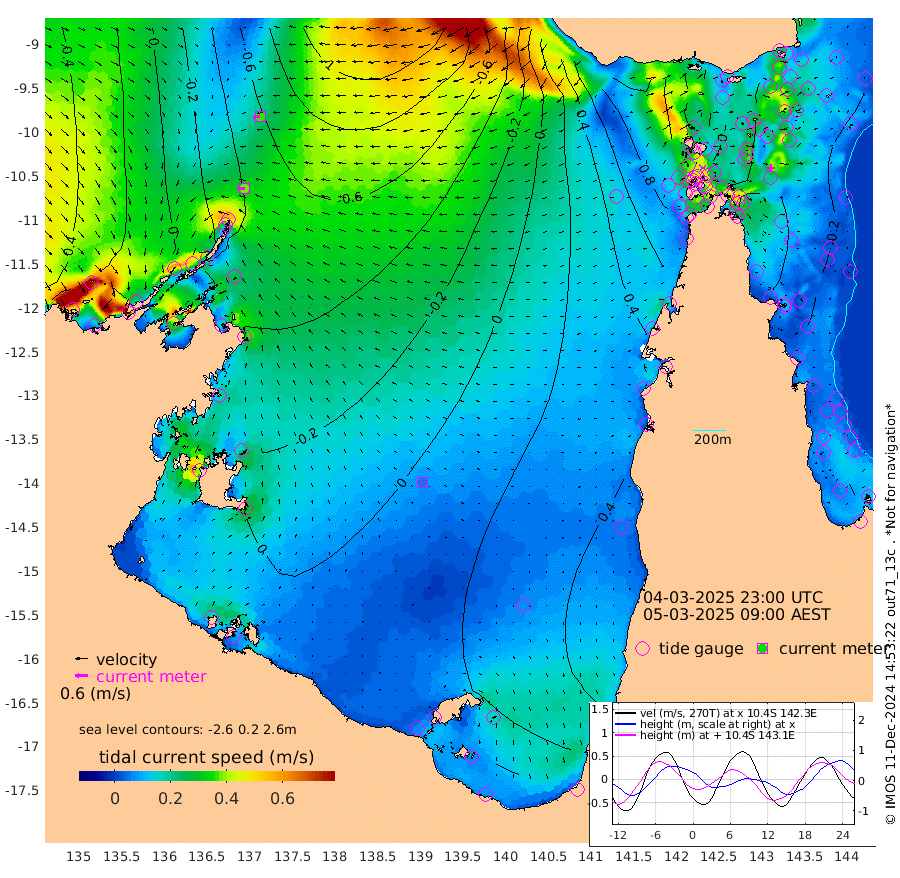 38cm/s -91T +3cm/s rms + 7cm/s -42T. ARA-GOC87 57m 6cm/s -100T +3cm/s rms + 2cm/s -2T. ARA-GOC87 60m 36cm/s -103T +2cm/s rms + 3cm/s 61T. ARA-GOC87 47m -31cm Daru -38cm Bobo Island -17cm Meer Island Barge -18cm Bramble Cay -19cm Unnamed Cay -26cm Pearce Cay -25cm Stephens Island -18cm Merrie England Shoals -17cm Mutacomal Reef -31cm Darnley Island Barge -13cm East Cay -32cm Yorke Island Barge -17cm Rennel Island -28cm Aureed Island -15cm Dungeness Reef -25cm Zagai Island -12cm Yam Island 4cm Dauan Island -4cm Saibai Island 8cm Phipi Reef -21cm Warrior Reef - West 33cm Mabuiag Island Barge -24cm Half Way Island -20cm Coconut Island -18cm Dugong Islet -11cm Poll Island -14cm Kirkcaldie Reef 19cm Suarji Island -17cm Sue Islet 100cm Hawkesbury Island 27cm Alert Patches 14cm Twin Island 82cm Badu Island 11cm St Pauls (Moa Island) 68cm Kubin (Moa Island) 37cm Ince Point 52cm Thursday Island 48cm Nardana Patches 73cm Turtle Head 86cm Round Island 103cm Goods Island 118cm Booby Island 123cm White Rocks Area 86cm Carpentaria 8cm Papou Point 127cm Bampfield Head 85cm Crab Island 109cm Red Wallis Island 85cm Packe Island -19cm Harrington Reef 106cm Herald Camp -4cm Sharp Point 57cm Red Island Point 43cm Possession Island 8cm Alpha Rock -2cm Frederick Point -19cm Wyborn Reef Light -17cm Tetley Island -8cm Triangle Reef -23cm Turtle Head Island -7cm Maclennan Cay -2cm Raine Island -20cm Mcsweeny Reef -18cm Collette Reef -10cm Shadwell Reef -22cm Hannibal Island -12cm Round Point 72cm Vrilya Point -7cm Cape Grenville -12cm Hicks Island -6cm Sir Charles Hardy Island -5cm Harvey Island -2cm Kay Reef -2cm Rocky Island 4cm Chapman Island -1cm Ham Reef -6cm Jubilee Reef -6cm Night Island 1cm Unnamed Reef No. 3 -2cm Morris Island 2cm 1st 3 Mile Opening -4cm Creech Reef -10cm Fife Island -6cm Eden Reef -2cm Stanley Island -6cm Normanby River 22cm Yabooma Island 5cm Hutchison River 11cm Elcho Island 14cm North West Crocodile Island -41cm Cape Wessel -19cm Stevens Island -90cm Guluwuru Island -5cm Hopeful Bay -24cm Auster Point -39cm Two Island Bay -70cm Cadell Strait -224cm Mallison Island -62cm Melville Bay (Gove Harbour) -69cm Truant Island -54cm Cape Arnhem -32cm Cape Grey -20cm Hawk Island -5cm Milner Bay (Groote Eylandt) 3cm Cape Beatrice 20cm West Island 19cm Centre Island 12cm Mornington Island 21cm West Wellesley Islands 45cm Bountiful Island 29cm Albert River Mouth 31cm Sweers Island 32cm Karumba 25cm Nassau River Offshore 31cm Christmas Creek 48cm Archer River 51cm Boyd Point 68cm Weipa (Humbug Point) 42cm Pennefather River 73cm Cullen Point