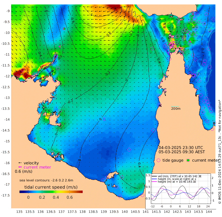 33cm/s -93T +3cm/s rms + 7cm/s -42T. ARA-GOC87 57m 8cm/s -95T +3cm/s rms + 2cm/s -2T. ARA-GOC87 60m 30cm/s -104T +2cm/s rms + 3cm/s 61T. ARA-GOC87 47m -25cm Daru -30cm Bobo Island -12cm Meer Island Barge -12cm Bramble Cay -15cm Unnamed Cay -18cm Pearce Cay -20cm Stephens Island -15cm Merrie England Shoals -14cm Mutacomal Reef -26cm Darnley Island Barge -7cm East Cay -28cm Yorke Island Barge -11cm Rennel Island -23cm Aureed Island -10cm Dungeness Reef -21cm Zagai Island -8cm Yam Island 11cm Dauan Island -1cm Saibai Island 14cm Phipi Reef -14cm Warrior Reef - West 33cm Mabuiag Island Barge -21cm Half Way Island -16cm Coconut Island -15cm Dugong Islet -7cm Poll Island -13cm Kirkcaldie Reef 21cm Suarji Island -17cm Sue Islet 98cm Hawkesbury Island 25cm Alert Patches 13cm Twin Island 82cm Badu Island 11cm St Pauls (Moa Island) 68cm Kubin (Moa Island) 35cm Ince Point 48cm Thursday Island 45cm Nardana Patches 71cm Turtle Head 84cm Round Island 100cm Goods Island 109cm Booby Island 116cm White Rocks Area 68cm Carpentaria 8cm Papou Point 118cm Bampfield Head 76cm Crab Island 101cm Red Wallis Island 82cm Packe Island -16cm Harrington Reef 101cm Herald Camp -6cm Sharp Point 55cm Red Island Point 41cm Possession Island 6cm Alpha Rock -1cm Frederick Point -15cm Wyborn Reef Light -13cm Tetley Island -4cm Triangle Reef -19cm Turtle Head Island -3cm Maclennan Cay 3cm Raine Island -16cm Mcsweeny Reef -15cm Collette Reef -7cm Shadwell Reef -18cm Hannibal Island -6cm Round Point 58cm Vrilya Point -5cm Cape Grenville -6cm Hicks Island -1cm Sir Charles Hardy Island -4cm Harvey Island 0cm Kay Reef 3cm Rocky Island 9cm Chapman Island 3cm Ham Reef -2cm Jubilee Reef -2cm Night Island 4cm Unnamed Reef No. 3 2cm Morris Island 5cm 1st 3 Mile Opening 0cm Creech Reef -4cm Fife Island 0cm Eden Reef 0cm Stanley Island 0cm Normanby River 70cm Yabooma Island 63cm Hutchison River 59cm Elcho Island 61cm North West Crocodile Island -10cm Cape Wessel 24cm Stevens Island -59cm Guluwuru Island 34cm Hopeful Bay 11cm Auster Point -3cm Two Island Bay -18cm Cadell Strait -207cm Mallison Island -33cm Melville Bay (Gove Harbour) -39cm Truant Island -35cm Cape Arnhem -19cm Cape Grey -10cm Hawk Island -4cm Milner Bay (Groote Eylandt) 3cm Cape Beatrice 8cm West Island 6cm Centre Island 10cm Mornington Island 16cm West Wellesley Islands 49cm Bountiful Island 39cm Albert River Mouth 39cm Sweers Island 41cm Karumba 24cm Nassau River Offshore 27cm Christmas Creek 43cm Archer River 44cm Boyd Point 64cm Weipa (Humbug Point) 30cm Pennefather River 62cm Cullen Point