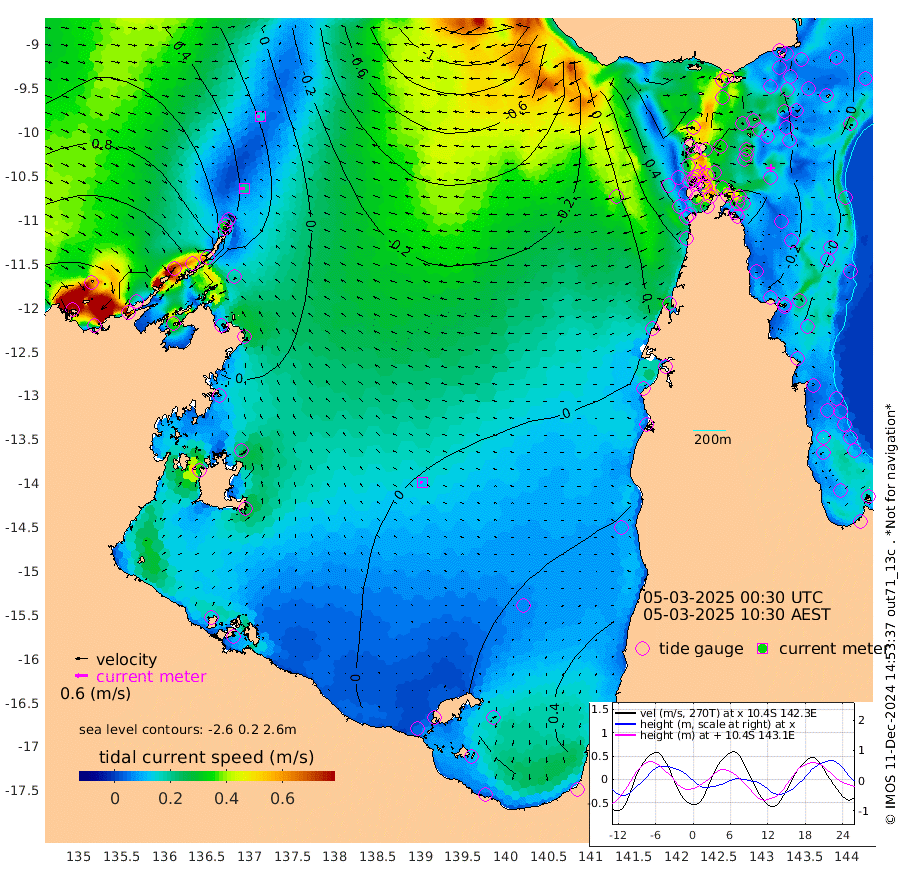 20cm/s -96T +3cm/s rms + 7cm/s -42T. ARA-GOC87 57m 11cm/s -95T +3cm/s rms + 2cm/s -2T. ARA-GOC87 60m 15cm/s -104T +2cm/s rms + 3cm/s 61T. ARA-GOC87 47m -9cm Daru -9cm Bobo Island 0cm Meer Island Barge 3cm Bramble Cay -3cm Unnamed Cay 3cm Pearce Cay -4cm Stephens Island -6cm Merrie England Shoals -4cm Mutacomal Reef -11cm Darnley Island Barge 7cm East Cay -13cm Yorke Island Barge 2cm Rennel Island -5cm Aureed Island 3cm Dungeness Reef -5cm Zagai Island 2cm Yam Island 26cm Dauan Island 10cm Saibai Island 28cm Phipi Reef 5cm Warrior Reef - West 28cm Mabuiag Island Barge -10cm Half Way Island -4cm Coconut Island -5cm Dugong Islet 3cm Poll Island -7cm Kirkcaldie Reef 24cm Suarji Island -10cm Sue Islet 76cm Hawkesbury Island 19cm Alert Patches 12cm Twin Island 67cm Badu Island 12cm St Pauls (Moa Island) 56cm Kubin (Moa Island) 27cm Ince Point 34cm Thursday Island 34cm Nardana Patches 56cm Turtle Head 65cm Round Island 76cm Goods Island 72cm Booby Island 83cm White Rocks Area 19cm Carpentaria 10cm Papou Point 82cm Bampfield Head 44cm Crab Island 67cm Red Wallis Island 61cm Packe Island -6cm Harrington Reef 73cm Herald Camp -8cm Sharp Point 41cm Red Island Point 32cm Possession Island 4cm Alpha Rock 4cm Frederick Point -2cm Wyborn Reef Light -2cm Tetley Island 7cm Triangle Reef -6cm Turtle Head Island 7cm Maclennan Cay 11cm Raine Island -3cm Mcsweeny Reef -4cm Collette Reef 1cm Shadwell Reef -6cm Hannibal Island 8cm Round Point 17cm Vrilya Point 2cm Cape Grenville 7cm Hicks Island 11cm Sir Charles Hardy Island -1cm Harvey Island 6cm Kay Reef 13cm Rocky Island 17cm Chapman Island 10cm Ham Reef 7cm Jubilee Reef 5cm Night Island 10cm Unnamed Reef No. 3 11cm Morris Island 11cm 1st 3 Mile Opening 7cm Creech Reef 10cm Fife Island 12cm Eden Reef 6cm Stanley Island 11cm Normanby River 145cm Yabooma Island 158cm Hutchison River 136cm Elcho Island 135cm North West Crocodile Island 51cm Cape Wessel 98cm Stevens Island 10cm Guluwuru Island 99cm Hopeful Bay 72cm Auster Point 63cm Two Island Bay 79cm Cadell Strait -138cm Mallison Island 29cm Melville Bay (Gove Harbour) 25cm Truant Island 8cm Cape Arnhem 8cm Cape Grey 11cm Hawk Island -1cm Milner Bay (Groote Eylandt) 3cm Cape Beatrice -14cm West Island -19cm Centre Island 7cm Mornington Island 10cm West Wellesley Islands 53cm Bountiful Island 55cm Albert River Mouth 52cm Sweers Island 54cm Karumba 19cm Nassau River Offshore 17cm Christmas Creek 25cm Archer River 23cm Boyd Point 44cm Weipa (Humbug Point) 0cm Pennefather River 29cm Cullen Point