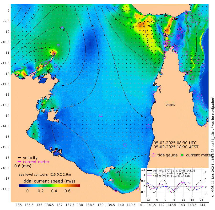 18cm/s -53T +3cm/s rms + 7cm/s -42T. ARA-GOC87 57m 15cm/s 24T +3cm/s rms + 2cm/s -2T. ARA-GOC87 60m 15cm/s -69T +2cm/s rms + 3cm/s 61T. ARA-GOC87 47m -48cm Daru -52cm Bobo Island -45cm Meer Island Barge -47cm Bramble Cay -43cm Unnamed Cay -60cm Pearce Cay -48cm Stephens Island -35cm Merrie England Shoals -36cm Mutacomal Reef -46cm Darnley Island Barge -46cm East Cay -45cm Yorke Island Barge -46cm Rennel Island -53cm Aureed Island -52cm Dungeness Reef -48cm Zagai Island -37cm Yam Island -67cm Dauan Island -47cm Saibai Island -74cm Phipi Reef -59cm Warrior Reef - West -33cm Mabuiag Island Barge -36cm Half Way Island -48cm Coconut Island -37cm Dugong Islet -43cm Poll Island -30cm Kirkcaldie Reef -54cm Suarji Island -31cm Sue Islet -29cm Hawkesbury Island -38cm Alert Patches -35cm Twin Island -51cm Badu Island -38cm St Pauls (Moa Island) -41cm Kubin (Moa Island) -34cm Ince Point -31cm Thursday Island -34cm Nardana Patches -45cm Turtle Head -36cm Round Island -44cm Goods Island -26cm Booby Island -30cm White Rocks Area 18cm Carpentaria -28cm Papou Point -38cm Bampfield Head -10cm Crab Island -20cm Red Wallis Island -38cm Packe Island -39cm Harrington Reef -26cm Herald Camp 1cm Sharp Point -22cm Red Island Point -35cm Possession Island -22cm Alpha Rock -38cm Frederick Point -43cm Wyborn Reef Light -41cm Tetley Island -45cm Triangle Reef -45cm Turtle Head Island -42cm Maclennan Cay -44cm Raine Island -46cm Mcsweeny Reef -42cm Collette Reef -41cm Shadwell Reef -45cm Hannibal Island -49cm Round Point 15cm Vrilya Point -37cm Cape Grenville -46cm Hicks Island -50cm Sir Charles Hardy Island -12cm Harvey Island -36cm Kay Reef -45cm Rocky Island -48cm Chapman Island -39cm Ham Reef -42cm Jubilee Reef -39cm Night Island -39cm Unnamed Reef No. 3 -46cm Morris Island -48cm 1st 3 Mile Opening -43cm Creech Reef -49cm Fife Island -53cm Eden Reef -38cm Stanley Island -42cm Normanby River -125cm Yabooma Island -165cm Hutchison River -129cm Elcho Island -116cm North West Crocodile Island -82cm Cape Wessel -111cm Stevens Island -97cm Guluwuru Island -102cm Hopeful Bay -93cm Auster Point -86cm Two Island Bay -137cm Cadell Strait -57cm Mallison Island -96cm Melville Bay (Gove Harbour) -98cm Truant Island -67cm Cape Arnhem -40cm Cape Grey -30cm Hawk Island 9cm Milner Bay (Groote Eylandt) 13cm Cape Beatrice 54cm West Island 58cm Centre Island 8cm Mornington Island 13cm West Wellesley Islands -23cm Bountiful Island -19cm Albert River Mouth -19cm Sweers Island -15cm Karumba -11cm Nassau River Offshore -19cm Christmas Creek -18cm Archer River -16cm Boyd Point -30cm Weipa (Humbug Point) 8cm Pennefather River 2cm Cullen Point