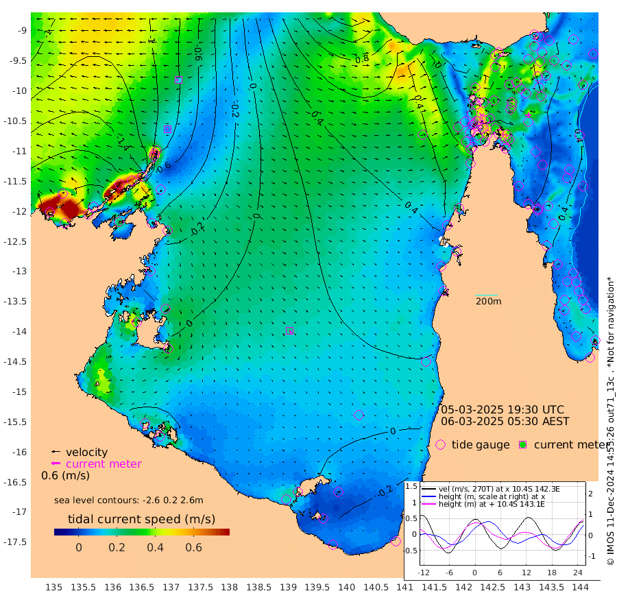 7cm/s -82T +3cm/s rms + 7cm/s -42T. ARA-GOC87 57m 21cm/s 150T +3cm/s rms + 2cm/s -2T. ARA-GOC87 60m 16cm/s -94T +2cm/s rms + 3cm/s 61T. ARA-GOC87 47m 54cm Daru 49cm Bobo Island 46cm Meer Island Barge 47cm Bramble Cay 59cm Unnamed Cay 46cm Pearce Cay 55cm Stephens Island 62cm Merrie England Shoals 57cm Mutacomal Reef 62cm Darnley Island Barge 41cm East Cay 61cm Yorke Island Barge 51cm Rennel Island 55cm Aureed Island 50cm Dungeness Reef 37cm Zagai Island 33cm Yam Island 10cm Dauan Island 19cm Saibai Island 16cm Phipi Reef 32cm Warrior Reef - West 11cm Mabuiag Island Barge 58cm Half Way Island 50cm Coconut Island 60cm Dugong Islet 43cm Poll Island 52cm Kirkcaldie Reef 39cm Suarji Island 53cm Sue Islet -11cm Hawkesbury Island 44cm Alert Patches 39cm Twin Island -8cm Badu Island 37cm St Pauls (Moa Island) 2cm Kubin (Moa Island) 28cm Ince Point 25cm Thursday Island 25cm Nardana Patches 14cm Turtle Head 0cm Round Island 1cm Goods Island 6cm Booby Island -4cm White Rocks Area 46cm Carpentaria 24cm Papou Point 12cm Bampfield Head 3cm Crab Island 3cm Red Wallis Island 7cm Packe Island 60cm Harrington Reef 3cm Herald Camp 16cm Sharp Point 2cm Red Island Point 25cm Possession Island 42cm Alpha Rock 46cm Frederick Point 51cm Wyborn Reef Light 49cm Tetley Island 38cm Triangle Reef 56cm Turtle Head Island 43cm Maclennan Cay 32cm Raine Island 57cm Mcsweeny Reef 56cm Collette Reef 47cm Shadwell Reef 62cm Hannibal Island 44cm Round Point 24cm Vrilya Point 53cm Cape Grenville 42cm Hicks Island 50cm Sir Charles Hardy Island 16cm Harvey Island 50cm Kay Reef 38cm Rocky Island 33cm Chapman Island 36cm Ham Reef 40cm Jubilee Reef 39cm Night Island 37cm Unnamed Reef No. 3 40cm Morris Island 44cm 1st 3 Mile Opening 44cm Creech Reef 35cm Fife Island 44cm Eden Reef 48cm Stanley Island 41cm Normanby River -206cm Yabooma Island -226cm Hutchison River -202cm Elcho Island -204cm North West Crocodile Island -108cm Cape Wessel -172cm Stevens Island -63cm Guluwuru Island -157cm Hopeful Bay -128cm Auster Point -132cm Two Island Bay -174cm Cadell Strait 55cm Mallison Island -73cm Melville Bay (Gove Harbour) -73cm Truant Island -39cm Cape Arnhem -26cm Cape Grey -25cm Hawk Island -14cm Milner Bay (Groote Eylandt) -9cm Cape Beatrice 22cm West Island 25cm Centre Island 8cm Mornington Island 14cm West Wellesley Islands -16cm Bountiful Island -58cm Albert River Mouth -52cm Sweers Island -55cm Karumba 14cm Nassau River Offshore 29cm Christmas Creek 24cm Archer River 30cm Boyd Point 17cm Weipa (Humbug Point) 32cm Pennefather River 20cm Cullen Point
