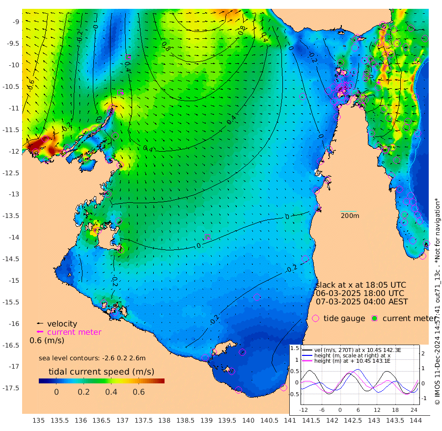 35cm/s 108T +3cm/s rms + 7cm/s -42T. ARA-GOC87 57m 22cm/s 155T +3cm/s rms + 2cm/s -2T. ARA-GOC87 60m 26cm/s 102T +2cm/s rms + 3cm/s 61T. ARA-GOC87 47m 38cm Daru 49cm Bobo Island 66cm Meer Island Barge 58cm Bramble Cay 46cm Unnamed Cay 53cm Pearce Cay 57cm Stephens Island 47cm Merrie England Shoals 29cm Mutacomal Reef 67cm Darnley Island Barge 61cm East Cay 55cm Yorke Island Barge 36cm Rennel Island 50cm Aureed Island 29cm Dungeness Reef 15cm Zagai Island 1cm Yam Island -5cm Dauan Island 0cm Saibai Island -8cm Phipi Reef 12cm Warrior Reef - West -23cm Mabuiag Island Barge 42cm Half Way Island 31cm Coconut Island 34cm Dugong Islet 13cm Poll Island 16cm Kirkcaldie Reef -10cm Suarji Island 19cm Sue Islet -32cm Hawkesbury Island -9cm Alert Patches -5cm Twin Island -23cm Badu Island -10cm St Pauls (Moa Island) -21cm Kubin (Moa Island) -15cm Ince Point -18cm Thursday Island -18cm Nardana Patches -19cm Turtle Head -33cm Round Island -20cm Goods Island -21cm Booby Island -34cm White Rocks Area 2cm Carpentaria -9cm Papou Point -23cm Bampfield Head -17cm Crab Island -25cm Red Wallis Island -21cm Packe Island 30cm Harrington Reef -33cm Herald Camp -7cm Sharp Point -22cm Red Island Point -17cm Possession Island -5cm Alpha Rock 10cm Frederick Point 29cm Wyborn Reef Light 22cm Tetley Island 51cm Triangle Reef 40cm Turtle Head Island 56cm Maclennan Cay 58cm Raine Island 50cm Mcsweeny Reef 52cm Collette Reef 57cm Shadwell Reef 59cm Hannibal Island 56cm Round Point -5cm Vrilya Point 54cm Cape Grenville 57cm Hicks Island 64cm Sir Charles Hardy Island 18cm Harvey Island 59cm Kay Reef 59cm Rocky Island 60cm Chapman Island 60cm Ham Reef 63cm Jubilee Reef 56cm Night Island 60cm Unnamed Reef No. 3 62cm Morris Island 63cm 1st 3 Mile Opening 64cm Creech Reef 62cm Fife Island 79cm Eden Reef 64cm Stanley Island 64cm Normanby River -32cm Yabooma Island -14cm Hutchison River -23cm Elcho Island -36cm North West Crocodile Island 30cm Cape Wessel -3cm Stevens Island 83cm Guluwuru Island -6cm Hopeful Bay 14cm Auster Point 19cm Two Island Bay 43cm Cadell Strait 217cm Mallison Island 55cm Melville Bay (Gove Harbour) 63cm Truant Island 49cm Cape Arnhem 18cm Cape Grey -1cm Hawk Island -31cm Milner Bay (Groote Eylandt) -37cm Cape Beatrice -62cm West Island -61cm Centre Island -52cm Mornington Island -54cm West Wellesley Islands -74cm Bountiful Island -101cm Albert River Mouth -103cm Sweers Island -103cm Karumba -29cm Nassau River Offshore -3cm Christmas Creek 7cm Archer River 12cm Boyd Point 4cm Weipa (Humbug Point) 10cm Pennefather River -7cm Cullen Point