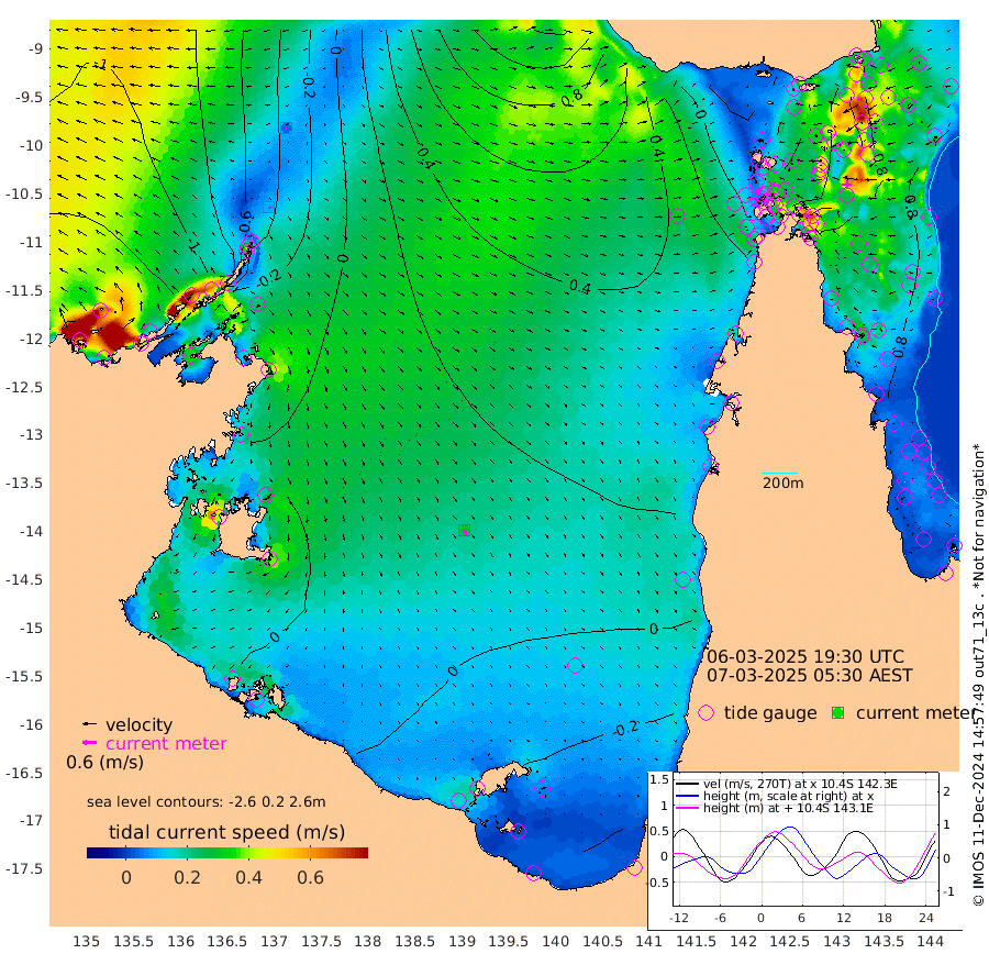 10cm/s 120T +3cm/s rms + 7cm/s -42T. ARA-GOC87 57m 28cm/s 156T +3cm/s rms + 2cm/s -2T. ARA-GOC87 60m 4cm/s -160T +2cm/s rms + 3cm/s 61T. ARA-GOC87 47m 71cm Daru 73cm Bobo Island 80cm Meer Island Barge 80cm Bramble Cay 83cm Unnamed Cay 78cm Pearce Cay 86cm Stephens Island 88cm Merrie England Shoals 72cm Mutacomal Reef 92cm Darnley Island Barge 78cm East Cay 84cm Yorke Island Barge 72cm Rennel Island 77cm Aureed Island 63cm Dungeness Reef 33cm Zagai Island 29cm Yam Island -3cm Dauan Island 4cm Saibai Island 2cm Phipi Reef 29cm Warrior Reef - West -5cm Mabuiag Island Barge 80cm Half Way Island 63cm Coconut Island 76cm Dugong Islet 46cm Poll Island 57cm Kirkcaldie Reef 27cm Suarji Island 53cm Sue Islet -8cm Hawkesbury Island 34cm Alert Patches 34cm Twin Island -10cm Badu Island 25cm St Pauls (Moa Island) 2cm Kubin (Moa Island) 19cm Ince Point 16cm Thursday Island 15cm Nardana Patches 10cm Turtle Head -8cm Round Island 4cm Goods Island 6cm Booby Island -3cm White Rocks Area 39cm Carpentaria 19cm Papou Point 6cm Bampfield Head 3cm Crab Island 4cm Red Wallis Island 8cm Packe Island 75cm Harrington Reef -2cm Herald Camp 6cm Sharp Point 2cm Red Island Point 16cm Possession Island 35cm Alpha Rock 49cm Frederick Point 65cm Wyborn Reef Light 59cm Tetley Island 64cm Triangle Reef 77cm Turtle Head Island 74cm Maclennan Cay 65cm Raine Island 81cm Mcsweeny Reef 81cm Collette Reef 75cm Shadwell Reef 91cm Hannibal Island 80cm Round Point 23cm Vrilya Point 83cm Cape Grenville 76cm Hicks Island 84cm Sir Charles Hardy Island 26cm Harvey Island 83cm Kay Reef 72cm Rocky Island 68cm Chapman Island 70cm Ham Reef 74cm Jubilee Reef 69cm Night Island 72cm Unnamed Reef No. 3 76cm Morris Island 76cm 1st 3 Mile Opening 78cm Creech Reef 72cm Fife Island 89cm Eden Reef 83cm Stanley Island 82cm Normanby River -145cm Yabooma Island -152cm Hutchison River -142cm Elcho Island -148cm North West Crocodile Island -58cm Cape Wessel -114cm Stevens Island -7cm Guluwuru Island -105cm Hopeful Bay -77cm Auster Point -78cm Two Island Bay -94cm Cadell Strait 125cm Mallison Island -27cm Melville Bay (Gove Harbour) -23cm Truant Island -8cm Cape Arnhem -14cm Cape Grey -23cm Hawk Island -32cm Milner Bay (Groote Eylandt) -28cm Cape Beatrice -20cm West Island -19cm Centre Island -23cm Mornington Island -18cm West Wellesley Islands -50cm Bountiful Island -96cm Albert River Mouth -98cm Sweers Island -93cm Karumba -1cm Nassau River Offshore 24cm Christmas Creek 27cm Archer River 32cm Boyd Point 22cm Weipa (Humbug Point) 32cm Pennefather River 17cm Cullen Point