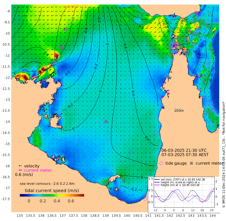 27cm/s -92T +3cm/s rms + 7cm/s -42T. ARA-GOC87 57m 25cm/s 162T +3cm/s rms + 2cm/s -2T. ARA-GOC87 60m 37cm/s -100T +2cm/s rms + 3cm/s 61T. ARA-GOC87 47m 83cm Daru 71cm Bobo Island 55cm Meer Island Barge 68cm Bramble Cay 89cm Unnamed Cay 76cm Pearce Cay 81cm Stephens Island 95cm Merrie England Shoals 96cm Mutacomal Reef 75cm Darnley Island Barge 58cm East Cay 79cm Yorke Island Barge 86cm Rennel Island 78cm Aureed Island 85cm Dungeness Reef 56cm Zagai Island 67cm Yam Island 33cm Dauan Island 32cm Saibai Island 46cm Phipi Reef 57cm Warrior Reef - West 51cm Mabuiag Island Barge 91cm Half Way Island 83cm Coconut Island 98cm Dugong Islet 81cm Poll Island 93cm Kirkcaldie Reef 86cm Suarji Island 81cm Sue Islet 72cm Hawkesbury Island 98cm Alert Patches 89cm Twin Island 60cm Badu Island 83cm St Pauls (Moa Island) 69cm Kubin (Moa Island) 83cm Ince Point 85cm Thursday Island 83cm Nardana Patches 83cm Turtle Head 67cm Round Island 79cm Goods Island 86cm Booby Island 84cm White Rocks Area 95cm Carpentaria 66cm Papou Point 86cm Bampfield Head 66cm Crab Island 83cm Red Wallis Island 83cm Packe Island 103cm Harrington Reef 78cm Herald Camp 24cm Sharp Point 65cm Red Island Point 77cm Possession Island 84cm Alpha Rock 90cm Frederick Point 87cm Wyborn Reef Light 85cm Tetley Island 52cm Triangle Reef 95cm Turtle Head Island 60cm Maclennan Cay 43cm Raine Island 83cm Mcsweeny Reef 78cm Collette Reef 59cm Shadwell Reef 84cm Hannibal Island 71cm Round Point 78cm Vrilya Point 77cm Cape Grenville 61cm Hicks Island 66cm Sir Charles Hardy Island 22cm Harvey Island 69cm Kay Reef 51cm Rocky Island 46cm Chapman Island 46cm Ham Reef 50cm Jubilee Reef 51cm Night Island 50cm Unnamed Reef No. 3 55cm Morris Island 56cm 1st 3 Mile Opening 56cm Creech Reef 48cm Fife Island 54cm Eden Reef 63cm Stanley Island 59cm Normanby River -188cm Yabooma Island -218cm Hutchison River -195cm Elcho Island -190cm North West Crocodile Island -133cm Cape Wessel -178cm Stevens Island -117cm Guluwuru Island -162cm Hopeful Bay -142cm Auster Point -152cm Two Island Bay -202cm Cadell Strait -87cm Mallison Island -112cm Melville Bay (Gove Harbour) -116cm Truant Island -75cm Cape Arnhem -51cm Cape Grey -44cm Hawk Island -29cm Milner Bay (Groote Eylandt) -14cm Cape Beatrice 24cm West Island 24cm Centre Island 11cm Mornington Island 22cm West Wellesley Islands -3cm Bountiful Island -54cm Albert River Mouth -58cm Sweers Island -44cm Karumba 34cm Nassau River Offshore 55cm Christmas Creek 57cm Archer River 63cm Boyd Point 60cm Weipa (Humbug Point) 66cm Pennefather River 68cm Cullen Point
