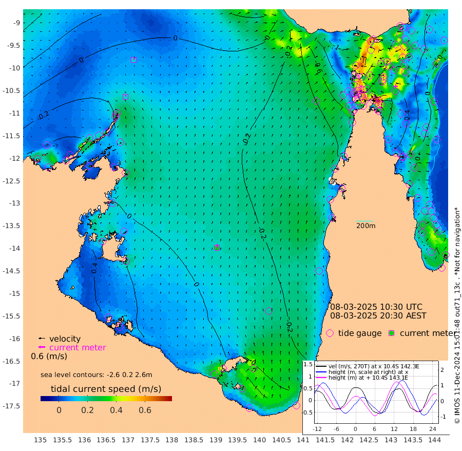 15cm/s 2T +3cm/s rms + 7cm/s -42T. ARA-GOC87 57m 31cm/s 6T +3cm/s rms + 2cm/s -2T. ARA-GOC87 60m 15cm/s 23T +2cm/s rms + 3cm/s 61T. ARA-GOC87 47m 25cm Daru 28cm Bobo Island 1cm Meer Island Barge 18cm Bramble Cay 32cm Unnamed Cay 22cm Pearce Cay 28cm Stephens Island 41cm Merrie England Shoals 38cm Mutacomal Reef 19cm Darnley Island Barge 7cm East Cay 22cm Yorke Island Barge 28cm Rennel Island 21cm Aureed Island 12cm Dungeness Reef -13cm Zagai Island -6cm Yam Island -88cm Dauan Island -73cm Saibai Island -72cm Phipi Reef -31cm Warrior Reef - West -56cm Mabuiag Island Barge 35cm Half Way Island 20cm Coconut Island 31cm Dugong Islet 10cm Poll Island 18cm Kirkcaldie Reef -9cm Suarji Island 8cm Sue Islet -94cm Hawkesbury Island -16cm Alert Patches -7cm Twin Island -106cm Badu Island -16cm St Pauls (Moa Island) -72cm Kubin (Moa Island) -35cm Ince Point -46cm Thursday Island -45cm Nardana Patches -75cm Turtle Head -69cm Round Island -102cm Goods Island -108cm Booby Island -91cm White Rocks Area -70cm Carpentaria -10cm Papou Point -94cm Bampfield Head -86cm Crab Island -96cm Red Wallis Island -81cm Packe Island 43cm Harrington Reef -89cm Herald Camp 3cm Sharp Point -55cm Red Island Point -24cm Possession Island 9cm Alpha Rock 12cm Frederick Point 33cm Wyborn Reef Light 29cm Tetley Island -7cm Triangle Reef 38cm Turtle Head Island 0cm Maclennan Cay -15cm Raine Island 25cm Mcsweeny Reef 21cm Collette Reef -1cm Shadwell Reef 27cm Hannibal Island 20cm Round Point -71cm Vrilya Point 20cm Cape Grenville 9cm Hicks Island -7cm Sir Charles Hardy Island 6cm Harvey Island 11cm Kay Reef -7cm Rocky Island -17cm Chapman Island -13cm Ham Reef -9cm Jubilee Reef -3cm Night Island -12cm Unnamed Reef No. 3 -5cm Morris Island -14cm 1st 3 Mile Opening -8cm Creech Reef -2cm Fife Island -10cm Eden Reef 1cm Stanley Island 11cm Normanby River -31cm Yabooma Island -52cm Hutchison River -37cm Elcho Island -30cm North West Crocodile Island -8cm Cape Wessel -16cm Stevens Island -27cm Guluwuru Island -19cm Hopeful Bay -11cm Auster Point -8cm Two Island Bay -41cm Cadell Strait -27cm Mallison Island -23cm Melville Bay (Gove Harbour) -22cm Truant Island -15cm Cape Arnhem 7cm Cape Grey 15cm Hawk Island 51cm Milner Bay (Groote Eylandt) 45cm Cape Beatrice 75cm West Island 78cm Centre Island 32cm Mornington Island 37cm West Wellesley Islands 16cm Bountiful Island 27cm Albert River Mouth 52cm Sweers Island 26cm Karumba -16cm Nassau River Offshore -48cm Christmas Creek -68cm Archer River -73cm Boyd Point -88cm Weipa (Humbug Point) -53cm Pennefather River -76cm Cullen Point