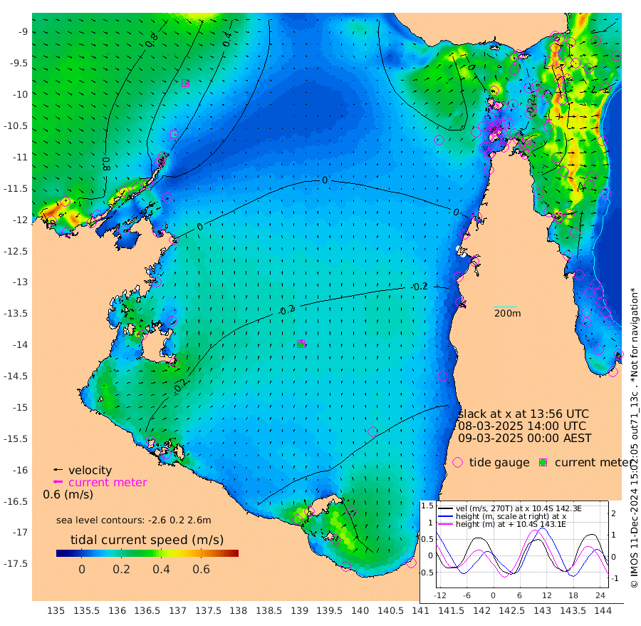 16cm/s 118T +3cm/s rms + 7cm/s -42T. ARA-GOC87 57m 28cm/s 12T +3cm/s rms + 2cm/s -2T. ARA-GOC87 60m 22cm/s 115T +2cm/s rms + 3cm/s 61T. ARA-GOC87 47m -60cm Daru -66cm Bobo Island -88cm Meer Island Barge -90cm Bramble Cay -80cm Unnamed Cay -77cm Pearce Cay -87cm Stephens Island -86cm Merrie England Shoals -64cm Mutacomal Reef -91cm Darnley Island Barge -93cm East Cay -76cm Yorke Island Barge -69cm Rennel Island -72cm Aureed Island -52cm Dungeness Reef -8cm Zagai Island -7cm Yam Island 17cm Dauan Island 17cm Saibai Island 4cm Phipi Reef -17cm Warrior Reef - West 42cm Mabuiag Island Barge -68cm Half Way Island -43cm Coconut Island -64cm Dugong Islet -24cm Poll Island -33cm Kirkcaldie Reef -2cm Suarji Island -25cm Sue Islet 52cm Hawkesbury Island 4cm Alert Patches 4cm Twin Island 56cm Badu Island 17cm St Pauls (Moa Island) 38cm Kubin (Moa Island) 21cm Ince Point 30cm Thursday Island 28cm Nardana Patches 25cm Turtle Head 47cm Round Island 36cm Goods Island 49cm Booby Island 48cm White Rocks Area 42cm Carpentaria 20cm Papou Point 56cm Bampfield Head 48cm Crab Island 45cm Red Wallis Island 29cm Packe Island -55cm Harrington Reef 39cm Herald Camp 6cm Sharp Point 31cm Red Island Point 24cm Possession Island -2cm Alpha Rock -19cm Frederick Point -46cm Wyborn Reef Light -35cm Tetley Island -69cm Triangle Reef -44cm Turtle Head Island -83cm Maclennan Cay -78cm Raine Island -77cm Mcsweeny Reef -82cm Collette Reef -82cm Shadwell Reef -92cm Hannibal Island -89cm Round Point 43cm Vrilya Point -91cm Cape Grenville -87cm Hicks Island -99cm Sir Charles Hardy Island -28cm Harvey Island -96cm Kay Reef -88cm Rocky Island -87cm Chapman Island -85cm Ham Reef -86cm Jubilee Reef -80cm Night Island -87cm Unnamed Reef No. 3 -92cm Morris Island -85cm 1st 3 Mile Opening -91cm Creech Reef -92cm Fife Island -111cm Eden Reef -98cm Stanley Island -104cm Normanby River 101cm Yabooma Island 98cm Hutchison River 94cm Elcho Island 97cm North West Crocodile Island 54cm Cape Wessel 88cm Stevens Island 8cm Guluwuru Island 71cm Hopeful Bay 67cm Auster Point 69cm Two Island Bay 67cm Cadell Strait -86cm Mallison Island 20cm Melville Bay (Gove Harbour) 26cm Truant Island 9cm Cape Arnhem 4cm Cape Grey -2cm Hawk Island 9cm Milner Bay (Groote Eylandt) -9cm Cape Beatrice -17cm West Island -15cm Centre Island -70cm Mornington Island -77cm West Wellesley Islands -80cm Bountiful Island -67cm Albert River Mouth -55cm Sweers Island -66cm Karumba -80cm Nassau River Offshore -75cm Christmas Creek -37cm Archer River -20cm Boyd Point -23cm Weipa (Humbug Point) 11cm Pennefather River 25cm Cullen Point