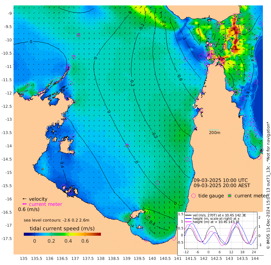 20cm/s 19T +3cm/s rms + 7cm/s -42T. ARA-GOC87 57m 27cm/s -5T +3cm/s rms + 2cm/s -2T. ARA-GOC87 60m 23cm/s 32T +2cm/s rms + 3cm/s 61T. ARA-GOC87 47m 37cm Daru 49cm Bobo Island 38cm Meer Island Barge 54cm Bramble Cay 55cm Unnamed Cay 48cm Pearce Cay 58cm Stephens Island 66cm Merrie England Shoals 48cm Mutacomal Reef 51cm Darnley Island Barge 47cm East Cay 44cm Yorke Island Barge 45cm Rennel Island 42cm Aureed Island 17cm Dungeness Reef -27cm Zagai Island -28cm Yam Island -118cm Dauan Island -104cm Saibai Island -94cm Phipi Reef -43cm Warrior Reef - West -104cm Mabuiag Island Barge 49cm Half Way Island 23cm Coconut Island 38cm Dugong Islet -1cm Poll Island 7cm Kirkcaldie Reef -33cm Suarji Island -5cm Sue Islet -159cm Hawkesbury Island -50cm Alert Patches -38cm Twin Island -163cm Badu Island -54cm St Pauls (Moa Island) -123cm Kubin (Moa Island) -77cm Ince Point -94cm Thursday Island -91cm Nardana Patches -120cm Turtle Head -122cm Round Island -153cm Goods Island -170cm Booby Island -149cm White Rocks Area -131cm Carpentaria -45cm Papou Point -156cm Bampfield Head -142cm Crab Island -156cm Red Wallis Island -130cm Packe Island 46cm Harrington Reef -147cm Herald Camp -11cm Sharp Point -101cm Red Island Point -64cm Possession Island -18cm Alpha Rock -5cm Frederick Point 36cm Wyborn Reef Light 25cm Tetley Island 19cm Triangle Reef 39cm Turtle Head Island 32cm Maclennan Cay 21cm Raine Island 48cm Mcsweeny Reef 48cm Collette Reef 31cm Shadwell Reef 59cm Hannibal Island 55cm Round Point -129cm Vrilya Point 53cm Cape Grenville 44cm Hicks Island 31cm Sir Charles Hardy Island 17cm Harvey Island 49cm Kay Reef 32cm Rocky Island 24cm Chapman Island 24cm Ham Reef 28cm Jubilee Reef 31cm Night Island 27cm Unnamed Reef No. 3 36cm Morris Island 23cm 1st 3 Mile Opening 30cm Creech Reef 40cm Fife Island 42cm Eden Reef 42cm Stanley Island 57cm Normanby River -11cm Yabooma Island -17cm Hutchison River -10cm Elcho Island -9cm North West Crocodile Island 17cm Cape Wessel 10cm Stevens Island 18cm Guluwuru Island 10cm Hopeful Bay 13cm Auster Point 13cm Two Island Bay 0cm Cadell Strait 59cm Mallison Island 15cm Melville Bay (Gove Harbour) 15cm Truant Island 14cm Cape Arnhem 30cm Cape Grey 37cm Hawk Island 64cm Milner Bay (Groote Eylandt) 60cm Cape Beatrice 80cm West Island 83cm Centre Island 69cm Mornington Island 75cm West Wellesley Islands 66cm Bountiful Island 88cm Albert River Mouth 113cm Sweers Island 79cm Karumba 15cm Nassau River Offshore -29cm Christmas Creek -71cm Archer River -88cm Boyd Point -101cm Weipa (Humbug Point) -85cm Pennefather River -120cm Cullen Point