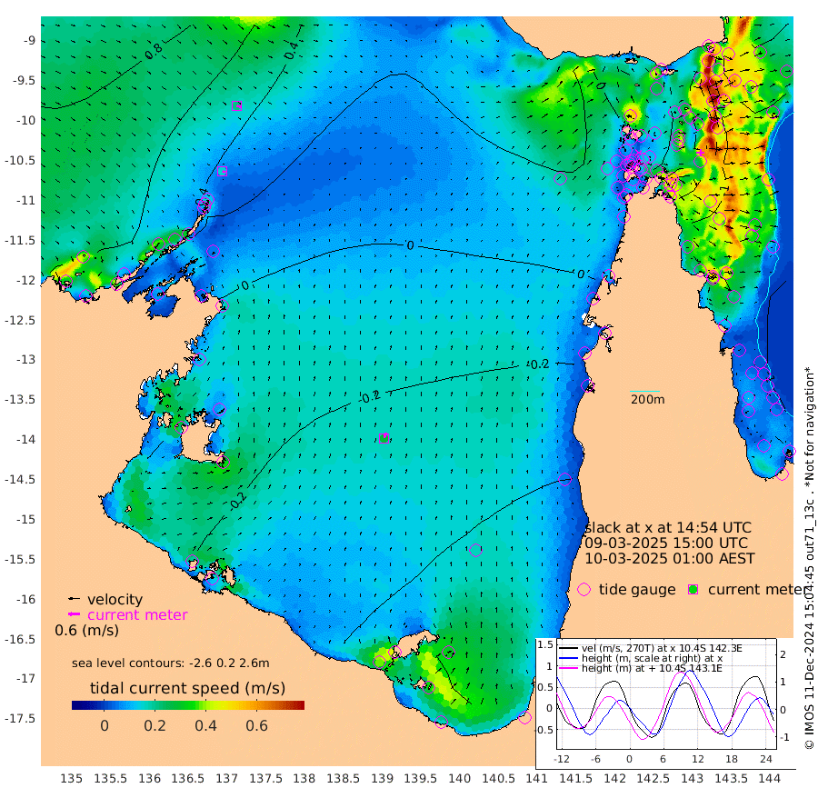 16cm/s 114T +3cm/s rms + 7cm/s -42T. ARA-GOC87 57m 28cm/s 15T +3cm/s rms + 2cm/s -2T. ARA-GOC87 60m 21cm/s 113T +2cm/s rms + 3cm/s 61T. ARA-GOC87 47m -83cm Daru -90cm Bobo Island -102cm Meer Island Barge -113cm Bramble Cay -105cm Unnamed Cay -104cm Pearce Cay -111cm Stephens Island -114cm Merrie England Shoals -91cm Mutacomal Reef -109cm Darnley Island Barge -112cm East Cay -94cm Yorke Island Barge -95cm Rennel Island -93cm Aureed Island -73cm Dungeness Reef -15cm Zagai Island -18cm Yam Island 22cm Dauan Island 25cm Saibai Island 1cm Phipi Reef -25cm Warrior Reef - West 41cm Mabuiag Island Barge -93cm Half Way Island -66cm Coconut Island -87cm Dugong Islet -42cm Poll Island -54cm Kirkcaldie Reef -15cm Suarji Island -38cm Sue Islet 38cm Hawkesbury Island -12cm Alert Patches -12cm Twin Island 46cm Badu Island 5cm St Pauls (Moa Island) 27cm Kubin (Moa Island) 9cm Ince Point 18cm Thursday Island 17cm Nardana Patches 13cm Turtle Head 38cm Round Island 24cm Goods Island 40cm Booby Island 34cm White Rocks Area 46cm Carpentaria 8cm Papou Point 52cm Bampfield Head 39cm Crab Island 34cm Red Wallis Island 15cm Packe Island -83cm Harrington Reef 33cm Herald Camp 5cm Sharp Point 16cm Red Island Point 12cm Possession Island -16cm Alpha Rock -40cm Frederick Point -70cm Wyborn Reef Light -58cm Tetley Island -82cm Triangle Reef -72cm Turtle Head Island -98cm Maclennan Cay -91cm Raine Island -100cm Mcsweeny Reef -103cm Collette Reef -96cm Shadwell Reef -116cm Hannibal Island -116cm Round Point 37cm Vrilya Point -113cm Cape Grenville -106cm Hicks Island -114cm Sir Charles Hardy Island -34cm Harvey Island -115cm Kay Reef -103cm Rocky Island -102cm Chapman Island -97cm Ham Reef -99cm Jubilee Reef -94cm Night Island -102cm Unnamed Reef No. 3 -108cm Morris Island -96cm 1st 3 Mile Opening -105cm Creech Reef -110cm Fife Island -127cm Eden Reef -114cm Stanley Island -125cm Normanby River 76cm Yabooma Island 73cm Hutchison River 73cm Elcho Island 74cm North West Crocodile Island 46cm Cape Wessel 69cm Stevens Island 10cm Guluwuru Island 55cm Hopeful Bay 56cm Auster Point 59cm Two Island Bay 50cm Cadell Strait -65cm Mallison Island 19cm Melville Bay (Gove Harbour) 26cm Truant Island 11cm Cape Arnhem 6cm Cape Grey -1cm Hawk Island 12cm Milner Bay (Groote Eylandt) -9cm Cape Beatrice -15cm West Island -11cm Centre Island -73cm Mornington Island -81cm West Wellesley Islands -83cm Bountiful Island -72cm Albert River Mouth -59cm Sweers Island -74cm Karumba -87cm Nassau River Offshore -81cm Christmas Creek -44cm Archer River -22cm Boyd Point -26cm Weipa (Humbug Point) 4cm Pennefather River 23cm Cullen Point