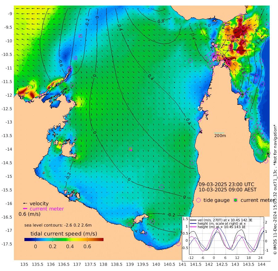 9cm/s -148T +3cm/s rms + 7cm/s -42T. ARA-GOC87 57m 37cm/s 167T +3cm/s rms + 2cm/s -2T. ARA-GOC87 60m 18cm/s -117T +2cm/s rms + 3cm/s 61T. ARA-GOC87 47m 172cm Daru 170cm Bobo Island 117cm Meer Island Barge 148cm Bramble Cay 173cm Unnamed Cay 180cm Pearce Cay 171cm Stephens Island 179cm Merrie England Shoals 182cm Mutacomal Reef 155cm Darnley Island Barge 131cm East Cay 162cm Yorke Island Barge 176cm Rennel Island 167cm Aureed Island 167cm Dungeness Reef 116cm Zagai Island 129cm Yam Island 69cm Dauan Island 60cm Saibai Island 83cm Phipi Reef 124cm Warrior Reef - West 73cm Mabuiag Island Barge 178cm Half Way Island 166cm Coconut Island 184cm Dugong Islet 155cm Poll Island 166cm Kirkcaldie Reef 138cm Suarji Island 143cm Sue Islet 101cm Hawkesbury Island 146cm Alert Patches 147cm Twin Island 81cm Badu Island 135cm St Pauls (Moa Island) 104cm Kubin (Moa Island) 123cm Ince Point 116cm Thursday Island 115cm Nardana Patches 109cm Turtle Head 84cm Round Island 95cm Goods Island 82cm Booby Island 91cm White Rocks Area 65cm Carpentaria 118cm Papou Point 80cm Bampfield Head 60cm Crab Island 88cm Red Wallis Island 110cm Packe Island 197cm Harrington Reef 86cm Herald Camp 31cm Sharp Point 97cm Red Island Point 112cm Possession Island 136cm Alpha Rock 165cm Frederick Point 176cm Wyborn Reef Light 171cm Tetley Island 112cm Triangle Reef 194cm Turtle Head Island 122cm Maclennan Cay 91cm Raine Island 166cm Mcsweeny Reef 152cm Collette Reef 114cm Shadwell Reef 165cm Hannibal Island 157cm Round Point 62cm Vrilya Point 145cm Cape Grenville 132cm Hicks Island 134cm Sir Charles Hardy Island 44cm Harvey Island 130cm Kay Reef 107cm Rocky Island 99cm Chapman Island 96cm Ham Reef 104cm Jubilee Reef 102cm Night Island 102cm Unnamed Reef No. 3 113cm Morris Island 101cm 1st 3 Mile Opening 109cm Creech Reef 115cm Fife Island 118cm Eden Reef 117cm Stanley Island 130cm Normanby River -78cm Yabooma Island -81cm Hutchison River -89cm Elcho Island -87cm North West Crocodile Island -40cm Cape Wessel -71cm Stevens Island -20cm Guluwuru Island -72cm Hopeful Bay -50cm Auster Point -51cm Two Island Bay -55cm Cadell Strait 9cm Mallison Island -27cm Melville Bay (Gove Harbour) -24cm Truant Island -19cm Cape Arnhem -26cm Cape Grey -33cm Hawk Island -60cm Milner Bay (Groote Eylandt) -46cm Cape Beatrice -46cm West Island -53cm Centre Island -41cm Mornington Island -33cm West Wellesley Islands -61cm Bountiful Island -124cm Albert River Mouth -138cm Sweers Island -106cm Karumba 7cm Nassau River Offshore 42cm Christmas Creek 49cm Archer River 57cm Boyd Point 52cm Weipa (Humbug Point) 52cm Pennefather River 52cm Cullen Point