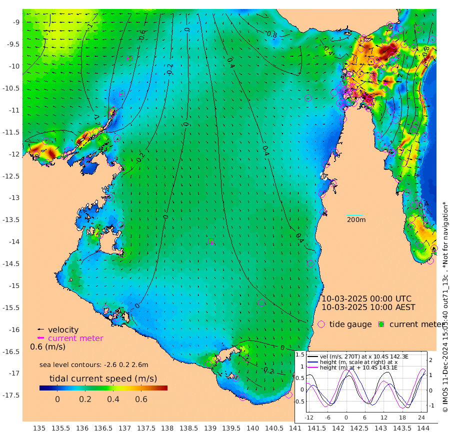 19cm/s -106T +3cm/s rms + 7cm/s -42T. ARA-GOC87 57m 35cm/s 170T +3cm/s rms + 2cm/s -2T. ARA-GOC87 60m 30cm/s -104T +2cm/s rms + 3cm/s 61T. ARA-GOC87 47m 170cm Daru 158cm Bobo Island 80cm Meer Island Barge 112cm Bramble Cay 152cm Unnamed Cay 160cm Pearce Cay 144cm Stephens Island 152cm Merrie England Shoals 175cm Mutacomal Reef 126cm Darnley Island Barge 91cm East Cay 145cm Yorke Island Barge 165cm Rennel Island 155cm Aureed Island 173cm Dungeness Reef 148cm Zagai Island 162cm Yam Island 127cm Dauan Island 111cm Saibai Island 140cm Phipi Reef 162cm Warrior Reef - West 121cm Mabuiag Island Barge 165cm Half Way Island 170cm Coconut Island 180cm Dugong Islet 174cm Poll Island 182cm Kirkcaldie Reef 178cm Suarji Island 162cm Sue Islet 128cm Hawkesbury Island 181cm Alert Patches 179cm Twin Island 119cm Badu Island 178cm St Pauls (Moa Island) 136cm Kubin (Moa Island) 160cm Ince Point 152cm Thursday Island 153cm Nardana Patches 143cm Turtle Head 115cm Round Island 119cm Goods Island 104cm Booby Island 112cm White Rocks Area 76cm Carpentaria 151cm Papou Point 98cm Bampfield Head 81cm Crab Island 110cm Red Wallis Island 137cm Packe Island 196cm Harrington Reef 113cm Herald Camp 49cm Sharp Point 125cm Red Island Point 144cm Possession Island 160cm Alpha Rock 183cm Frederick Point 173cm Wyborn Reef Light 175cm Tetley Island 86cm Triangle Reef 186cm Turtle Head Island 90cm Maclennan Cay 54cm Raine Island 146cm Mcsweeny Reef 127cm Collette Reef 82cm Shadwell Reef 134cm Hannibal Island 120cm Round Point 76cm Vrilya Point 108cm Cape Grenville 97cm Hicks Island 96cm Sir Charles Hardy Island 34cm Harvey Island 86cm Kay Reef 67cm Rocky Island 56cm Chapman Island 55cm Ham Reef 64cm Jubilee Reef 67cm Night Island 60cm Unnamed Reef No. 3 71cm Morris Island 63cm 1st 3 Mile Opening 69cm Creech Reef 74cm Fife Island 63cm Eden Reef 71cm Stanley Island 78cm Normanby River -116cm Yabooma Island -123cm Hutchison River -126cm Elcho Island -117cm North West Crocodile Island -82cm Cape Wessel -112cm Stevens Island -64cm Guluwuru Island -114cm Hopeful Bay -89cm Auster Point -92cm Two Island Bay -104cm Cadell Strait -84cm Mallison Island -62cm Melville Bay (Gove Harbour) -64cm Truant Island -43cm Cape Arnhem -37cm Cape Grey -37cm Hawk Island -53cm Milner Bay (Groote Eylandt) -34cm Cape Beatrice -21cm West Island -29cm Centre Island -12cm Mornington Island -7cm West Wellesley Islands -28cm Bountiful Island -82cm Albert River Mouth -99cm Sweers Island -61cm Karumba 29cm Nassau River Offshore 57cm Christmas Creek 55cm Archer River 64cm Boyd Point 60cm Weipa (Humbug Point) 60cm Pennefather River 66cm Cullen Point