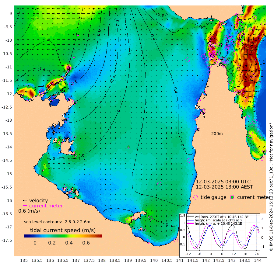 27cm/s -89T +3cm/s rms + 7cm/s -42T. ARA-GOC87 57m 27cm/s 177T +3cm/s rms + 2cm/s -2T. ARA-GOC87 60m 36cm/s -93T +2cm/s rms + 3cm/s 61T. ARA-GOC87 47m 68cm Daru 48cm Bobo Island -26cm Meer Island Barge -17cm Bramble Cay 21cm Unnamed Cay 33cm Pearce Cay 13cm Stephens Island 8cm Merrie England Shoals 52cm Mutacomal Reef 8cm Darnley Island Barge -28cm East Cay 38cm Yorke Island Barge 46cm Rennel Island 49cm Aureed Island 84cm Dungeness Reef 126cm Zagai Island 132cm Yam Island 173cm Dauan Island 156cm Saibai Island 167cm Phipi Reef 147cm Warrior Reef - West 138cm Mabuiag Island Barge 47cm Half Way Island 76cm Coconut Island 69cm Dugong Islet 106cm Poll Island 106cm Kirkcaldie Reef 137cm Suarji Island 106cm Sue Islet 106cm Hawkesbury Island 133cm Alert Patches 130cm Twin Island 115cm Badu Island 151cm St Pauls (Moa Island) 116cm Kubin (Moa Island) 132cm Ince Point 127cm Thursday Island 130cm Nardana Patches 116cm Turtle Head 99cm Round Island 91cm Goods Island 81cm Booby Island 74cm White Rocks Area 62cm Carpentaria 124cm Papou Point 66cm Bampfield Head 73cm Crab Island 86cm Red Wallis Island 104cm Packe Island 77cm Harrington Reef 101cm Herald Camp 54cm Sharp Point 105cm Red Island Point 112cm Possession Island 108cm Alpha Rock 108cm Frederick Point 61cm Wyborn Reef Light 75cm Tetley Island -2cm Triangle Reef 61cm Turtle Head Island -13cm Maclennan Cay -39cm Raine Island 24cm Mcsweeny Reef 9cm Collette Reef -18cm Shadwell Reef 0cm Hannibal Island -19cm Round Point 66cm Vrilya Point -19cm Cape Grenville -19cm Hicks Island -19cm Sir Charles Hardy Island -3cm Harvey Island -42cm Kay Reef -38cm Rocky Island -48cm Chapman Island -42cm Ham Reef -37cm Jubilee Reef -28cm Night Island -42cm Unnamed Reef No. 3 -42cm Morris Island -37cm 1st 3 Mile Opening -36cm Creech Reef -37cm Fife Island -63cm Eden Reef -47cm Stanley Island -55cm Normanby River -162cm Yabooma Island -173cm Hutchison River -161cm Elcho Island -147cm North West Crocodile Island -120cm Cape Wessel -158cm Stevens Island -97cm Guluwuru Island -154cm Hopeful Bay -129cm Auster Point -123cm Two Island Bay -142cm Cadell Strait -144cm Mallison Island -92cm Melville Bay (Gove Harbour) -98cm Truant Island -59cm Cape Arnhem -44cm Cape Grey -34cm Hawk Island -36cm Milner Bay (Groote Eylandt) -18cm Cape Beatrice 6cm West Island 3cm Centre Island 22cm Mornington Island 16cm West Wellesley Islands 6cm Bountiful Island -14cm Albert River Mouth -33cm Sweers Island 7cm Karumba 41cm Nassau River Offshore 54cm Christmas Creek 41cm Archer River 53cm Boyd Point 46cm Weipa (Humbug Point) 48cm Pennefather River 63cm Cullen Point