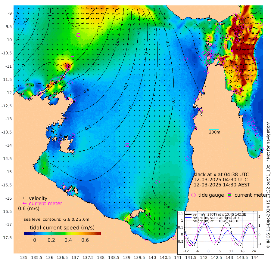 35cm/s -87T +3cm/s rms + 7cm/s -42T. ARA-GOC87 57m 18cm/s -166T +3cm/s rms + 2cm/s -2T. ARA-GOC87 60m 40cm/s -93T +2cm/s rms + 3cm/s 61T. ARA-GOC87 47m -45cm Daru -65cm Bobo Island -79cm Meer Island Barge -94cm Bramble Cay -80cm Unnamed Cay -78cm Pearce Cay -85cm Stephens Island -92cm Merrie England Shoals -61cm Mutacomal Reef -78cm Darnley Island Barge -90cm East Cay -60cm Yorke Island Barge -61cm Rennel Island -58cm Aureed Island -23cm Dungeness Reef 33cm Zagai Island 37cm Yam Island 118cm Dauan Island 105cm Saibai Island 107cm Phipi Reef 52cm Warrior Reef - West 89cm Mabuiag Island Barge -60cm Half Way Island -36cm Coconut Island -44cm Dugong Islet -1cm Poll Island 0cm Kirkcaldie Reef 36cm Suarji Island 9cm Sue Islet 81cm Hawkesbury Island 42cm Alert Patches 32cm Twin Island 91cm Badu Island 56cm St Pauls (Moa Island) 70cm Kubin (Moa Island) 59cm Ince Point 66cm Thursday Island 67cm Nardana Patches 73cm Turtle Head 67cm Round Island 74cm Goods Island 82cm Booby Island 62cm White Rocks Area 65cm Carpentaria 41cm Papou Point 56cm Bampfield Head 81cm Crab Island 77cm Red Wallis Island 67cm Packe Island -51cm Harrington Reef 85cm Herald Camp 28cm Sharp Point 68cm Red Island Point 45cm Possession Island 14cm Alpha Rock -2cm Frederick Point -57cm Wyborn Reef Light -43cm Tetley Island -59cm Triangle Reef -62cm Turtle Head Island -70cm Maclennan Cay -71cm Raine Island -74cm Mcsweeny Reef -75cm Collette Reef -69cm Shadwell Reef -91cm Hannibal Island -101cm Round Point 77cm Vrilya Point -90cm Cape Grenville -83cm Hicks Island -80cm Sir Charles Hardy Island -25cm Harvey Island -97cm Kay Reef -80cm Rocky Island -83cm Chapman Island -75cm Ham Reef -76cm Jubilee Reef -71cm Night Island -79cm Unnamed Reef No. 3 -86cm Morris Island -72cm 1st 3 Mile Opening -77cm Creech Reef -88cm Fife Island -104cm Eden Reef -90cm Stanley Island -108cm Normanby River -158cm Yabooma Island -177cm Hutchison River -153cm Elcho Island -138cm North West Crocodile Island -143cm Cape Wessel -166cm Stevens Island -129cm Guluwuru Island -152cm Hopeful Bay -144cm Auster Point -139cm Two Island Bay -163cm Cadell Strait -187cm Mallison Island -119cm Melville Bay (Gove Harbour) -130cm Truant Island -80cm Cape Arnhem -52cm Cape Grey -37cm Hawk Island -21cm Milner Bay (Groote Eylandt) -3cm Cape Beatrice 28cm West Island 30cm Centre Island 53cm Mornington Island 45cm West Wellesley Islands 49cm Bountiful Island 58cm Albert River Mouth 37cm Sweers Island 72cm Karumba 62cm Nassau River Offshore 66cm Christmas Creek 56cm Archer River 58cm Boyd Point 61cm Weipa (Humbug Point) 59cm Pennefather River 74cm Cullen Point