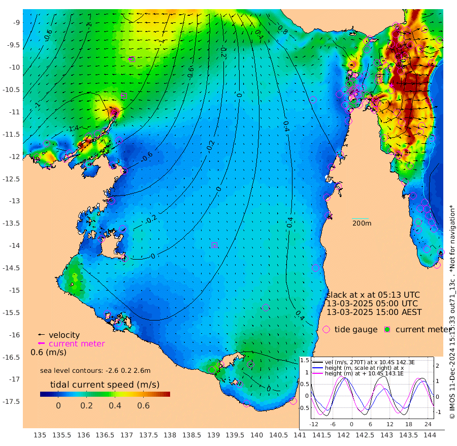 33cm/s -85T +3cm/s rms + 7cm/s -42T. ARA-GOC87 57m 15cm/s -172T +3cm/s rms + 2cm/s -2T. ARA-GOC87 60m 37cm/s -91T +2cm/s rms + 3cm/s 61T. ARA-GOC87 47m -56cm Daru -73cm Bobo Island -77cm Meer Island Barge -96cm Bramble Cay -86cm Unnamed Cay -84cm Pearce Cay -87cm Stephens Island -97cm Merrie England Shoals -72cm Mutacomal Reef -79cm Darnley Island Barge -89cm East Cay -65cm Yorke Island Barge -69cm Rennel Island -65cm Aureed Island -35cm Dungeness Reef 15cm Zagai Island 19cm Yam Island 90cm Dauan Island 81cm Saibai Island 78cm Phipi Reef 30cm Warrior Reef - West 67cm Mabuiag Island Barge -65cm Half Way Island -48cm Coconut Island -51cm Dugong Islet -16cm Poll Island -12cm Kirkcaldie Reef 14cm Suarji Island -4cm Sue Islet 66cm Hawkesbury Island 23cm Alert Patches 15cm Twin Island 67cm Badu Island 36cm St Pauls (Moa Island) 53cm Kubin (Moa Island) 41cm Ince Point 48cm Thursday Island 48cm Nardana Patches 53cm Turtle Head 52cm Round Island 55cm Goods Island 68cm Booby Island 46cm White Rocks Area 65cm Carpentaria 26cm Papou Point 44cm Bampfield Head 70cm Crab Island 64cm Red Wallis Island 50cm Packe Island -60cm Harrington Reef 74cm Herald Camp 23cm Sharp Point 52cm Red Island Point 31cm Possession Island 0cm Alpha Rock -16cm Frederick Point -68cm Wyborn Reef Light -55cm Tetley Island -61cm Triangle Reef -69cm Turtle Head Island -69cm Maclennan Cay -70cm Raine Island -79cm Mcsweeny Reef -79cm Collette Reef -70cm Shadwell Reef -94cm Hannibal Island -103cm Round Point 73cm Vrilya Point -89cm Cape Grenville -83cm Hicks Island -80cm Sir Charles Hardy Island -25cm Harvey Island -95cm Kay Reef -79cm Rocky Island -82cm Chapman Island -72cm Ham Reef -75cm Jubilee Reef -69cm Night Island -77cm Unnamed Reef No. 3 -85cm Morris Island -71cm 1st 3 Mile Opening -75cm Creech Reef -86cm Fife Island -100cm Eden Reef -86cm Stanley Island -104cm Normanby River -169cm Yabooma Island -193cm Hutchison River -165cm Elcho Island -150cm North West Crocodile Island -143cm Cape Wessel -174cm Stevens Island -131cm Guluwuru Island -157cm Hopeful Bay -146cm Auster Point -137cm Two Island Bay -169cm Cadell Strait -175cm Mallison Island -122cm Melville Bay (Gove Harbour) -132cm Truant Island -82cm Cape Arnhem -55cm Cape Grey -40cm Hawk Island -22cm Milner Bay (Groote Eylandt) -6cm Cape Beatrice 28cm West Island 32cm Centre Island 42cm Mornington Island 34cm West Wellesley Islands 29cm Bountiful Island 34cm Albert River Mouth 17cm Sweers Island 50cm Karumba 48cm Nassau River Offshore 53cm Christmas Creek 47cm Archer River 51cm Boyd Point 50cm Weipa (Humbug Point) 55cm Pennefather River 70cm Cullen Point