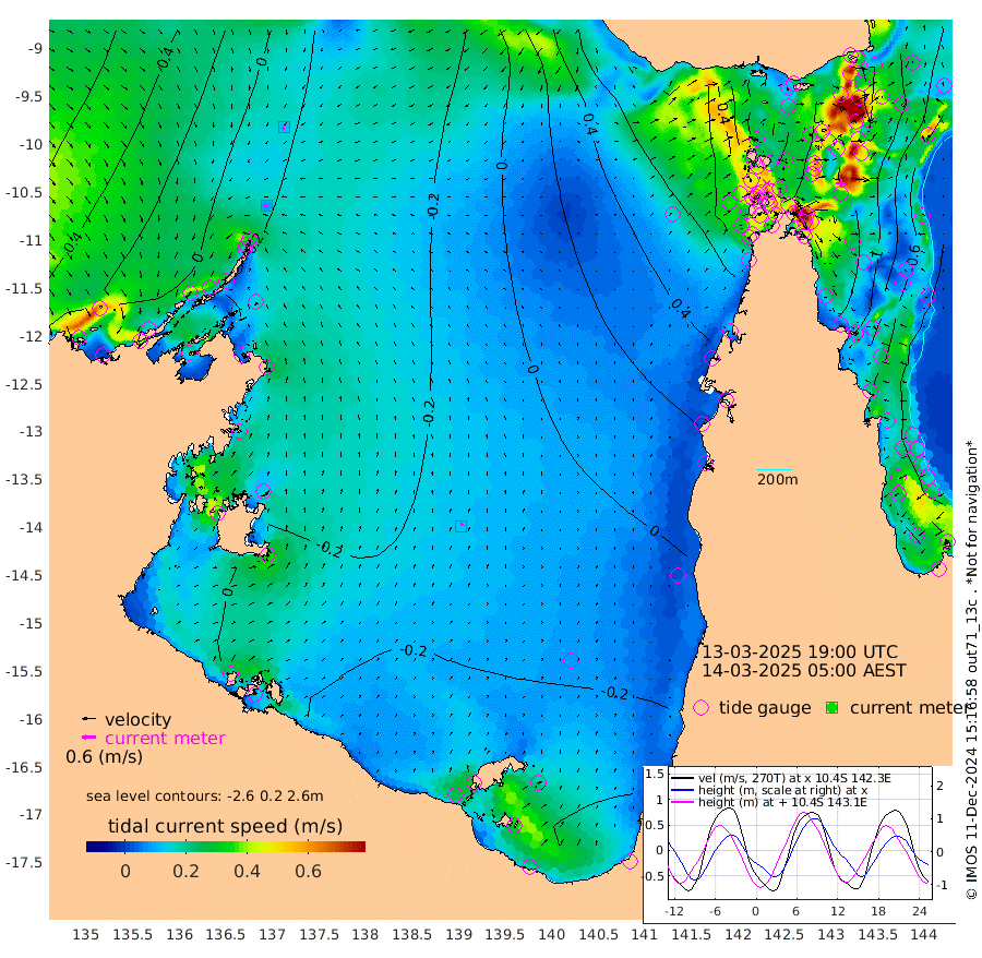 9cm/s -117T +3cm/s rms + 7cm/s -42T. ARA-GOC87 57m 13cm/s 26T +3cm/s rms + 2cm/s -2T. ARA-GOC87 60m 11cm/s -152T +2cm/s rms + 3cm/s 61T. ARA-GOC87 47m -133cm Daru -138cm Bobo Island -62cm Meer Island Barge -94cm Bramble Cay -113cm Unnamed Cay -133cm Pearce Cay -113cm Stephens Island -115cm Merrie England Shoals -129cm Mutacomal Reef -99cm Darnley Island Barge -77cm East Cay -111cm Yorke Island Barge -123cm Rennel Island -126cm Aureed Island -121cm Dungeness Reef -104cm Zagai Island -100cm Yam Island -67cm Dauan Island -58cm Saibai Island -91cm Phipi Reef -117cm Warrior Reef - West -33cm Mabuiag Island Barge -116cm Half Way Island -127cm Coconut Island -119cm Dugong Islet -114cm Poll Island -113cm Kirkcaldie Reef -100cm Suarji Island -100cm Sue Islet 23cm Hawkesbury Island -82cm Alert Patches -90cm Twin Island 8cm Badu Island -85cm St Pauls (Moa Island) -9cm Kubin (Moa Island) -54cm Ince Point -32cm Thursday Island -38cm Nardana Patches -15cm Turtle Head 10cm Round Island 29cm Goods Island 67cm Booby Island 49cm White Rocks Area 92cm Carpentaria -73cm Papou Point 70cm Bampfield Head 51cm Crab Island 49cm Red Wallis Island 0cm Packe Island -137cm Harrington Reef 41cm Herald Camp -27cm Sharp Point -23cm Red Island Point -47cm Possession Island -83cm Alpha Rock -112cm Frederick Point -127cm Wyborn Reef Light -124cm Tetley Island -66cm Triangle Reef -124cm Turtle Head Island -62cm Maclennan Cay -40cm Raine Island -110cm Mcsweeny Reef -99cm Collette Reef -61cm Shadwell Reef -107cm Hannibal Island -101cm Round Point 63cm Vrilya Point -80cm Cape Grenville -76cm Hicks Island -66cm Sir Charles Hardy Island -26cm Harvey Island -64cm Kay Reef -52cm Rocky Island -47cm Chapman Island -40cm Ham Reef -46cm Jubilee Reef -51cm Night Island -46cm Unnamed Reef No. 3 -54cm Morris Island -35cm 1st 3 Mile Opening -47cm Creech Reef -68cm Fife Island -52cm Eden Reef -49cm Stanley Island -64cm Normanby River 6cm Yabooma Island -18cm Hutchison River -1cm Elcho Island -3cm North West Crocodile Island -15cm Cape Wessel -15cm Stevens Island -40cm Guluwuru Island -6cm Hopeful Bay -10cm Auster Point -7cm Two Island Bay -47cm Cadell Strait -79cm Mallison Island -36cm Melville Bay (Gove Harbour) -35cm Truant Island -28cm Cape Arnhem -20cm Cape Grey -26cm Hawk Island 1cm Milner Bay (Groote Eylandt) -10cm Cape Beatrice 3cm West Island 7cm Centre Island -54cm Mornington Island -47cm West Wellesley Islands -48cm Bountiful Island -56cm Albert River Mouth -55cm Sweers Island -69cm Karumba -53cm Nassau River Offshore -38cm Christmas Creek 0cm Archer River 19cm Boyd Point 24cm Weipa (Humbug Point) 29cm Pennefather River 55cm Cullen Point
