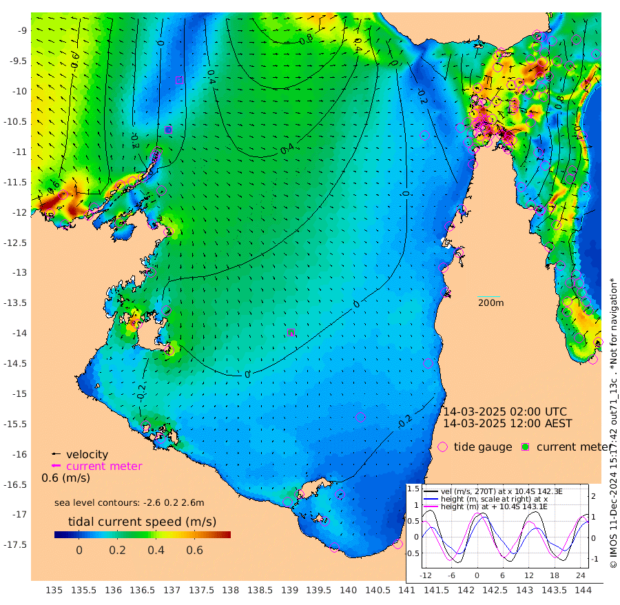 3cm/s 83T +3cm/s rms + 7cm/s -42T. ARA-GOC87 57m 26cm/s 171T +3cm/s rms + 2cm/s -2T. ARA-GOC87 60m 6cm/s -49T +2cm/s rms + 3cm/s 61T. ARA-GOC87 47m 138cm Daru 136cm Bobo Island 50cm Meer Island Barge 78cm Bramble Cay 109cm Unnamed Cay 126cm Pearce Cay 105cm Stephens Island 103cm Merrie England Shoals 134cm Mutacomal Reef 93cm Darnley Island Barge 59cm East Cay 115cm Yorke Island Barge 124cm Rennel Island 128cm Aureed Island 133cm Dungeness Reef 140cm Zagai Island 141cm Yam Island 125cm Dauan Island 117cm Saibai Island 118cm Phipi Reef 154cm Warrior Reef - West 91cm Mabuiag Island Barge 120cm Half Way Island 137cm Coconut Island 134cm Dugong Islet 141cm Poll Island 133cm Kirkcaldie Reef 140cm Suarji Island 132cm Sue Islet 45cm Hawkesbury Island 122cm Alert Patches 132cm Twin Island 46cm Badu Island 138cm St Pauls (Moa Island) 74cm Kubin (Moa Island) 106cm Ince Point 87cm Thursday Island 93cm Nardana Patches 67cm Turtle Head 51cm Round Island 27cm Goods Island -1cm Booby Island 10cm White Rocks Area -11cm Carpentaria 116cm Papou Point 8cm Bampfield Head -8cm Crab Island 16cm Red Wallis Island 60cm Packe Island 147cm Harrington Reef 36cm Herald Camp 41cm Sharp Point 56cm Red Island Point 91cm Possession Island 127cm Alpha Rock 141cm Frederick Point 141cm Wyborn Reef Light 146cm Tetley Island 64cm Triangle Reef 136cm Turtle Head Island 56cm Maclennan Cay 22cm Raine Island 107cm Mcsweeny Reef 90cm Collette Reef 49cm Shadwell Reef 94cm Hannibal Island 83cm Round Point -19cm Vrilya Point 67cm Cape Grenville 62cm Hicks Island 64cm Sir Charles Hardy Island 22cm Harvey Island 45cm Kay Reef 36cm Rocky Island 28cm Chapman Island 27cm Ham Reef 32cm Jubilee Reef 37cm Night Island 30cm Unnamed Reef No. 3 35cm Morris Island 22cm 1st 3 Mile Opening 32cm Creech Reef 48cm Fife Island 28cm Eden Reef 30cm Stanley Island 41cm Normanby River -30cm Yabooma Island -15cm Hutchison River -29cm Elcho Island -27cm North West Crocodile Island 19cm Cape Wessel -9cm Stevens Island 40cm Guluwuru Island -19cm Hopeful Bay 0cm Auster Point 9cm Two Island Bay 20cm Cadell Strait 85cm Mallison Island 30cm Melville Bay (Gove Harbour) 36cm Truant Island 26cm Cape Arnhem 2cm Cape Grey 3cm Hawk Island -35cm Milner Bay (Groote Eylandt) -28cm Cape Beatrice -43cm West Island -51cm Centre Island -28cm Mornington Island -32cm West Wellesley Islands -48cm Bountiful Island -77cm Albert River Mouth -89cm Sweers Island -65cm Karumba -10cm Nassau River Offshore 5cm Christmas Creek -9cm Archer River 4cm Boyd Point -8cm Weipa (Humbug Point) -17cm Pennefather River -6cm Cullen Point