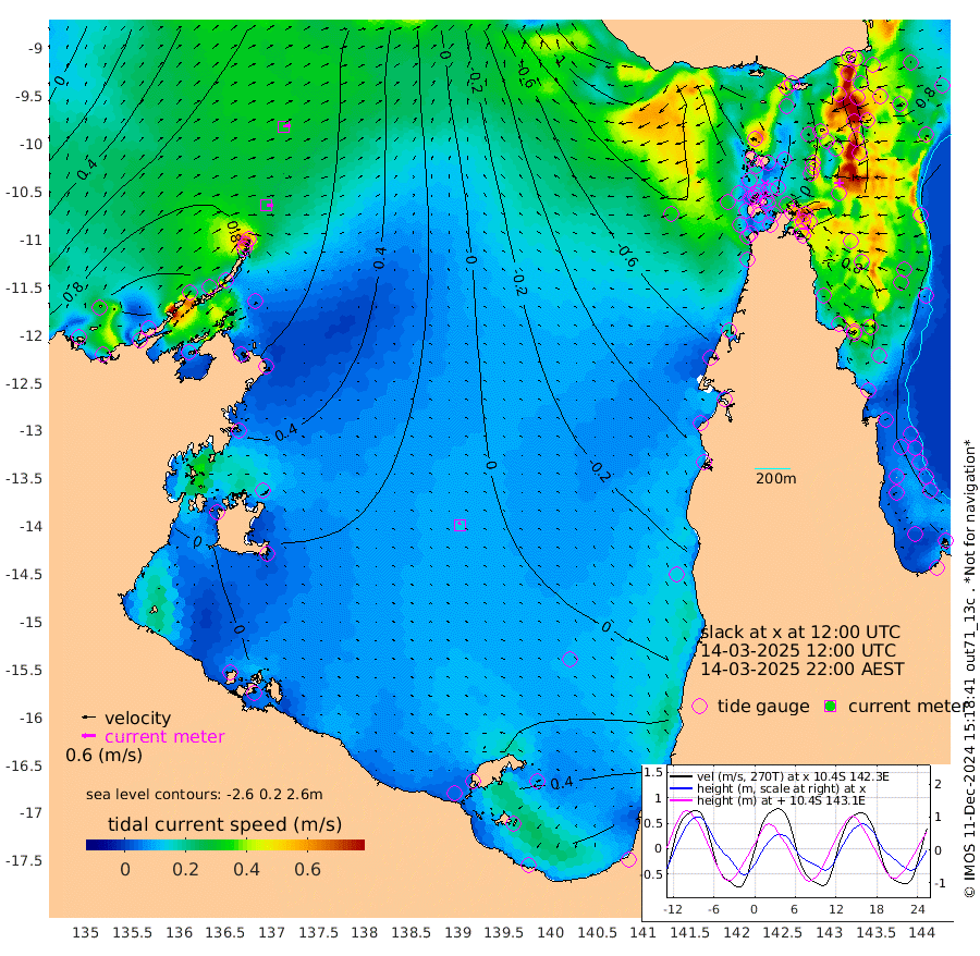 26cm/s 90T +3cm/s rms + 7cm/s -42T. ARA-GOC87 57m 14cm/s -28T +3cm/s rms + 2cm/s -2T. ARA-GOC87 60m 31cm/s 79T +2cm/s rms + 3cm/s 61T. ARA-GOC87 47m 76cm Daru 88cm Bobo Island 60cm Meer Island Barge 85cm Bramble Cay 83cm Unnamed Cay 92cm Pearce Cay 83cm Stephens Island 93cm Merrie England Shoals 80cm Mutacomal Reef 72cm Darnley Island Barge 74cm East Cay 68cm Yorke Island Barge 77cm Rennel Island 75cm Aureed Island 58cm Dungeness Reef 22cm Zagai Island 13cm Yam Island -34cm Dauan Island -34cm Saibai Island 1cm Phipi Reef 20cm Warrior Reef - West -38cm Mabuiag Island Barge 68cm Half Way Island 70cm Coconut Island 58cm Dugong Islet 40cm Poll Island 40cm Kirkcaldie Reef 18cm Suarji Island 27cm Sue Islet -71cm Hawkesbury Island 6cm Alert Patches 10cm Twin Island -50cm Badu Island -5cm St Pauls (Moa Island) -51cm Kubin (Moa Island) -20cm Ince Point -34cm Thursday Island -31cm Nardana Patches -40cm Turtle Head -55cm Round Island -63cm Goods Island -90cm Booby Island -69cm White Rocks Area -114cm Carpentaria 0cm Papou Point -86cm Bampfield Head -72cm Crab Island -83cm Red Wallis Island -54cm Packe Island 73cm Harrington Reef -93cm Herald Camp -6cm Sharp Point -26cm Red Island Point -14cm Possession Island 11cm Alpha Rock 38cm Frederick Point 75cm Wyborn Reef Light 65cm Tetley Island 51cm Triangle Reef 74cm Turtle Head Island 52cm Maclennan Cay 53cm Raine Island 77cm Mcsweeny Reef 77cm Collette Reef 58cm Shadwell Reef 88cm Hannibal Island 92cm Round Point -82cm Vrilya Point 72cm Cape Grenville 70cm Hicks Island 56cm Sir Charles Hardy Island 21cm Harvey Island 71cm Kay Reef 59cm Rocky Island 61cm Chapman Island 50cm Ham Reef 54cm Jubilee Reef 52cm Night Island 56cm Unnamed Reef No. 3 63cm Morris Island 48cm 1st 3 Mile Opening 54cm Creech Reef 70cm Fife Island 71cm Eden Reef 61cm Stanley Island 76cm Normanby River 111cm Yabooma Island 143cm Hutchison River 117cm Elcho Island 110cm North West Crocodile Island 84cm Cape Wessel 124cm Stevens Island 91cm Guluwuru Island 109cm Hopeful Bay 94cm Auster Point 79cm Two Island Bay 135cm Cadell Strait 125cm Mallison Island 89cm Melville Bay (Gove Harbour) 90cm Truant Island 61cm Cape Arnhem 52cm Cape Grey 47cm Hawk Island 32cm Milner Bay (Groote Eylandt) 27cm Cape Beatrice 1cm West Island 1cm Centre Island 44cm Mornington Island 40cm West Wellesley Islands 59cm Bountiful Island 84cm Albert River Mouth 99cm Sweers Island 81cm Karumba 30cm Nassau River Offshore 4cm Christmas Creek -17cm Archer River -46cm Boyd Point -42cm Weipa (Humbug Point) -43cm Pennefather River -82cm Cullen Point
