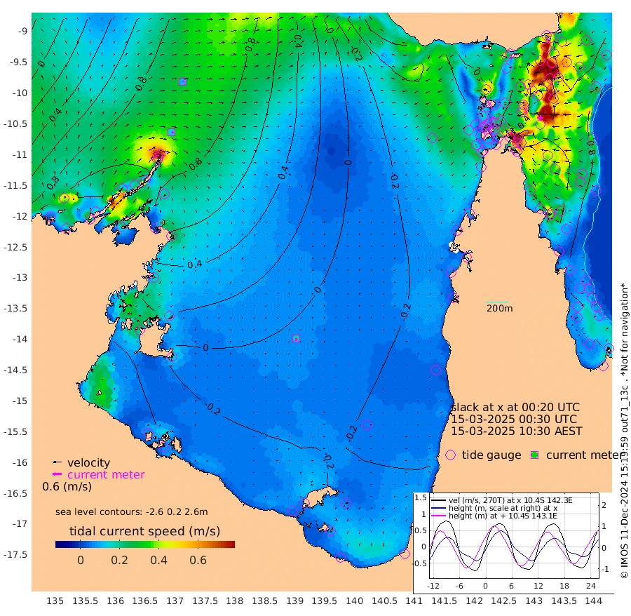 15cm/s 108T +3cm/s rms + 7cm/s -42T. ARA-GOC87 57m 18cm/s -177T +3cm/s rms + 2cm/s -2T. ARA-GOC87 60m 11cm/s 89T +2cm/s rms + 3cm/s 61T. ARA-GOC87 47m 121cm Daru 123cm Bobo Island 80cm Meer Island Barge 113cm Bramble Cay 125cm Unnamed Cay 127cm Pearce Cay 117cm Stephens Island 128cm Merrie England Shoals 133cm Mutacomal Reef 103cm Darnley Island Barge 94cm East Cay 107cm Yorke Island Barge 121cm Rennel Island 112cm Aureed Island 106cm Dungeness Reef 79cm Zagai Island 84cm Yam Island 51cm Dauan Island 43cm Saibai Island 48cm Phipi Reef 88cm Warrior Reef - West 38cm Mabuiag Island Barge 112cm Half Way Island 112cm Coconut Island 114cm Dugong Islet 100cm Poll Island 92cm Kirkcaldie Reef 80cm Suarji Island 85cm Sue Islet 40cm Hawkesbury Island 73cm Alert Patches 80cm Twin Island 32cm Badu Island 72cm St Pauls (Moa Island) 51cm Kubin (Moa Island) 59cm Ince Point 47cm Thursday Island 50cm Nardana Patches 44cm Turtle Head 38cm Round Island 29cm Goods Island 2cm Booby Island 22cm White Rocks Area -29cm Carpentaria 63cm Papou Point 18cm Bampfield Head -14cm Crab Island 14cm Red Wallis Island 48cm Packe Island 121cm Harrington Reef 23cm Herald Camp 10cm Sharp Point 29cm Red Island Point 50cm Possession Island 87cm Alpha Rock 100cm Frederick Point 133cm Wyborn Reef Light 128cm Tetley Island 82cm Triangle Reef 123cm Turtle Head Island 81cm Maclennan Cay 63cm Raine Island 115cm Mcsweeny Reef 106cm Collette Reef 79cm Shadwell Reef 117cm Hannibal Island 120cm Round Point -32cm Vrilya Point 100cm Cape Grenville 93cm Hicks Island 98cm Sir Charles Hardy Island 29cm Harvey Island 93cm Kay Reef 77cm Rocky Island 76cm Chapman Island 68cm Ham Reef 72cm Jubilee Reef 69cm Night Island 72cm Unnamed Reef No. 3 80cm Morris Island 63cm 1st 3 Mile Opening 70cm Creech Reef 87cm Fife Island 86cm Eden Reef 78cm Stanley Island 94cm Normanby River 139cm Yabooma Island 169cm Hutchison River 134cm Elcho Island 127cm North West Crocodile Island 114cm Cape Wessel 141cm Stevens Island 115cm Guluwuru Island 122cm Hopeful Bay 111cm Auster Point 114cm Two Island Bay 152cm Cadell Strait 163cm Mallison Island 106cm Melville Bay (Gove Harbour) 113cm Truant Island 68cm Cape Arnhem 30cm Cape Grey 22cm Hawk Island -28cm Milner Bay (Groote Eylandt) -27cm Cape Beatrice -71cm West Island -83cm Centre Island -53cm Mornington Island -50cm West Wellesley Islands -45cm Bountiful Island -62cm Albert River Mouth -75cm Sweers Island -64cm Karumba -26cm Nassau River Offshore -11cm Christmas Creek -10cm Archer River -5cm Boyd Point -3cm Weipa (Humbug Point) -29cm Pennefather River -19cm Cullen Point