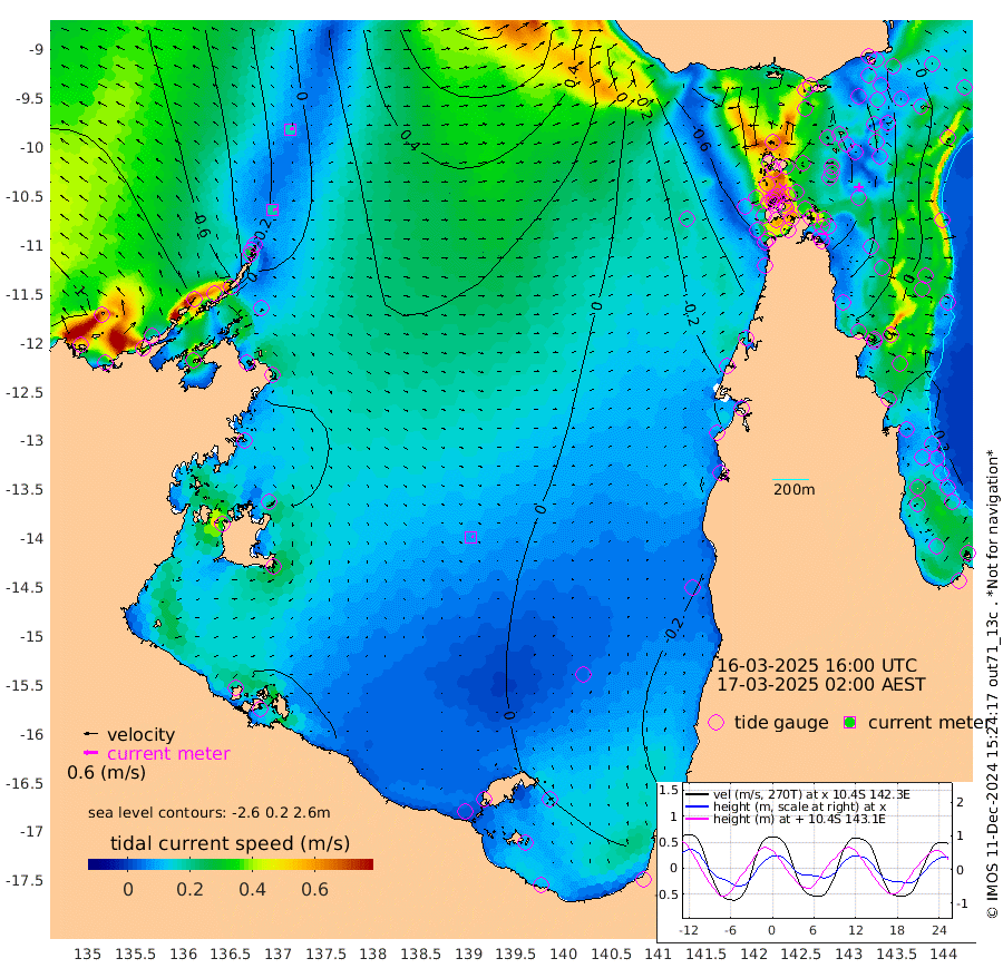 19cm/s 82T +3cm/s rms + 7cm/s -42T. ARA-GOC87 57m 8cm/s 77T +3cm/s rms + 2cm/s -2T. ARA-GOC87 60m 17cm/s 72T +2cm/s rms + 3cm/s 61T. ARA-GOC87 47m 34cm Daru 41cm Bobo Island -6cm Meer Island Barge -3cm Bramble Cay 9cm Unnamed Cay 24cm Pearce Cay 10cm Stephens Island 3cm Merrie England Shoals 21cm Mutacomal Reef 15cm Darnley Island Barge -9cm East Cay 29cm Yorke Island Barge 16cm Rennel Island 40cm Aureed Island 32cm Dungeness Reef 68cm Zagai Island 46cm Yam Island 54cm Dauan Island 69cm Saibai Island 56cm Phipi Reef 66cm Warrior Reef - West 30cm Mabuiag Island Barge 15cm Half Way Island 44cm Coconut Island 21cm Dugong Islet 41cm Poll Island 31cm Kirkcaldie Reef 56cm Suarji Island 49cm Sue Islet -65cm Hawkesbury Island 31cm Alert Patches 36cm Twin Island -27cm Badu Island 45cm St Pauls (Moa Island) -31cm Kubin (Moa Island) 16cm Ince Point 2cm Thursday Island 6cm Nardana Patches -22cm Turtle Head -40cm Round Island -58cm Goods Island -72cm Booby Island -72cm White Rocks Area -39cm Carpentaria 34cm Papou Point -63cm Bampfield Head -59cm Crab Island -67cm Red Wallis Island -45cm Packe Island 34cm Harrington Reef -68cm Herald Camp 22cm Sharp Point -16cm Red Island Point 10cm Possession Island 33cm Alpha Rock 38cm Frederick Point 31cm Wyborn Reef Light 35cm Tetley Island 4cm Triangle Reef 21cm Turtle Head Island -8cm Maclennan Cay -18cm Raine Island 16cm Mcsweeny Reef 11cm Collette Reef -5cm Shadwell Reef 9cm Hannibal Island -7cm Round Point -54cm Vrilya Point -10cm Cape Grenville -9cm Hicks Island -9cm Sir Charles Hardy Island -2cm Harvey Island -17cm Kay Reef -16cm Rocky Island -15cm Chapman Island -16cm Ham Reef -15cm Jubilee Reef -13cm Night Island -16cm Unnamed Reef No. 3 -19cm Morris Island -20cm 1st 3 Mile Opening -17cm Creech Reef -14cm Fife Island -26cm Eden Reef -25cm Stanley Island -27cm Normanby River -105cm Yabooma Island -94cm Hutchison River -90cm Elcho Island -94cm North West Crocodile Island -13cm Cape Wessel -61cm Stevens Island 25cm Guluwuru Island -62cm Hopeful Bay -35cm Auster Point -44cm Two Island Bay -40cm Cadell Strait 114cm Mallison Island 14cm Melville Bay (Gove Harbour) 17cm Truant Island 25cm Cape Arnhem 23cm Cape Grey 17cm Hawk Island 18cm Milner Bay (Groote Eylandt) 9cm Cape Beatrice 16cm West Island 20cm Centre Island 15cm Mornington Island 10cm West Wellesley Islands 5cm Bountiful Island -10cm Albert River Mouth 9cm Sweers Island -11cm Karumba -5cm Nassau River Offshore -13cm Christmas Creek -29cm Archer River -28cm Boyd Point -44cm Weipa (Humbug Point) -33cm Pennefather River -49cm Cullen Point