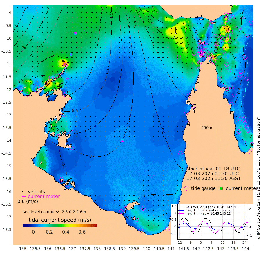 10cm/s 90T +3cm/s rms + 7cm/s -42T. ARA-GOC87 57m 12cm/s -156T +3cm/s rms + 2cm/s -2T. ARA-GOC87 60m 10cm/s 63T +2cm/s rms + 3cm/s 61T. ARA-GOC87 47m 93cm Daru 89cm Bobo Island 40cm Meer Island Barge 68cm Bramble Cay 85cm Unnamed Cay 83cm Pearce Cay 73cm Stephens Island 83cm Merrie England Shoals 98cm Mutacomal Reef 63cm Darnley Island Barge 48cm East Cay 73cm Yorke Island Barge 84cm Rennel Island 77cm Aureed Island 81cm Dungeness Reef 81cm Zagai Island 81cm Yam Island 75cm Dauan Island 66cm Saibai Island 69cm Phipi Reef 92cm Warrior Reef - West 46cm Mabuiag Island Barge 74cm Half Way Island 84cm Coconut Island 81cm Dugong Islet 82cm Poll Island 73cm Kirkcaldie Reef 73cm Suarji Island 72cm Sue Islet 11cm Hawkesbury Island 59cm Alert Patches 65cm Twin Island 23cm Badu Island 67cm St Pauls (Moa Island) 32cm Kubin (Moa Island) 48cm Ince Point 33cm Thursday Island 39cm Nardana Patches 27cm Turtle Head 15cm Round Island 4cm Goods Island -27cm Booby Island -9cm White Rocks Area -60cm Carpentaria 55cm Papou Point -23cm Bampfield Head -35cm Crab Island -16cm Red Wallis Island 20cm Packe Island 84cm Harrington Reef -9cm Herald Camp 16cm Sharp Point 12cm Red Island Point 32cm Possession Island 72cm Alpha Rock 77cm Frederick Point 99cm Wyborn Reef Light 98cm Tetley Island 47cm Triangle Reef 82cm Turtle Head Island 41cm Maclennan Cay 26cm Raine Island 76cm Mcsweeny Reef 67cm Collette Reef 43cm Shadwell Reef 73cm Hannibal Island 70cm Round Point -57cm Vrilya Point 53cm Cape Grenville 50cm Hicks Island 54cm Sir Charles Hardy Island 15cm Harvey Island 45cm Kay Reef 36cm Rocky Island 32cm Chapman Island 27cm Ham Reef 32cm Jubilee Reef 30cm Night Island 28cm Unnamed Reef No. 3 37cm Morris Island 25cm 1st 3 Mile Opening 28cm Creech Reef 42cm Fife Island 36cm Eden Reef 31cm Stanley Island 42cm Normanby River 125cm Yabooma Island 159cm Hutchison River 127cm Elcho Island 122cm North West Crocodile Island 97cm Cape Wessel 129cm Stevens Island 110cm Guluwuru Island 107cm Hopeful Bay 95cm Auster Point 97cm Two Island Bay 142cm Cadell Strait 145cm Mallison Island 100cm Melville Bay (Gove Harbour) 103cm Truant Island 67cm Cape Arnhem 39cm Cape Grey 32cm Hawk Island -4cm Milner Bay (Groote Eylandt) -2cm Cape Beatrice -39cm West Island -52cm Centre Island -12cm Mornington Island -11cm West Wellesley Islands 6cm Bountiful Island 17cm Albert River Mouth -2cm Sweers Island 5cm Karumba -4cm Nassau River Offshore -6cm Christmas Creek -21cm Archer River -21cm Boyd Point -18cm Weipa (Humbug Point) -46cm Pennefather River -42cm Cullen Point