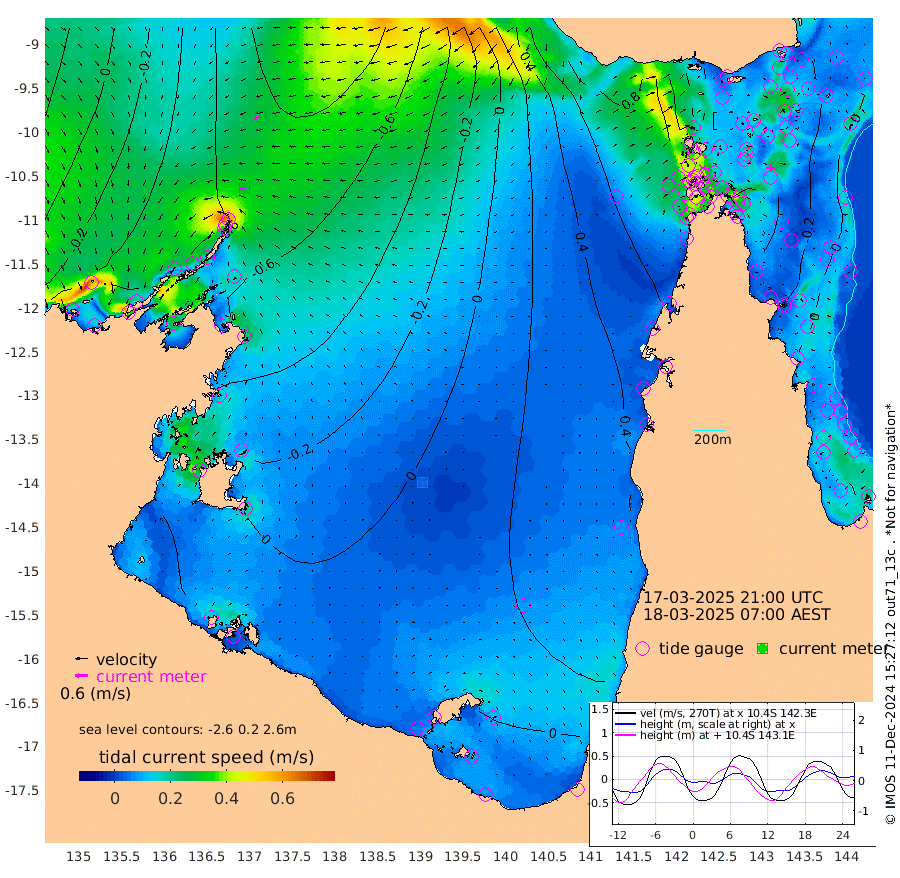 28cm/s -93T +3cm/s rms + 7cm/s -42T. ARA-GOC87 57m 4cm/s 160T +3cm/s rms + 2cm/s -2T. ARA-GOC87 60m 30cm/s -109T +2cm/s rms + 3cm/s 61T. ARA-GOC87 47m -43cm Daru -44cm Bobo Island 4cm Meer Island Barge -13cm Bramble Cay -23cm Unnamed Cay -27cm Pearce Cay -17cm Stephens Island -22cm Merrie England Shoals -38cm Mutacomal Reef -15cm Darnley Island Barge 2cm East Cay -26cm Yorke Island Barge -25cm Rennel Island -30cm Aureed Island -28cm Dungeness Reef -54cm Zagai Island -41cm Yam Island -46cm Dauan Island -47cm Saibai Island -45cm Phipi Reef -57cm Warrior Reef - West -12cm Mabuiag Island Barge -19cm Half Way Island -40cm Coconut Island -19cm Dugong Islet -35cm Poll Island -25cm Kirkcaldie Reef -24cm Suarji Island -34cm Sue Islet 54cm Hawkesbury Island -11cm Alert Patches -20cm Twin Island 33cm Badu Island -25cm St Pauls (Moa Island) 26cm Kubin (Moa Island) 0cm Ince Point 16cm Thursday Island 10cm Nardana Patches 32cm Turtle Head 32cm Round Island 65cm Goods Island 90cm Booby Island 84cm White Rocks Area 91cm Carpentaria -20cm Papou Point 78cm Bampfield Head 66cm Crab Island 77cm Red Wallis Island 41cm Packe Island -27cm Harrington Reef 62cm Herald Camp -13cm Sharp Point 29cm Red Island Point 3cm Possession Island -28cm Alpha Rock -28cm Frederick Point -45cm Wyborn Reef Light -47cm Tetley Island -6cm Triangle Reef -28cm Turtle Head Island 10cm Maclennan Cay 15cm Raine Island -20cm Mcsweeny Reef -18cm Collette Reef -1cm Shadwell Reef -19cm Hannibal Island -13cm Round Point 74cm Vrilya Point 1cm Cape Grenville 1cm Hicks Island 7cm Sir Charles Hardy Island 0cm Harvey Island 9cm Kay Reef 12cm Rocky Island 13cm Chapman Island 15cm Ham Reef 13cm Jubilee Reef 9cm Night Island 15cm Unnamed Reef No. 3 14cm Morris Island 23cm 1st 3 Mile Opening 18cm Creech Reef 4cm Fife Island 19cm Eden Reef 19cm Stanley Island 16cm Normanby River -52cm Yabooma Island -79cm Hutchison River -64cm Elcho Island -58cm North West Crocodile Island -72cm Cape Wessel -86cm Stevens Island -96cm Guluwuru Island -70cm Hopeful Bay -66cm Auster Point -71cm Two Island Bay -108cm Cadell Strait -210cm Mallison Island -84cm Melville Bay (Gove Harbour) -90cm Truant Island -65cm Cape Arnhem -36cm Cape Grey -39cm Hawk Island -11cm Milner Bay (Groote Eylandt) -2cm Cape Beatrice 29cm West Island 27cm Centre Island 1cm Mornington Island 14cm West Wellesley Islands 21cm Bountiful Island -11cm Albert River Mouth -12cm Sweers Island -9cm Karumba 17cm Nassau River Offshore 27cm Christmas Creek 43cm Archer River 48cm Boyd Point 57cm Weipa (Humbug Point) 47cm Pennefather River 64cm Cullen Point