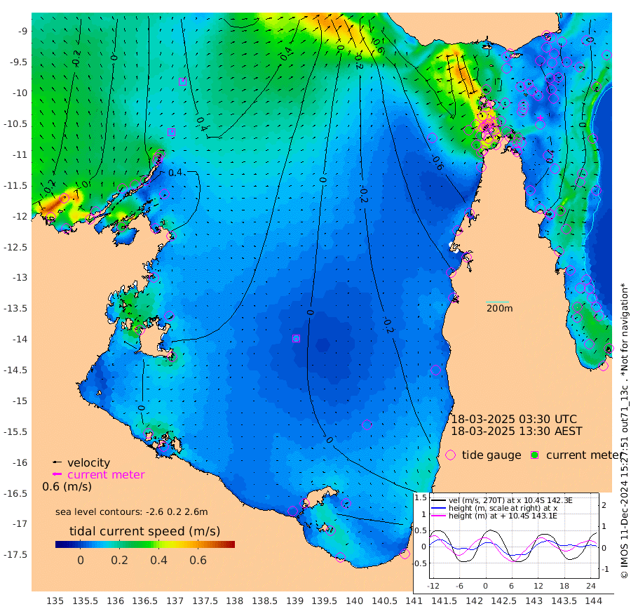 12cm/s 42T +3cm/s rms + 7cm/s -42T. ARA-GOC87 57m 8cm/s -157T +3cm/s rms + 2cm/s -2T. ARA-GOC87 60m 14cm/s 24T +2cm/s rms + 3cm/s 61T. ARA-GOC87 47m 43cm Daru 39cm Bobo Island -8cm Meer Island Barge 7cm Bramble Cay 22cm Unnamed Cay 21cm Pearce Cay 13cm Stephens Island 16cm Merrie England Shoals 40cm Mutacomal Reef 13cm Darnley Island Barge -8cm East Cay 27cm Yorke Island Barge 25cm Rennel Island 32cm Aureed Island 32cm Dungeness Reef 67cm Zagai Island 57cm Yam Island 73cm Dauan Island 77cm Saibai Island 54cm Phipi Reef 76cm Warrior Reef - West 29cm Mabuiag Island Barge 19cm Half Way Island 38cm Coconut Island 27cm Dugong Islet 43cm Poll Island 30cm Kirkcaldie Reef 40cm Suarji Island 45cm Sue Islet -59cm Hawkesbury Island 18cm Alert Patches 28cm Twin Island -33cm Badu Island 37cm St Pauls (Moa Island) -24cm Kubin (Moa Island) 10cm Ince Point -9cm Thursday Island -1cm Nardana Patches -27cm Turtle Head -43cm Round Island -64cm Goods Island -91cm Booby Island -82cm White Rocks Area -85cm Carpentaria 26cm Papou Point -95cm Bampfield Head -81cm Crab Island -75cm Red Wallis Island -41cm Packe Island 27cm Harrington Reef -69cm Herald Camp 19cm Sharp Point -33cm Red Island Point -11cm Possession Island 41cm Alpha Rock 32cm Frederick Point 43cm Wyborn Reef Light 47cm Tetley Island 5cm Triangle Reef 14cm Turtle Head Island -9cm Maclennan Cay -21cm Raine Island 19cm Mcsweeny Reef 14cm Collette Reef -3cm Shadwell Reef 13cm Hannibal Island 2cm Round Point -90cm Vrilya Point -5cm Cape Grenville -7cm Hicks Island 1cm Sir Charles Hardy Island -2cm Harvey Island -13cm Kay Reef -15cm Rocky Island -18cm Chapman Island -17cm Ham Reef -15cm Jubilee Reef -14cm Night Island -18cm Unnamed Reef No. 3 -18cm Morris Island -26cm 1st 3 Mile Opening -21cm Creech Reef -10cm Fife Island -23cm Eden Reef -23cm Stanley Island -21cm Normanby River 4cm Yabooma Island 27cm Hutchison River 18cm Elcho Island 16cm North West Crocodile Island 44cm Cape Wessel 35cm Stevens Island 77cm Guluwuru Island 22cm Hopeful Bay 24cm Auster Point 30cm Two Island Bay 54cm Cadell Strait 181cm Mallison Island 60cm Melville Bay (Gove Harbour) 62cm Truant Island 49cm Cape Arnhem 30cm Cape Grey 31cm Hawk Island 12cm Milner Bay (Groote Eylandt) 15cm Cape Beatrice -1cm West Island -9cm Centre Island 21cm Mornington Island 20cm West Wellesley Islands 22cm Bountiful Island 46cm Albert River Mouth 29cm Sweers Island 30cm Karumba 5cm Nassau River Offshore -10cm Christmas Creek -42cm Archer River -42cm Boyd Point -50cm Weipa (Humbug Point) -67cm Pennefather River -69cm Cullen Point