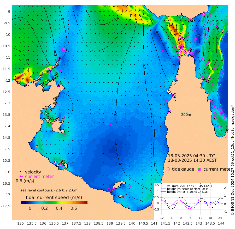 12cm/s 10T +3cm/s rms + 7cm/s -42T. ARA-GOC87 57m 5cm/s -174T +3cm/s rms + 2cm/s -2T. ARA-GOC87 60m 15cm/s -1T +2cm/s rms + 3cm/s 61T. ARA-GOC87 47m 4cm Daru 3cm Bobo Island -29cm Meer Island Barge -25cm Bramble Cay -15cm Unnamed Cay -16cm Pearce Cay -20cm Stephens Island -20cm Merrie England Shoals 0cm Mutacomal Reef -15cm Darnley Island Barge -33cm East Cay -4cm Yorke Island Barge -12cm Rennel Island 1cm Aureed Island -4cm Dungeness Reef 37cm Zagai Island 26cm Yam Island 44cm Dauan Island 55cm Saibai Island 19cm Phipi Reef 42cm Warrior Reef - West 6cm Mabuiag Island Barge -14cm Half Way Island 2cm Coconut Island -7cm Dugong Islet 9cm Poll Island -3cm Kirkcaldie Reef 8cm Suarji Island 17cm Sue Islet -82cm Hawkesbury Island -12cm Alert Patches -2cm Twin Island -62cm Badu Island 7cm St Pauls (Moa Island) -49cm Kubin (Moa Island) -16cm Ince Point -32cm Thursday Island -25cm Nardana Patches -51cm Turtle Head -65cm Round Island -85cm Goods Island -102cm Booby Island -99cm White Rocks Area -70cm Carpentaria 0cm Papou Point -107cm Bampfield Head -86cm Crab Island -84cm Red Wallis Island -61cm Packe Island -9cm Harrington Reef -81cm Herald Camp 15cm Sharp Point -53cm Red Island Point -35cm Possession Island 14cm Alpha Rock 0cm Frederick Point 3cm Wyborn Reef Light 8cm Tetley Island -16cm Triangle Reef -27cm Turtle Head Island -29cm Maclennan Cay -38cm Raine Island -14cm Mcsweeny Reef -16cm Collette Reef -25cm Shadwell Reef -20cm Hannibal Island -30cm Round Point -84cm Vrilya Point -30cm Cape Grenville -33cm Hicks Island -24cm Sir Charles Hardy Island -10cm Harvey Island -36cm Kay Reef -36cm Rocky Island -35cm Chapman Island -32cm Ham Reef -34cm Jubilee Reef -30cm Night Island -33cm Unnamed Reef No. 3 -39cm Morris Island -45cm 1st 3 Mile Opening -38cm Creech Reef -30cm Fife Island -45cm Eden Reef -42cm Stanley Island -44cm Normanby River -69cm Yabooma Island -61cm Hutchison River -53cm Elcho Island -52cm North West Crocodile Island 3cm Cape Wessel -30cm Stevens Island 33cm Guluwuru Island -34cm Hopeful Bay -25cm Auster Point -17cm Two Island Bay -17cm Cadell Strait 159cm Mallison Island 18cm Melville Bay (Gove Harbour) 20cm Truant Island 24cm Cape Arnhem 11cm Cape Grey 18cm Hawk Island 14cm Milner Bay (Groote Eylandt) 17cm Cape Beatrice 19cm West Island 15cm Centre Island 27cm Mornington Island 27cm West Wellesley Islands 13cm Bountiful Island 36cm Albert River Mouth 22cm Sweers Island 21cm Karumba 4cm Nassau River Offshore -11cm Christmas Creek -44cm Archer River -41cm Boyd Point -55cm Weipa (Humbug Point) -62cm Pennefather River -63cm Cullen Point