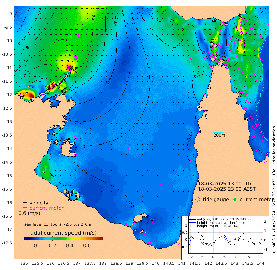 33cm/s 112T +3cm/s rms + 7cm/s -42T. ARA-GOC87 57m 9cm/s -13T +3cm/s rms + 2cm/s -2T. ARA-GOC87 60m 34cm/s 101T +2cm/s rms + 3cm/s 61T. ARA-GOC87 47m 49cm Daru 48cm Bobo Island 29cm Meer Island Barge 44cm Bramble Cay 48cm Unnamed Cay 50cm Pearce Cay 44cm Stephens Island 50cm Merrie England Shoals 47cm Mutacomal Reef 35cm Darnley Island Barge 33cm East Cay 36cm Yorke Island Barge 45cm Rennel Island 35cm Aureed Island 42cm Dungeness Reef 28cm Zagai Island 27cm Yam Island 16cm Dauan Island 1cm Saibai Island 38cm Phipi Reef 26cm Warrior Reef - West 16cm Mabuiag Island Barge 41cm Half Way Island 46cm Coconut Island 35cm Dugong Islet 36cm Poll Island 37cm Kirkcaldie Reef 25cm Suarji Island 25cm Sue Islet 39cm Hawkesbury Island 32cm Alert Patches 30cm Twin Island 41cm Badu Island 28cm St Pauls (Moa Island) 35cm Kubin (Moa Island) 26cm Ince Point 24cm Thursday Island 25cm Nardana Patches 29cm Turtle Head 44cm Round Island 30cm Goods Island 19cm Booby Island 23cm White Rocks Area -25cm Carpentaria 29cm Papou Point 37cm Bampfield Head 23cm Crab Island 13cm Red Wallis Island 28cm Packe Island 43cm Harrington Reef 26cm Herald Camp 0cm Sharp Point 29cm Red Island Point 39cm Possession Island 22cm Alpha Rock 37cm Frederick Point 53cm Wyborn Reef Light 50cm Tetley Island 25cm Triangle Reef 67cm Turtle Head Island 23cm Maclennan Cay 26cm Raine Island 41cm Mcsweeny Reef 39cm Collette Reef 29cm Shadwell Reef 44cm Hannibal Island 49cm Round Point 8cm Vrilya Point 33cm Cape Grenville 37cm Hicks Island 21cm Sir Charles Hardy Island 10cm Harvey Island 29cm Kay Reef 25cm Rocky Island 22cm Chapman Island 17cm Ham Reef 23cm Jubilee Reef 23cm Night Island 17cm Unnamed Reef No. 3 28cm Morris Island 26cm 1st 3 Mile Opening 22cm Creech Reef 27cm Fife Island 28cm Eden Reef 25cm Stanley Island 30cm Normanby River 169cm Yabooma Island 197cm Hutchison River 164cm Elcho Island 156cm North West Crocodile Island 96cm Cape Wessel 158cm Stevens Island 91cm Guluwuru Island 140cm Hopeful Bay 123cm Auster Point 122cm Two Island Bay 170cm Cadell Strait 63cm Mallison Island 93cm Melville Bay (Gove Harbour) 98cm Truant Island 58cm Cape Arnhem 35cm Cape Grey 27cm Hawk Island -3cm Milner Bay (Groote Eylandt) -17cm Cape Beatrice -60cm West Island -57cm Centre Island -39cm Mornington Island -51cm West Wellesley Islands -38cm Bountiful Island -24cm Albert River Mouth -14cm Sweers Island -15cm Karumba -29cm Nassau River Offshore -23cm Christmas Creek -4cm Archer River -10cm Boyd Point -3cm Weipa (Humbug Point) 11cm Pennefather River -3cm Cullen Point