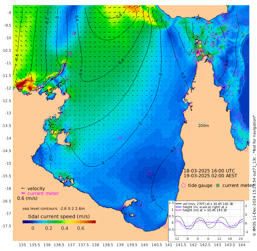 29cm/s 99T +3cm/s rms + 7cm/s -42T. ARA-GOC87 57m 9cm/s 129T +3cm/s rms + 2cm/s -2T. ARA-GOC87 60m 25cm/s 86T +2cm/s rms + 3cm/s 61T. ARA-GOC87 47m 47cm Daru 49cm Bobo Island 14cm Meer Island Barge 21cm Bramble Cay 31cm Unnamed Cay 35cm Pearce Cay 25cm Stephens Island 27cm Merrie England Shoals 39cm Mutacomal Reef 31cm Darnley Island Barge 11cm East Cay 41cm Yorke Island Barge 28cm Rennel Island 43cm Aureed Island 38cm Dungeness Reef 67cm Zagai Island 47cm Yam Island 63cm Dauan Island 74cm Saibai Island 67cm Phipi Reef 66cm Warrior Reef - West 39cm Mabuiag Island Barge 24cm Half Way Island 50cm Coconut Island 26cm Dugong Islet 42cm Poll Island 34cm Kirkcaldie Reef 46cm Suarji Island 52cm Sue Islet -22cm Hawkesbury Island 36cm Alert Patches 37cm Twin Island 5cm Badu Island 43cm St Pauls (Moa Island) -5cm Kubin (Moa Island) 23cm Ince Point 12cm Thursday Island 16cm Nardana Patches -2cm Turtle Head -4cm Round Island -26cm Goods Island -40cm Booby Island -45cm White Rocks Area -29cm Carpentaria 34cm Papou Point -20cm Bampfield Head -31cm Crab Island -40cm Red Wallis Island -17cm Packe Island 34cm Harrington Reef -28cm Herald Camp 17cm Sharp Point 0cm Red Island Point 23cm Possession Island 38cm Alpha Rock 40cm Frederick Point 49cm Wyborn Reef Light 51cm Tetley Island 22cm Triangle Reef 38cm Turtle Head Island 7cm Maclennan Cay 4cm Raine Island 31cm Mcsweeny Reef 31cm Collette Reef 19cm Shadwell Reef 31cm Hannibal Island 20cm Round Point -32cm Vrilya Point 12cm Cape Grenville 12cm Hicks Island 13cm Sir Charles Hardy Island 3cm Harvey Island 9cm Kay Reef 7cm Rocky Island 9cm Chapman Island 6cm Ham Reef 7cm Jubilee Reef 5cm Night Island 5cm Unnamed Reef No. 3 4cm Morris Island 1cm 1st 3 Mile Opening 3cm Creech Reef 6cm Fife Island 2cm Eden Reef 0cm Stanley Island -4cm Normanby River -31cm Yabooma Island -12cm Hutchison River -21cm Elcho Island -29cm North West Crocodile Island 28cm Cape Wessel 10cm Stevens Island 69cm Guluwuru Island 6cm Hopeful Bay 17cm Auster Point 10cm Two Island Bay 32cm Cadell Strait 209cm Mallison Island 55cm Melville Bay (Gove Harbour) 61cm Truant Island 49cm Cape Arnhem 29cm Cape Grey 22cm Hawk Island -3cm Milner Bay (Groote Eylandt) -17cm Cape Beatrice -36cm West Island -32cm Centre Island -22cm Mornington Island -32cm West Wellesley Islands -32cm Bountiful Island -51cm Albert River Mouth -33cm Sweers Island -45cm Karumba -23cm Nassau River Offshore -14cm Christmas Creek -13cm Archer River -12cm Boyd Point -22cm Weipa (Humbug Point) -13cm Pennefather River -27cm Cullen Point