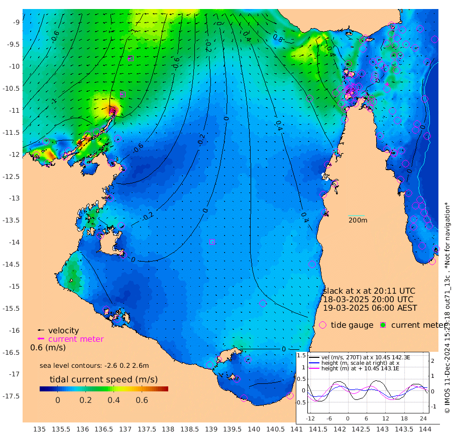 25cm/s -88T +3cm/s rms + 7cm/s -42T. ARA-GOC87 57m 12cm/s 147T +3cm/s rms + 2cm/s -2T. ARA-GOC87 60m 29cm/s -101T +2cm/s rms + 3cm/s 61T. ARA-GOC87 47m -34cm Daru -30cm Bobo Island 2cm Meer Island Barge -14cm Bramble Cay -22cm Unnamed Cay -21cm Pearce Cay -15cm Stephens Island -22cm Merrie England Shoals -31cm Mutacomal Reef -8cm Darnley Island Barge 1cm East Cay -15cm Yorke Island Barge -22cm Rennel Island -15cm Aureed Island -22cm Dungeness Reef -31cm Zagai Island -28cm Yam Island -29cm Dauan Island -17cm Saibai Island -29cm Phipi Reef -34cm Warrior Reef - West -4cm Mabuiag Island Barge -18cm Half Way Island -25cm Coconut Island -16cm Dugong Islet -24cm Poll Island -19cm Kirkcaldie Reef -9cm Suarji Island -16cm Sue Islet 28cm Hawkesbury Island -2cm Alert Patches -9cm Twin Island 14cm Badu Island -13cm St Pauls (Moa Island) 9cm Kubin (Moa Island) 1cm Ince Point 12cm Thursday Island 8cm Nardana Patches 19cm Turtle Head 15cm Round Island 37cm Goods Island 59cm Booby Island 50cm White Rocks Area 86cm Carpentaria -13cm Papou Point 55cm Bampfield Head 44cm Crab Island 52cm Red Wallis Island 24cm Packe Island -19cm Harrington Reef 41cm Herald Camp -4cm Sharp Point 20cm Red Island Point 5cm Possession Island -15cm Alpha Rock -17cm Frederick Point -35cm Wyborn Reef Light -35cm Tetley Island 0cm Triangle Reef -28cm Turtle Head Island 7cm Maclennan Cay 8cm Raine Island -16cm Mcsweeny Reef -12cm Collette Reef 0cm Shadwell Reef -14cm Hannibal Island -14cm Round Point 59cm Vrilya Point 0cm Cape Grenville -3cm Hicks Island 7cm Sir Charles Hardy Island 0cm Harvey Island 7cm Kay Reef 9cm Rocky Island 14cm Chapman Island 16cm Ham Reef 10cm Jubilee Reef 7cm Night Island 16cm Unnamed Reef No. 3 8cm Morris Island 13cm 1st 3 Mile Opening 14cm Creech Reef 3cm Fife Island 12cm Eden Reef 13cm Stanley Island 8cm Normanby River -152cm Yabooma Island -185cm Hutchison River -157cm Elcho Island -152cm North West Crocodile Island -104cm Cape Wessel -157cm Stevens Island -112cm Guluwuru Island -132cm Hopeful Bay -115cm Auster Point -124cm Two Island Bay -173cm Cadell Strait -130cm Mallison Island -104cm Melville Bay (Gove Harbour) -108cm Truant Island -70cm Cape Arnhem -43cm Cape Grey -40cm Hawk Island -15cm Milner Bay (Groote Eylandt) -8cm Cape Beatrice 32cm West Island 35cm Centre Island 7cm Mornington Island 16cm West Wellesley Islands 9cm Bountiful Island -40cm Albert River Mouth -30cm Sweers Island -30cm Karumba 19cm Nassau River Offshore 31cm Christmas Creek 42cm Archer River 47cm Boyd Point 46cm Weipa (Humbug Point) 42cm Pennefather River 55cm Cullen Point