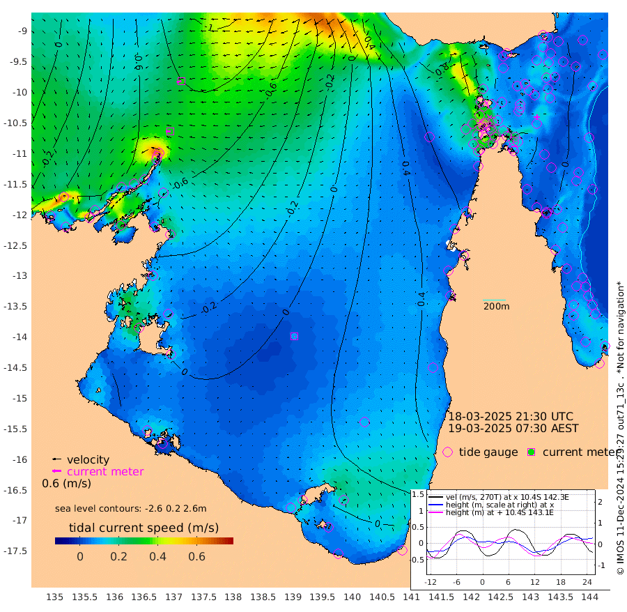 32cm/s -93T +3cm/s rms + 7cm/s -42T. ARA-GOC87 57m 8cm/s 177T +3cm/s rms + 2cm/s -2T. ARA-GOC87 60m 33cm/s -106T +2cm/s rms + 3cm/s 61T. ARA-GOC87 47m -18cm Daru -18cm Bobo Island 16cm Meer Island Barge 5cm Bramble Cay -2cm Unnamed Cay 0cm Pearce Cay 5cm Stephens Island 0cm Merrie England Shoals -13cm Mutacomal Reef 3cm Darnley Island Barge 18cm East Cay -5cm Yorke Island Barge 0cm Rennel Island -5cm Aureed Island -3cm Dungeness Reef -33cm Zagai Island -19cm Yam Island -28cm Dauan Island -32cm Saibai Island -22cm Phipi Reef -32cm Warrior Reef - West 2cm Mabuiag Island Barge 3cm Half Way Island -14cm Coconut Island 5cm Dugong Islet -11cm Poll Island -2cm Kirkcaldie Reef 2cm Suarji Island -13cm Sue Islet 69cm Hawkesbury Island 13cm Alert Patches 4cm Twin Island 46cm Badu Island -2cm St Pauls (Moa Island) 42cm Kubin (Moa Island) 19cm Ince Point 33cm Thursday Island 28cm Nardana Patches 49cm Turtle Head 46cm Round Island 76cm Goods Island 96cm Booby Island 94cm White Rocks Area 88cm Carpentaria -1cm Papou Point 86cm Bampfield Head 71cm Crab Island 85cm Red Wallis Island 57cm Packe Island 1cm Harrington Reef 75cm Herald Camp -8cm Sharp Point 46cm Red Island Point 23cm Possession Island -7cm Alpha Rock -2cm Frederick Point -19cm Wyborn Reef Light -22cm Tetley Island 9cm Triangle Reef -2cm Turtle Head Island 23cm Maclennan Cay 24cm Raine Island 1cm Mcsweeny Reef 2cm Collette Reef 12cm Shadwell Reef 2cm Hannibal Island 8cm Round Point 75cm Vrilya Point 18cm Cape Grenville 17cm Hicks Island 22cm Sir Charles Hardy Island 5cm Harvey Island 23cm Kay Reef 24cm Rocky Island 25cm Chapman Island 25cm Ham Reef 23cm Jubilee Reef 20cm Night Island 27cm Unnamed Reef No. 3 26cm Morris Island 31cm 1st 3 Mile Opening 29cm Creech Reef 18cm Fife Island 30cm Eden Reef 29cm Stanley Island 30cm Normanby River -55cm Yabooma Island -80cm Hutchison River -68cm Elcho Island -61cm North West Crocodile Island -76cm Cape Wessel -90cm Stevens Island -102cm Guluwuru Island -73cm Hopeful Bay -69cm Auster Point -76cm Two Island Bay -109cm Cadell Strait -224cm Mallison Island -87cm Melville Bay (Gove Harbour) -93cm Truant Island -67cm Cape Arnhem -38cm Cape Grey -38cm Hawk Island -16cm Milner Bay (Groote Eylandt) -5cm Cape Beatrice 26cm West Island 24cm Centre Island 9cm Mornington Island 19cm West Wellesley Islands 30cm Bountiful Island -8cm Albert River Mouth -7cm Sweers Island 0cm Karumba 29cm Nassau River Offshore 39cm Christmas Creek 51cm Archer River 54cm Boyd Point 64cm Weipa (Humbug Point) 49cm Pennefather River 67cm Cullen Point