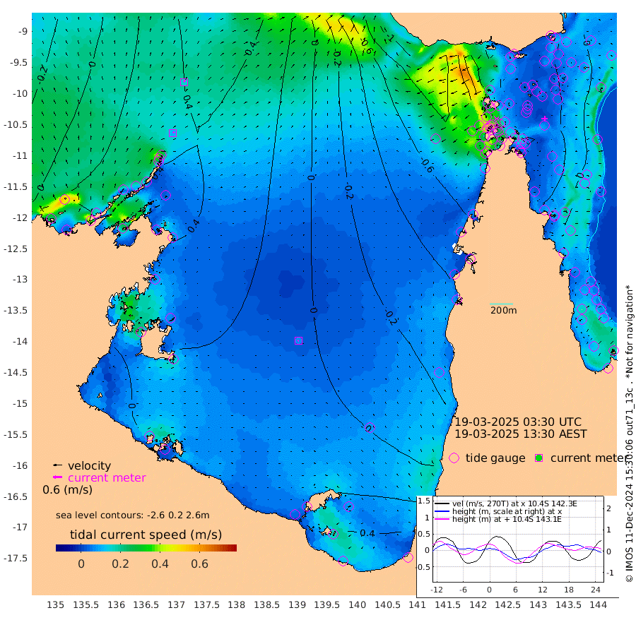 12cm/s 43T +3cm/s rms + 7cm/s -42T. ARA-GOC87 57m 7cm/s -129T +3cm/s rms + 2cm/s -2T. ARA-GOC87 60m 15cm/s 29T +2cm/s rms + 3cm/s 61T. ARA-GOC87 47m 34cm Daru 28cm Bobo Island -10cm Meer Island Barge 3cm Bramble Cay 15cm Unnamed Cay 12cm Pearce Cay 5cm Stephens Island 9cm Merrie England Shoals 29cm Mutacomal Reef 7cm Darnley Island Barge -12cm East Cay 19cm Yorke Island Barge 16cm Rennel Island 19cm Aureed Island 23cm Dungeness Reef 55cm Zagai Island 46cm Yam Island 67cm Dauan Island 69cm Saibai Island 53cm Phipi Reef 65cm Warrior Reef - West 23cm Mabuiag Island Barge 9cm Half Way Island 25cm Coconut Island 17cm Dugong Islet 30cm Poll Island 21cm Kirkcaldie Reef 27cm Suarji Island 35cm Sue Islet -62cm Hawkesbury Island 8cm Alert Patches 14cm Twin Island -33cm Badu Island 24cm St Pauls (Moa Island) -31cm Kubin (Moa Island) 0cm Ince Point -18cm Thursday Island -10cm Nardana Patches -32cm Turtle Head -50cm Round Island -65cm Goods Island -94cm Booby Island -86cm White Rocks Area -97cm Carpentaria 16cm Papou Point -103cm Bampfield Head -82cm Crab Island -83cm Red Wallis Island -52cm Packe Island 14cm Harrington Reef -77cm Herald Camp 15cm Sharp Point -36cm Red Island Point -21cm Possession Island 26cm Alpha Rock 18cm Frederick Point 30cm Wyborn Reef Light 32cm Tetley Island -2cm Triangle Reef 4cm Turtle Head Island -13cm Maclennan Cay -21cm Raine Island 11cm Mcsweeny Reef 7cm Collette Reef -6cm Shadwell Reef 7cm Hannibal Island -4cm Round Point -93cm Vrilya Point -11cm Cape Grenville -11cm Hicks Island -4cm Sir Charles Hardy Island -4cm Harvey Island -16cm Kay Reef -17cm Rocky Island -20cm Chapman Island -19cm Ham Reef -16cm Jubilee Reef -18cm Night Island -22cm Unnamed Reef No. 3 -19cm Morris Island -25cm 1st 3 Mile Opening -23cm Creech Reef -15cm Fife Island -24cm Eden Reef -25cm Stanley Island -23cm Normanby River 29cm Yabooma Island 56cm Hutchison River 43cm Elcho Island 42cm North West Crocodile Island 47cm Cape Wessel 52cm Stevens Island 83cm Guluwuru Island 37cm Hopeful Bay 34cm Auster Point 39cm Two Island Bay 74cm Cadell Strait 163cm Mallison Island 67cm Melville Bay (Gove Harbour) 66cm Truant Island 51cm Cape Arnhem 39cm Cape Grey 35cm Hawk Island 20cm Milner Bay (Groote Eylandt) 23cm Cape Beatrice 6cm West Island -4cm Centre Island 34cm Mornington Island 33cm West Wellesley Islands 49cm Bountiful Island 80cm Albert River Mouth 64cm Sweers Island 61cm Karumba 16cm Nassau River Offshore -5cm Christmas Creek -39cm Archer River -44cm Boyd Point -49cm Weipa (Humbug Point) -67cm Pennefather River -76cm Cullen Point