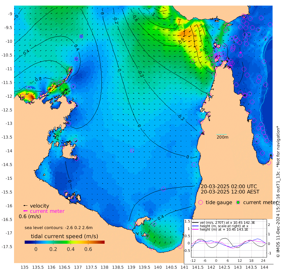 4cm/s -62T +3cm/s rms + 7cm/s -42T. ARA-GOC87 57m 13cm/s -119T +3cm/s rms + 2cm/s -2T. ARA-GOC87 60m 5cm/s -18T +2cm/s rms + 3cm/s 61T. ARA-GOC87 47m 44cm Daru 37cm Bobo Island 7cm Meer Island Barge 17cm Bramble Cay 30cm Unnamed Cay 33cm Pearce Cay 24cm Stephens Island 21cm Merrie England Shoals 36cm Mutacomal Reef 18cm Darnley Island Barge 7cm East Cay 29cm Yorke Island Barge 35cm Rennel Island 30cm Aureed Island 47cm Dungeness Reef 55cm Zagai Island 56cm Yam Island 79cm Dauan Island 62cm Saibai Island 83cm Phipi Reef 69cm Warrior Reef - West 44cm Mabuiag Island Barge 29cm Half Way Island 36cm Coconut Island 36cm Dugong Islet 45cm Poll Island 43cm Kirkcaldie Reef 52cm Suarji Island 41cm Sue Islet 15cm Hawkesbury Island 38cm Alert Patches 38cm Twin Island 32cm Badu Island 48cm St Pauls (Moa Island) 27cm Kubin (Moa Island) 34cm Ince Point 25cm Thursday Island 30cm Nardana Patches 26cm Turtle Head 13cm Round Island 11cm Goods Island -14cm Booby Island -6cm White Rocks Area -61cm Carpentaria 39cm Papou Point -27cm Bampfield Head -19cm Crab Island -16cm Red Wallis Island 7cm Packe Island 34cm Harrington Reef -4cm Herald Camp 13cm Sharp Point 20cm Red Island Point 23cm Possession Island 30cm Alpha Rock 37cm Frederick Point 36cm Wyborn Reef Light 37cm Tetley Island 9cm Triangle Reef 34cm Turtle Head Island 8cm Maclennan Cay 0cm Raine Island 24cm Mcsweeny Reef 18cm Collette Reef 7cm Shadwell Reef 18cm Hannibal Island 14cm Round Point -42cm Vrilya Point 5cm Cape Grenville 11cm Hicks Island 11cm Sir Charles Hardy Island 3cm Harvey Island -2cm Kay Reef 3cm Rocky Island -6cm Chapman Island -6cm Ham Reef 1cm Jubilee Reef -2cm Night Island -8cm Unnamed Reef No. 3 2cm Morris Island 2cm 1st 3 Mile Opening -2cm Creech Reef 0cm Fife Island -2cm Eden Reef -5cm Stanley Island -1cm Normanby River 102cm Yabooma Island 132cm Hutchison River 104cm Elcho Island 107cm North West Crocodile Island 43cm Cape Wessel 82cm Stevens Island 59cm Guluwuru Island 67cm Hopeful Bay 57cm Auster Point 60cm Two Island Bay 105cm Cadell Strait -24cm Mallison Island 57cm Melville Bay (Gove Harbour) 52cm Truant Island 34cm Cape Arnhem 36cm Cape Grey 28cm Hawk Island 12cm Milner Bay (Groote Eylandt) 19cm Cape Beatrice -1cm West Island -12cm Centre Island 39cm Mornington Island 36cm West Wellesley Islands 80cm Bountiful Island 102cm Albert River Mouth 88cm Sweers Island 95cm Karumba 36cm Nassau River Offshore 20cm Christmas Creek -4cm Archer River -12cm Boyd Point -3cm Weipa (Humbug Point) -32cm Pennefather River -34cm Cullen Point