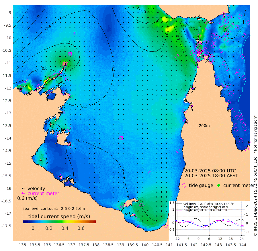 16cm/s -35T +3cm/s rms + 7cm/s -42T. ARA-GOC87 57m 17cm/s 6T +3cm/s rms + 2cm/s -2T. ARA-GOC87 60m 11cm/s -37T +2cm/s rms + 3cm/s 61T. ARA-GOC87 47m -75cm Daru -68cm Bobo Island -41cm Meer Island Barge -49cm Bramble Cay -63cm Unnamed Cay -70cm Pearce Cay -58cm Stephens Island -54cm Merrie England Shoals -64cm Mutacomal Reef -53cm Darnley Island Barge -41cm East Cay -62cm Yorke Island Barge -66cm Rennel Island -63cm Aureed Island -81cm Dungeness Reef -81cm Zagai Island -80cm Yam Island -105cm Dauan Island -84cm Saibai Island -119cm Phipi Reef -92cm Warrior Reef - West -82cm Mabuiag Island Barge -61cm Half Way Island -73cm Coconut Island -67cm Dugong Islet -76cm Poll Island -75cm Kirkcaldie Reef -89cm Suarji Island -71cm Sue Islet -97cm Hawkesbury Island -88cm Alert Patches -81cm Twin Island -105cm Badu Island -89cm St Pauls (Moa Island) -93cm Kubin (Moa Island) -83cm Ince Point -82cm Thursday Island -84cm Nardana Patches -91cm Turtle Head -93cm Round Island -91cm Goods Island -76cm Booby Island -73cm White Rocks Area -22cm Carpentaria -75cm Papou Point -89cm Bampfield Head -56cm Crab Island -63cm Red Wallis Island -82cm Packe Island -70cm Harrington Reef -87cm Herald Camp -17cm Sharp Point -75cm Red Island Point -86cm Possession Island -62cm Alpha Rock -77cm Frederick Point -72cm Wyborn Reef Light -73cm Tetley Island -42cm Triangle Reef -85cm Turtle Head Island -40cm Maclennan Cay -33cm Raine Island -58cm Mcsweeny Reef -52cm Collette Reef -41cm Shadwell Reef -54cm Hannibal Island -51cm Round Point -35cm Vrilya Point -40cm Cape Grenville -46cm Hicks Island -45cm Sir Charles Hardy Island -14cm Harvey Island -32cm Kay Reef -36cm Rocky Island -30cm Chapman Island -27cm Ham Reef -33cm Jubilee Reef -30cm Night Island -25cm Unnamed Reef No. 3 -36cm Morris Island -40cm 1st 3 Mile Opening -33cm Creech Reef -30cm Fife Island -35cm Eden Reef -30cm Stanley Island -31cm Normanby River -92cm Yabooma Island -119cm Hutchison River -87cm Elcho Island -82cm North West Crocodile Island -41cm Cape Wessel -72cm Stevens Island -58cm Guluwuru Island -64cm Hopeful Bay -60cm Auster Point -58cm Two Island Bay -97cm Cadell Strait 6cm Mallison Island -58cm Melville Bay (Gove Harbour) -59cm Truant Island -36cm Cape Arnhem -23cm Cape Grey -11cm Hawk Island 25cm Milner Bay (Groote Eylandt) 29cm Cape Beatrice 60cm West Island 64cm Centre Island 27cm Mornington Island 36cm West Wellesley Islands 1cm Bountiful Island 25cm Albert River Mouth 23cm Sweers Island 13cm Karumba -2cm Nassau River Offshore -21cm Christmas Creek -32cm Archer River -35cm Boyd Point -46cm Weipa (Humbug Point) -27cm Pennefather River -35cm Cullen Point
