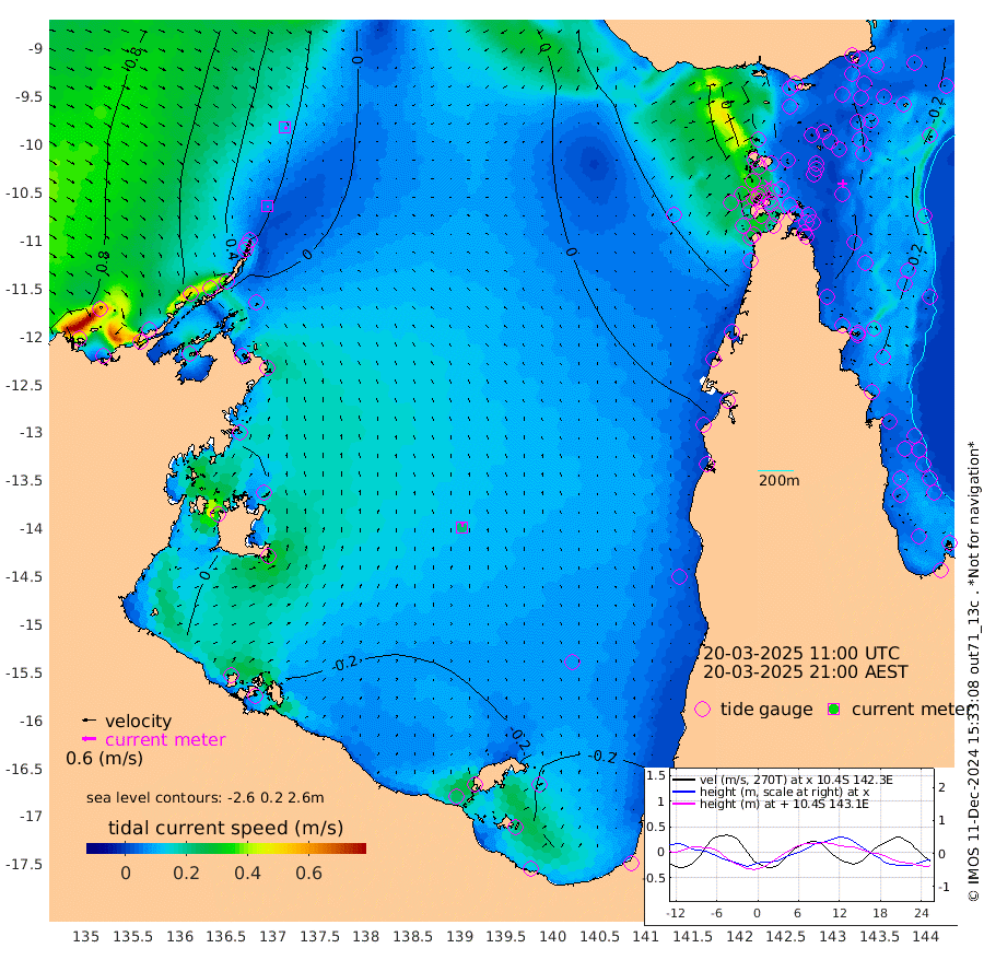 5cm/s 153T +3cm/s rms + 7cm/s -42T. ARA-GOC87 57m 23cm/s 1T +3cm/s rms + 2cm/s -2T. ARA-GOC87 60m 11cm/s 135T +2cm/s rms + 3cm/s 61T. ARA-GOC87 47m -38cm Daru -33cm Bobo Island -18cm Meer Island Barge -21cm Bramble Cay -30cm Unnamed Cay -23cm Pearce Cay -20cm Stephens Island -24cm Merrie England Shoals -34cm Mutacomal Reef -30cm Darnley Island Barge -13cm East Cay -37cm Yorke Island Barge -23cm Rennel Island -32cm Aureed Island -33cm Dungeness Reef -56cm Zagai Island -44cm Yam Island -77cm Dauan Island -86cm Saibai Island -74cm Phipi Reef -67cm Warrior Reef - West -42cm Mabuiag Island Barge -17cm Half Way Island -31cm Coconut Island -25cm Dugong Islet -32cm Poll Island -29cm Kirkcaldie Reef -38cm Suarji Island -49cm Sue Islet 14cm Hawkesbury Island -29cm Alert Patches -25cm Twin Island -4cm Badu Island -33cm St Pauls (Moa Island) 5cm Kubin (Moa Island) -18cm Ince Point -8cm Thursday Island -12cm Nardana Patches -2cm Turtle Head 11cm Round Island 19cm Goods Island 35cm Booby Island 42cm White Rocks Area 33cm Carpentaria -20cm Papou Point 35cm Bampfield Head 37cm Crab Island 37cm Red Wallis Island 17cm Packe Island -19cm Harrington Reef 21cm Herald Camp -17cm Sharp Point 3cm Red Island Point -7cm Possession Island -31cm Alpha Rock -26cm Frederick Point -32cm Wyborn Reef Light -34cm Tetley Island -22cm Triangle Reef -15cm Turtle Head Island -13cm Maclennan Cay -8cm Raine Island -26cm Mcsweeny Reef -29cm Collette Reef -23cm Shadwell Reef -29cm Hannibal Island -15cm Round Point 39cm Vrilya Point -15cm Cape Grenville -13cm Hicks Island -28cm Sir Charles Hardy Island -4cm Harvey Island -16cm Kay Reef -15cm Rocky Island -15cm Chapman Island -15cm Ham Reef -15cm Jubilee Reef -8cm Night Island -12cm Unnamed Reef No. 3 -11cm Morris Island -9cm 1st 3 Mile Opening -11cm Creech Reef -7cm Fife Island -13cm Eden Reef -10cm Stanley Island -5cm Normanby River 81cm Yabooma Island 72cm Hutchison River 73cm Elcho Island 74cm North West Crocodile Island 28cm Cape Wessel 55cm Stevens Island -24cm Guluwuru Island 48cm Hopeful Bay 42cm Auster Point 46cm Two Island Bay 35cm Cadell Strait -148cm Mallison Island -10cm Melville Bay (Gove Harbour) -7cm Truant Island -15cm Cape Arnhem -15cm Cape Grey -13cm Hawk Island 5cm Milner Bay (Groote Eylandt) 1cm Cape Beatrice 2cm West Island 6cm Centre Island -31cm Mornington Island -30cm West Wellesley Islands -51cm Bountiful Island -29cm Albert River Mouth -31cm Sweers Island -29cm Karumba -34cm Nassau River Offshore -34cm Christmas Creek -13cm Archer River -8cm Boyd Point -5cm Weipa (Humbug Point) 18cm Pennefather River 23cm Cullen Point