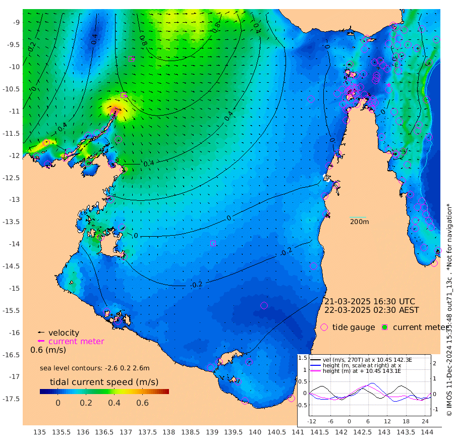 39cm/s 111T +3cm/s rms + 7cm/s -42T. ARA-GOC87 57m 11cm/s 138T +3cm/s rms + 2cm/s -2T. ARA-GOC87 60m 33cm/s 103T +2cm/s rms + 3cm/s 61T. ARA-GOC87 47m 15cm Daru 12cm Bobo Island 20cm Meer Island Barge 14cm Bramble Cay 14cm Unnamed Cay 8cm Pearce Cay 11cm Stephens Island 10cm Merrie England Shoals 7cm Mutacomal Reef 20cm Darnley Island Barge 10cm East Cay 18cm Yorke Island Barge 5cm Rennel Island 8cm Aureed Island 10cm Dungeness Reef 24cm Zagai Island 14cm Yam Island 36cm Dauan Island 33cm Saibai Island 27cm Phipi Reef 20cm Warrior Reef - West 18cm Mabuiag Island Barge 7cm Half Way Island 10cm Coconut Island 4cm Dugong Islet 8cm Poll Island 6cm Kirkcaldie Reef -1cm Suarji Island 14cm Sue Islet 17cm Hawkesbury Island 5cm Alert Patches 5cm Twin Island 26cm Badu Island 11cm St Pauls (Moa Island) 20cm Kubin (Moa Island) 9cm Ince Point 10cm Thursday Island 10cm Nardana Patches 12cm Turtle Head 22cm Round Island 16cm Goods Island 16cm Booby Island 2cm White Rocks Area 17cm Carpentaria 9cm Papou Point 33cm Bampfield Head 15cm Crab Island 7cm Red Wallis Island 13cm Packe Island -2cm Harrington Reef 21cm Herald Camp 0cm Sharp Point -1cm Red Island Point 11cm Possession Island 6cm Alpha Rock 5cm Frederick Point 15cm Wyborn Reef Light 15cm Tetley Island 16cm Triangle Reef 19cm Turtle Head Island 11cm Maclennan Cay 17cm Raine Island 11cm Mcsweeny Reef 13cm Collette Reef 19cm Shadwell Reef 15cm Hannibal Island 11cm Round Point 16cm Vrilya Point 9cm Cape Grenville 13cm Hicks Island 17cm Sir Charles Hardy Island 3cm Harvey Island 10cm Kay Reef 13cm Rocky Island 13cm Chapman Island 14cm Ham Reef 17cm Jubilee Reef 13cm Night Island 10cm Unnamed Reef No. 3 13cm Morris Island 21cm 1st 3 Mile Opening 15cm Creech Reef 8cm Fife Island 20cm Eden Reef 14cm Stanley Island 7cm Normanby River 53cm Yabooma Island 72cm Hutchison River 55cm Elcho Island 42cm North West Crocodile Island 63cm Cape Wessel 69cm Stevens Island 98cm Guluwuru Island 58cm Hopeful Bay 63cm Auster Point 71cm Two Island Bay 96cm Cadell Strait 199cm Mallison Island 79cm Melville Bay (Gove Harbour) 88cm Truant Island 60cm Cape Arnhem 23cm Cape Grey 8cm Hawk Island -25cm Milner Bay (Groote Eylandt) -41cm Cape Beatrice -79cm West Island -76cm Centre Island -77cm Mornington Island -85cm West Wellesley Islands -94cm Bountiful Island -105cm Albert River Mouth -107cm Sweers Island -107cm Karumba -58cm Nassau River Offshore -29cm Christmas Creek -5cm Archer River 8cm Boyd Point 5cm Weipa (Humbug Point) 14cm Pennefather River 14cm Cullen Point